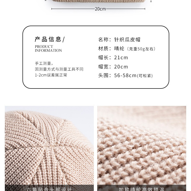 가을, 겨울 패션 모직 모자 다목적 남성과 여성 학생 멜론 스킨 모자 더블 레이어 따뜻한 야외 방풍 모직 모자 니트 모자스토어 가기