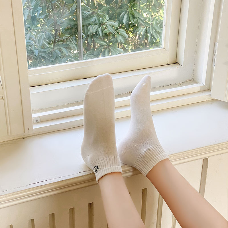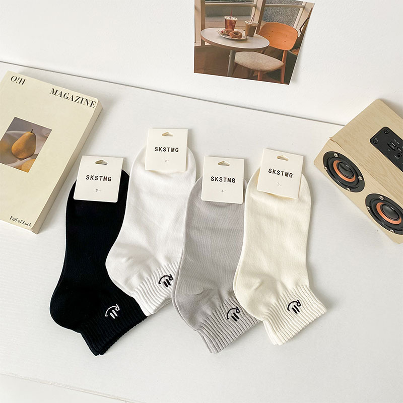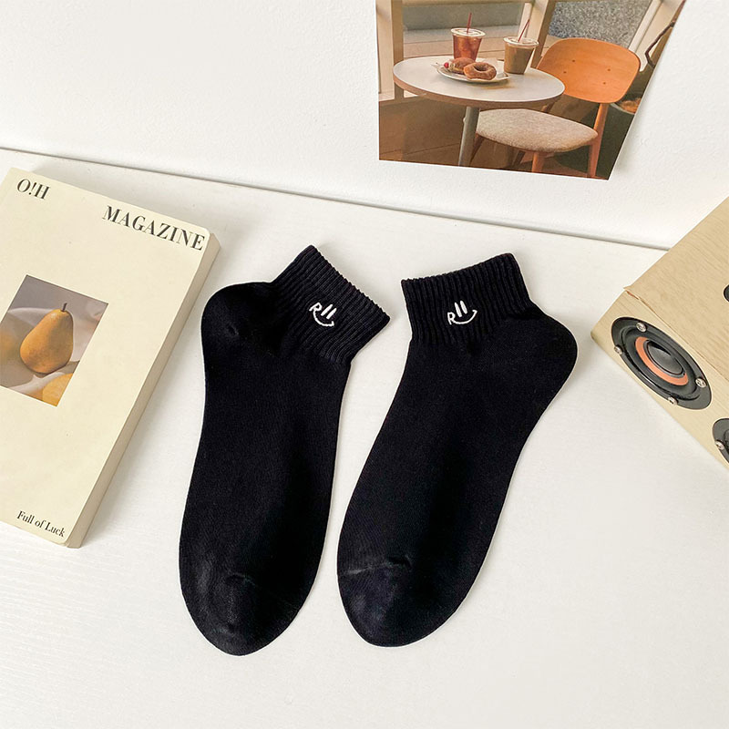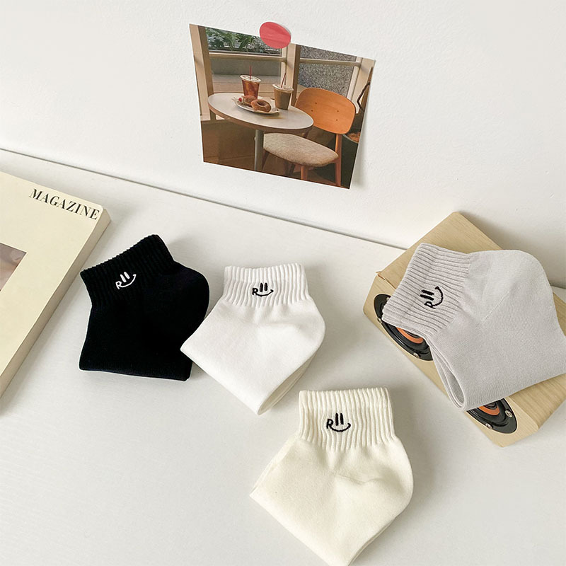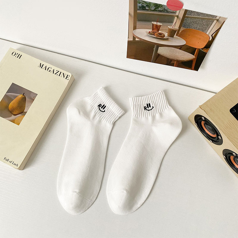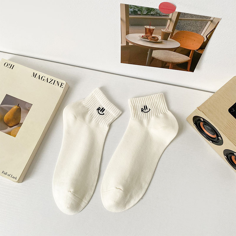흰색 여성 양말 만화 자수 스마일리 양말 봄과 가을, 트렌디 한 귀여운 한국 프레피 스타일 스포츠 코튼 양말스토어 가기