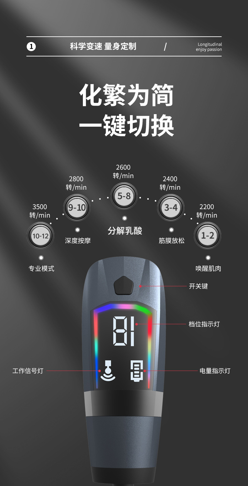 가벼운 멀티 주파수 피트니스 이완 근육 마사지 진동 충격 마사지 풀 스트랩을 달리는 긴 손잡이 근막 총 말스토어 가기