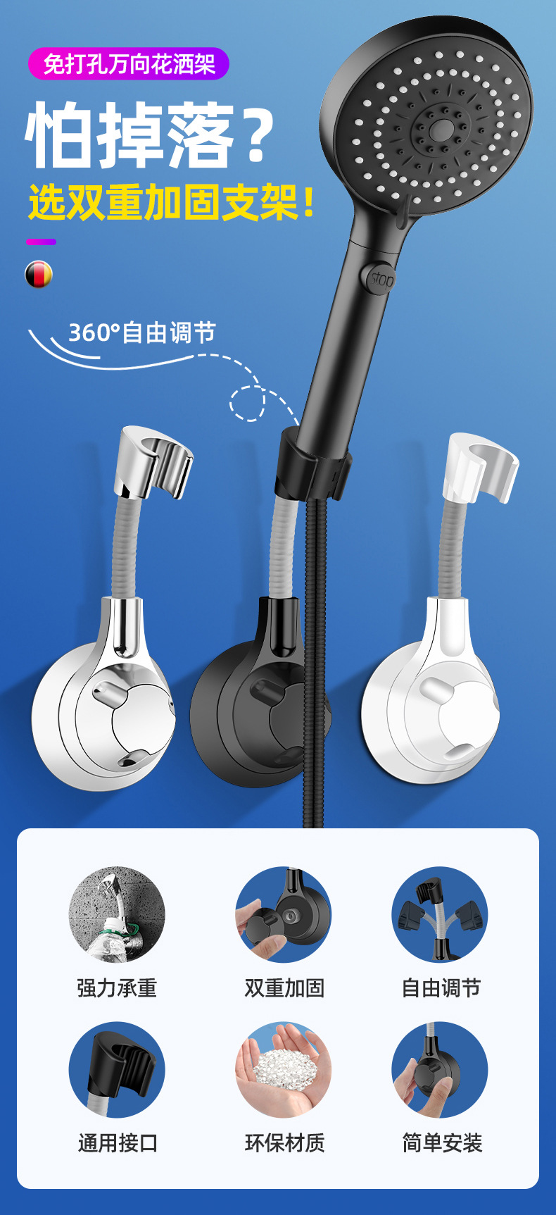 펀치없는 샤워 브래킷 욕실 샤워 노즐 브래킷 보편적 인 고정 유물 어린이 보편적 인 비 교수형 좌석스토어 가기