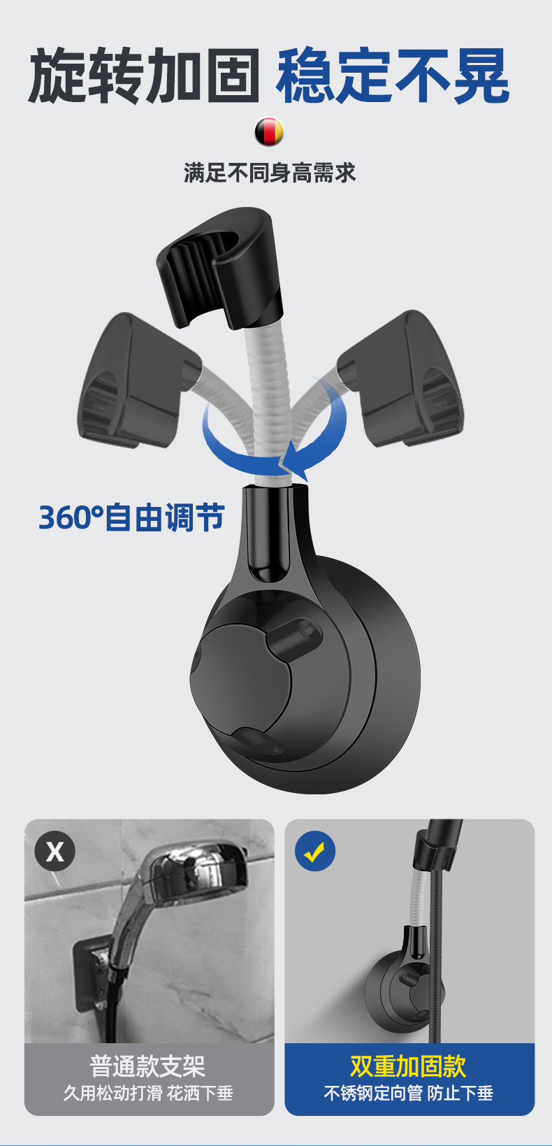 펀치없는 샤워 브래킷 욕실 샤워 노즐 브래킷 보편적 인 고정 유물 어린이 보편적 인 비 교수형 좌석
