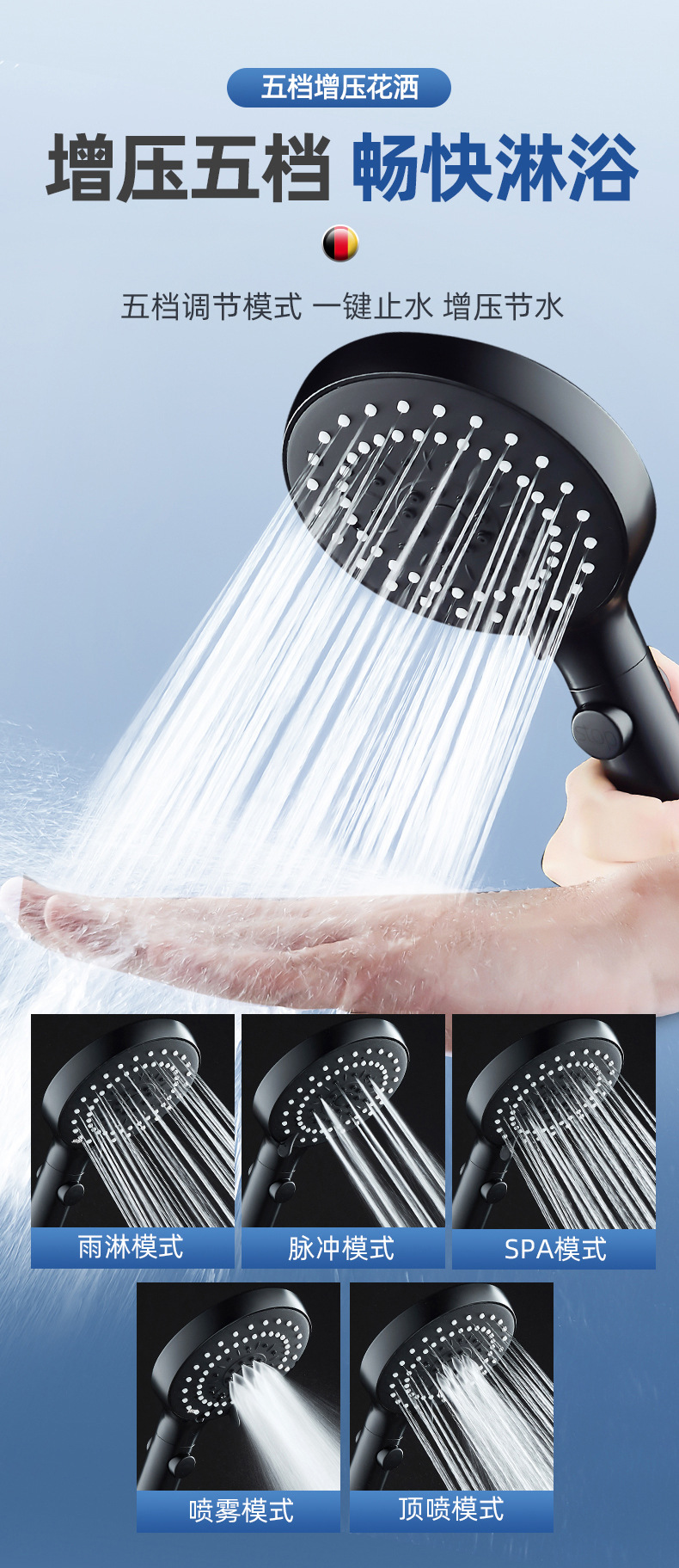 • [전기 도금] 샤워 브래킷 + 5 단 슈퍼 차저 워터 스톱 샤워