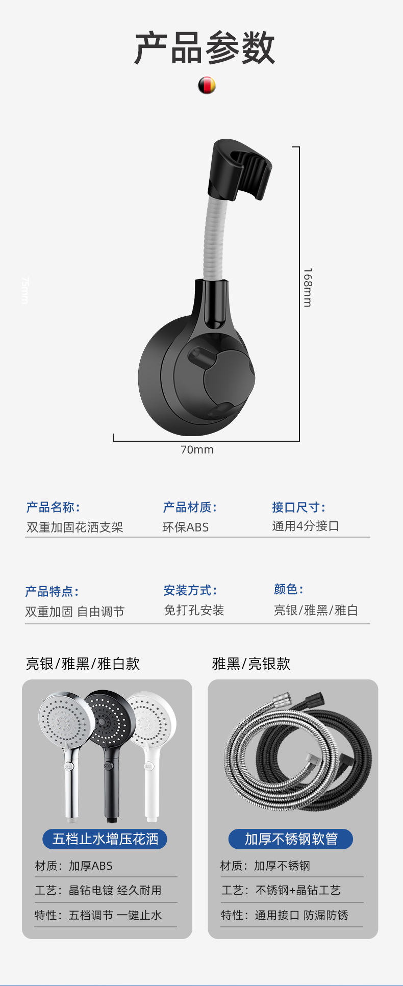 • [전기 도금] 샤워 브래킷 + 1.5 m 방폭 튜브 + 5 단 슈퍼 차저 방수 샤워