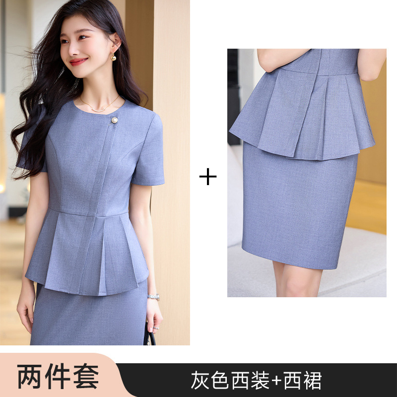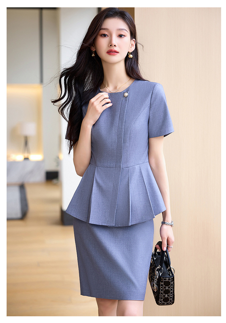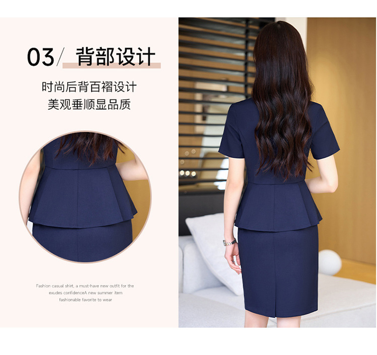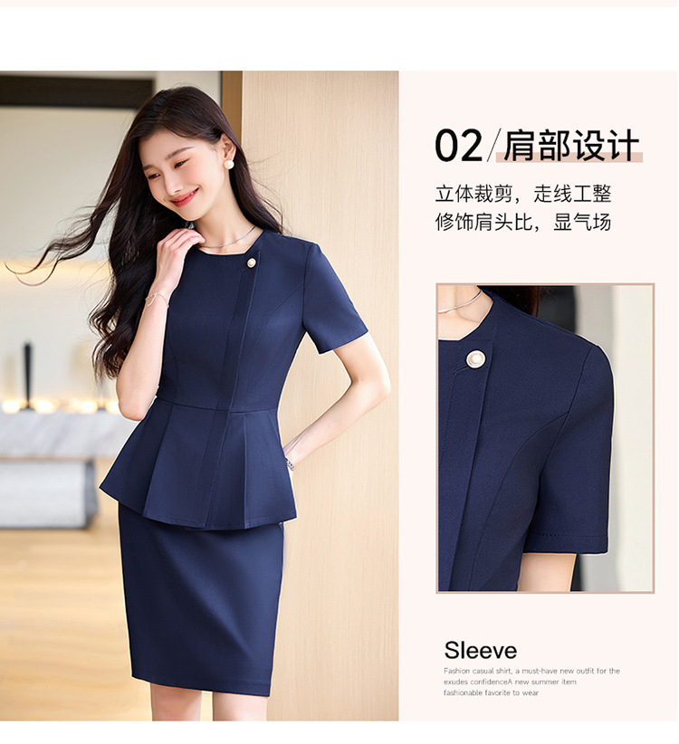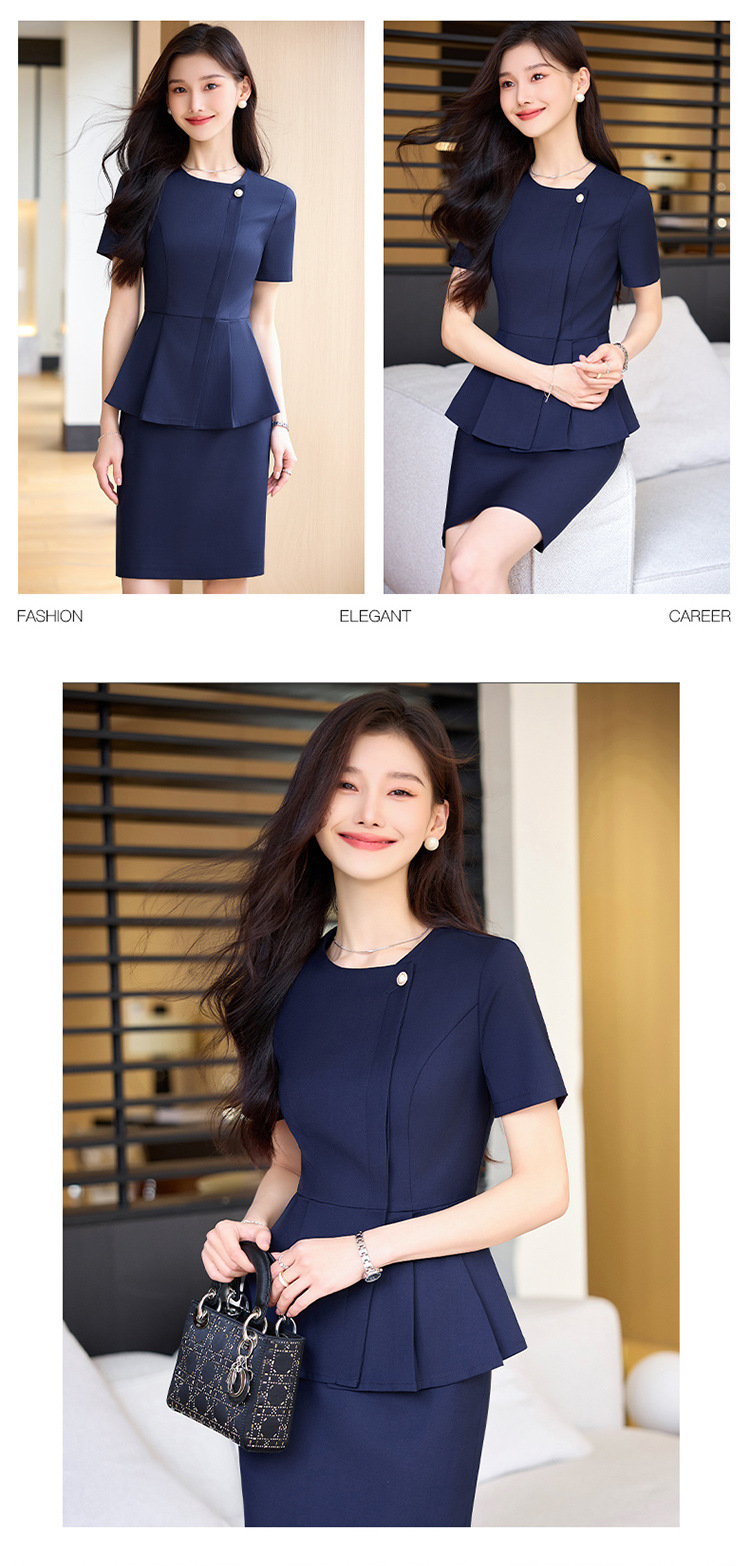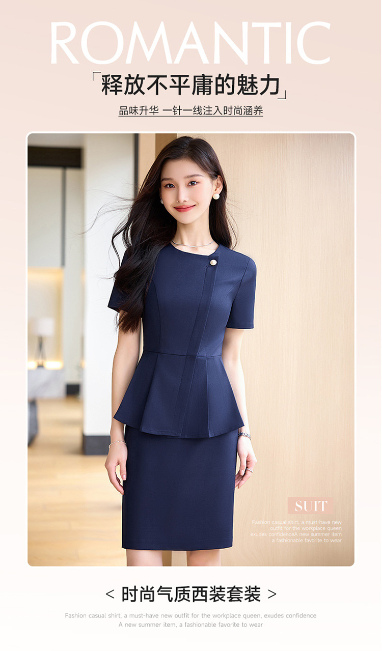 여름 슬림 핏 슬리밍 쇼트 스커트 비즈니스 우아한 다크 블루 통근 원피스 프런트 데스크 매니저 작업복 착용