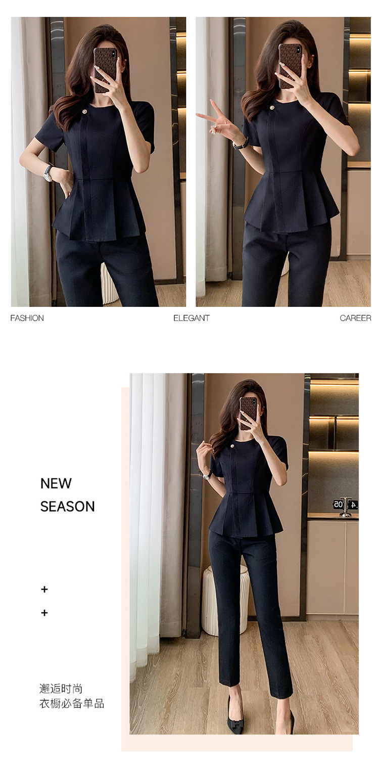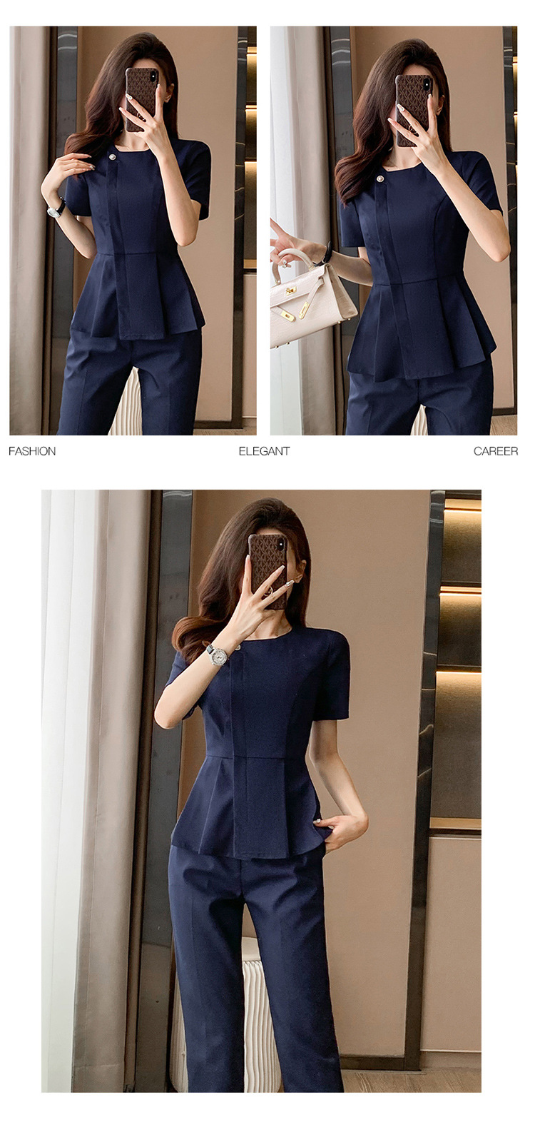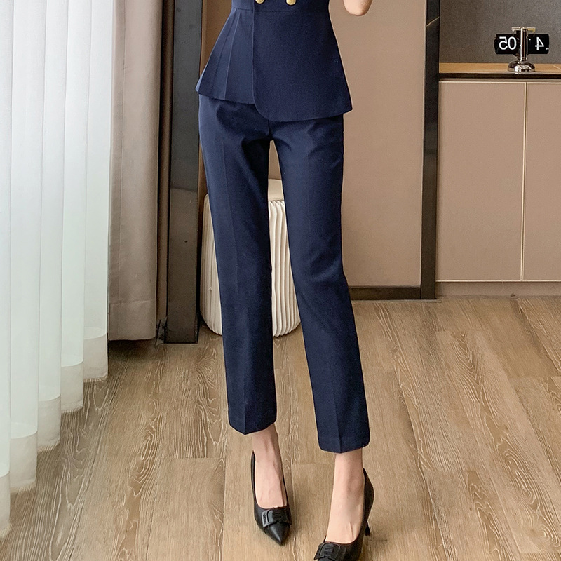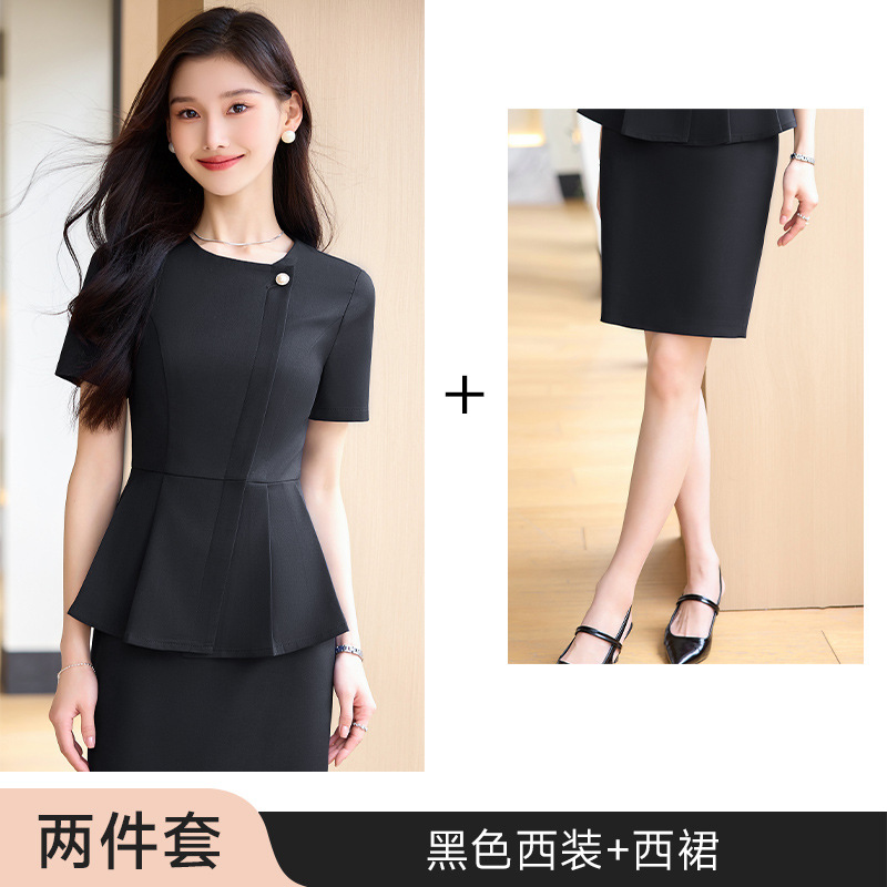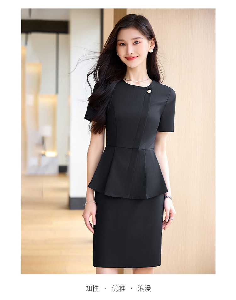 여름 슬림 핏 슬리밍 쇼트 스커트 비즈니스 우아한 다크 블루 통근 원피스 프런트 데스크 매니저 작업복 착용