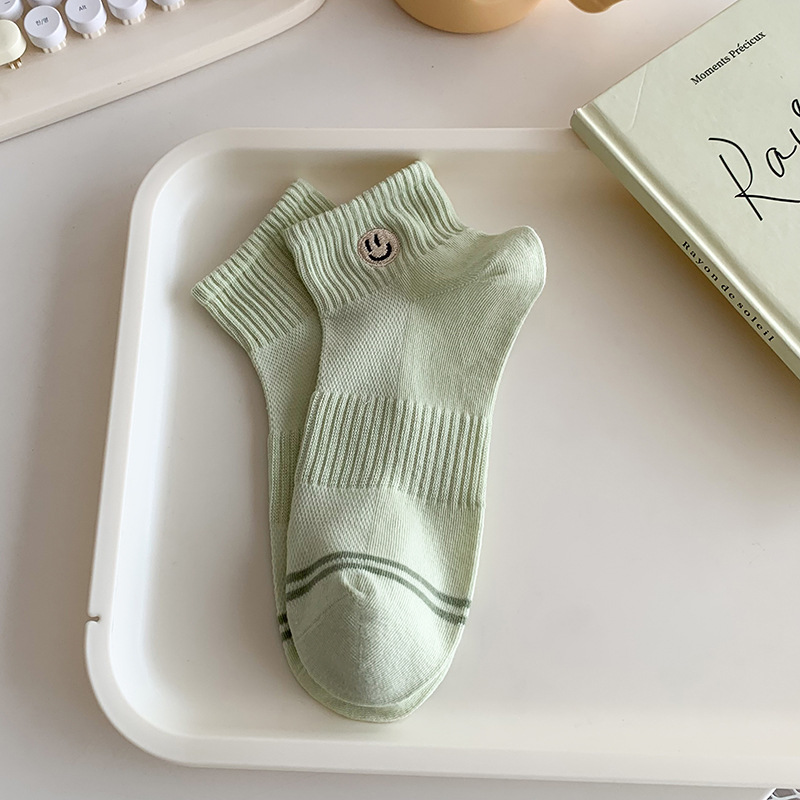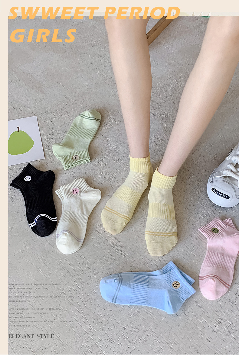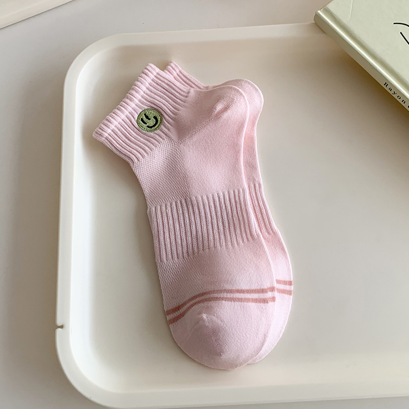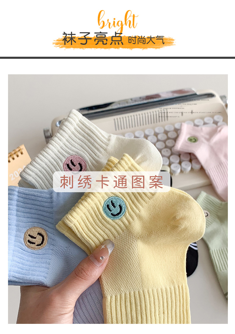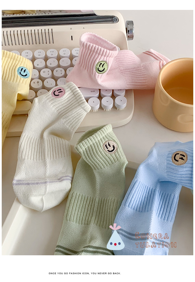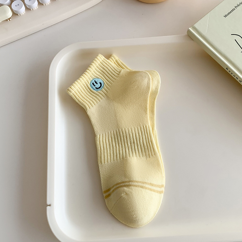 양말 여성의 봄과 여름 메쉬 통기성 스포츠 보트 양말 캔디 컬러 만화 웃는 얼굴 자수 여성면 양말 도매스토어 가기