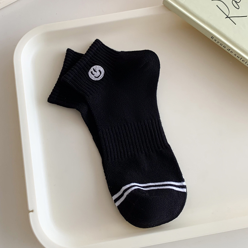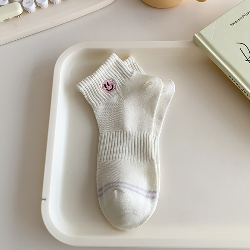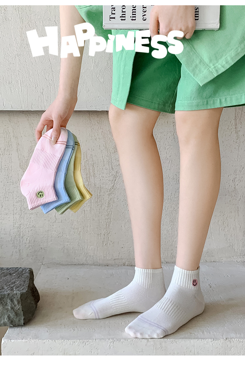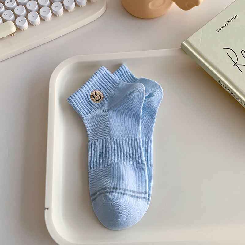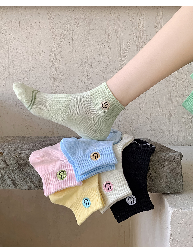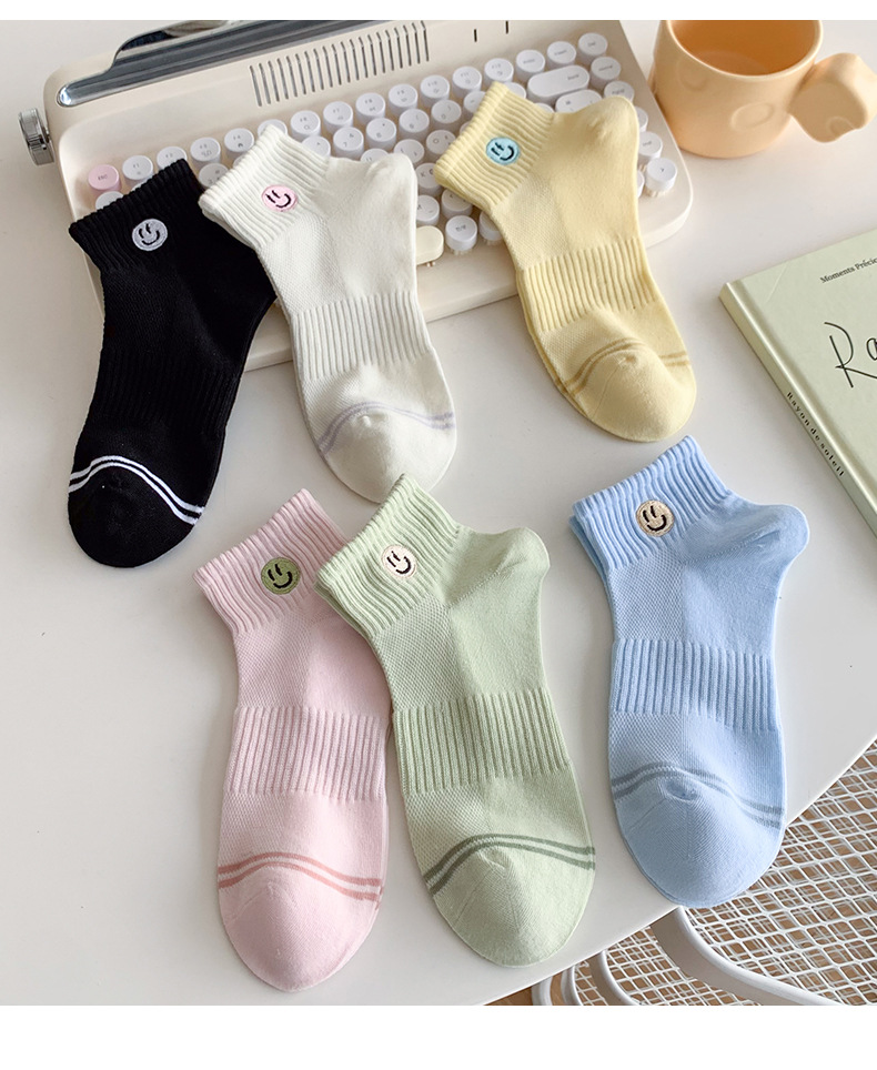 양말 여성의 봄과 여름 메쉬 통기성 스포츠 보트 양말 캔디 컬러 만화 웃는 얼굴 자수 여성면 양말 도매스토어 가기