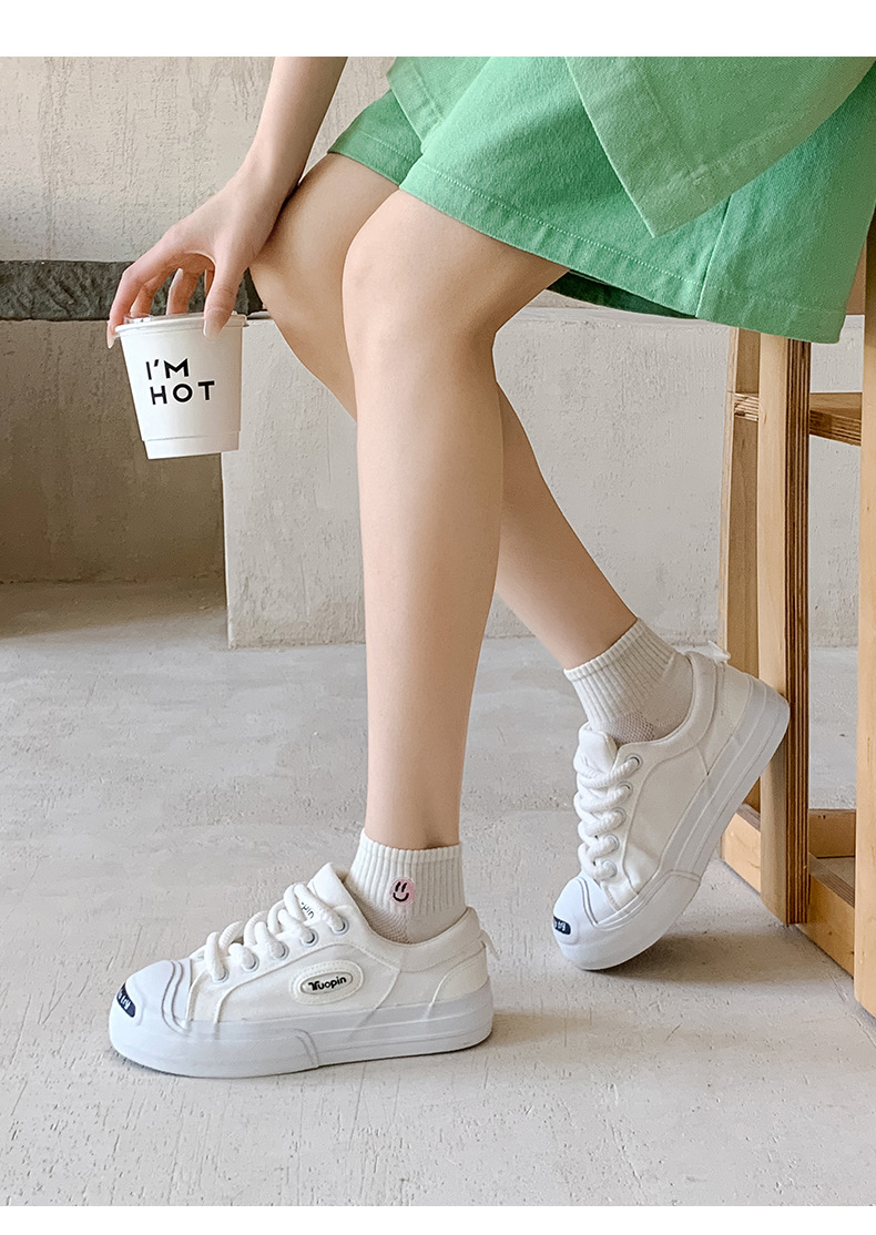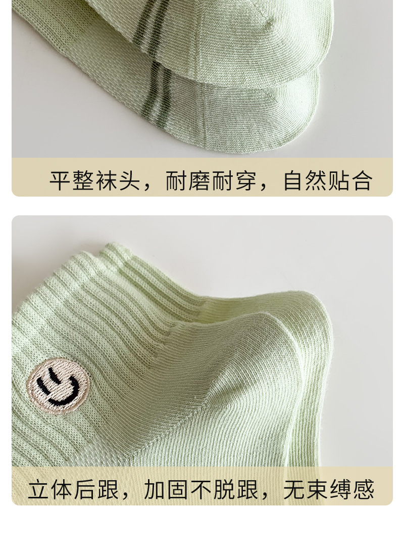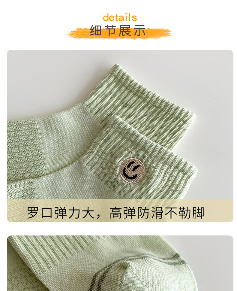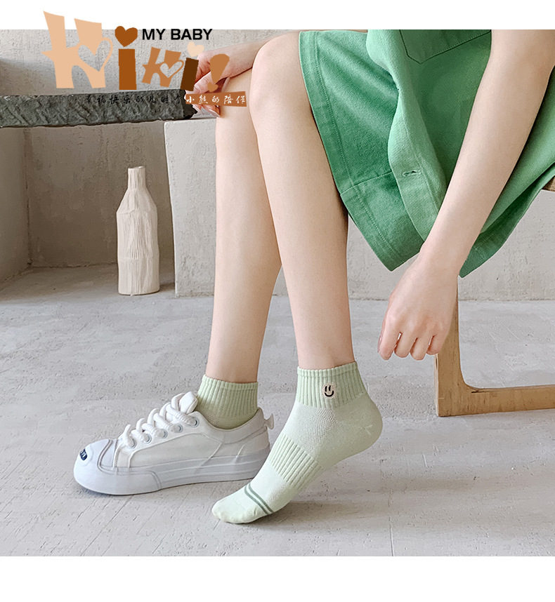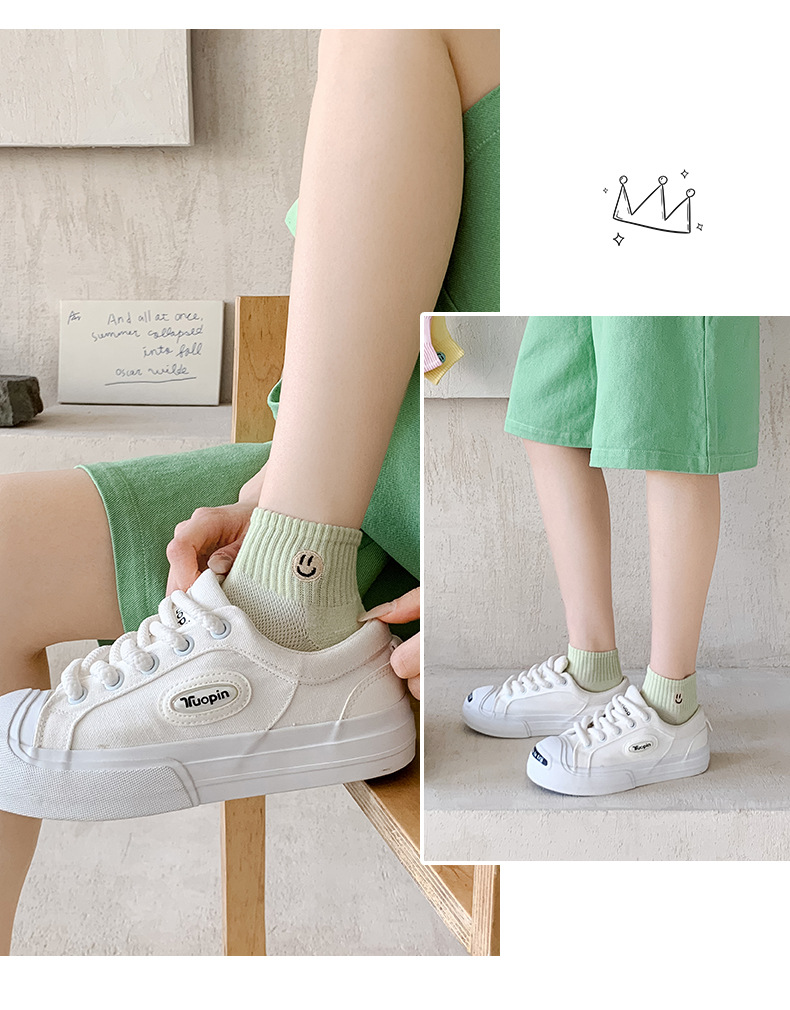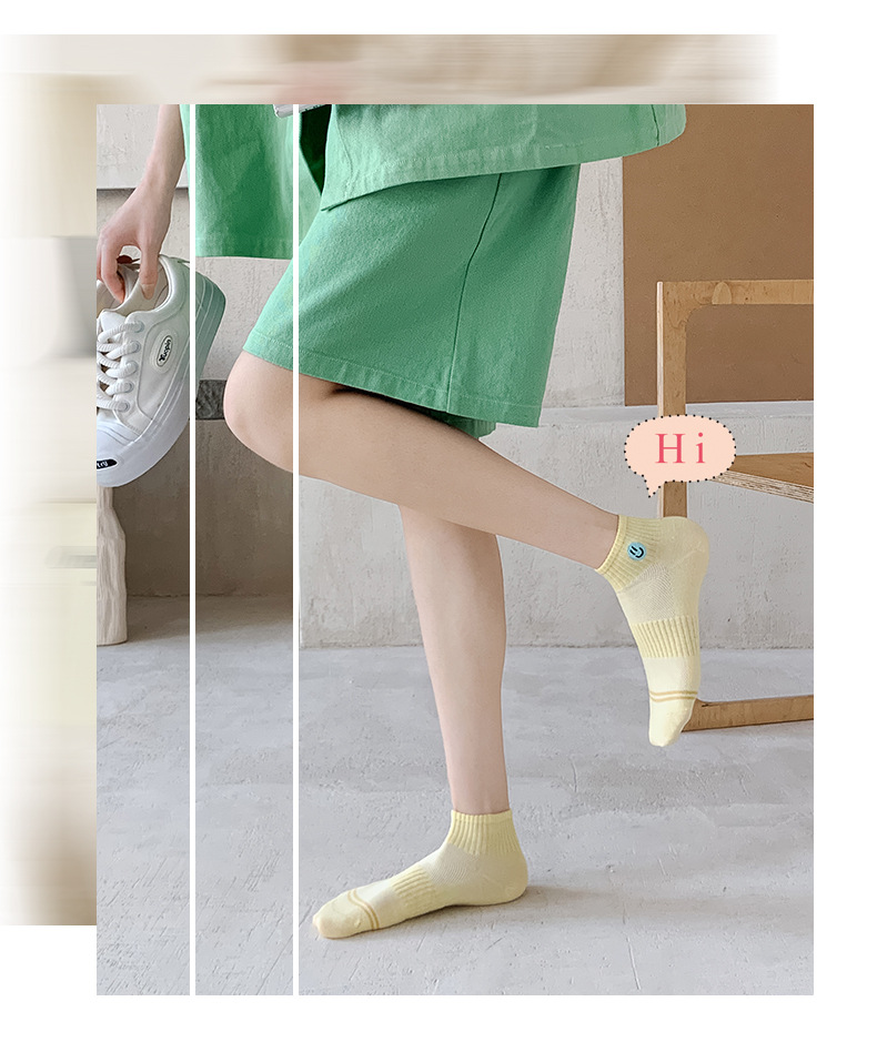 양말 여성의 봄과 여름 메쉬 통기성 스포츠 보트 양말 캔디 컬러 만화 웃는 얼굴 자수 여성면 양말 도매스토어 가기