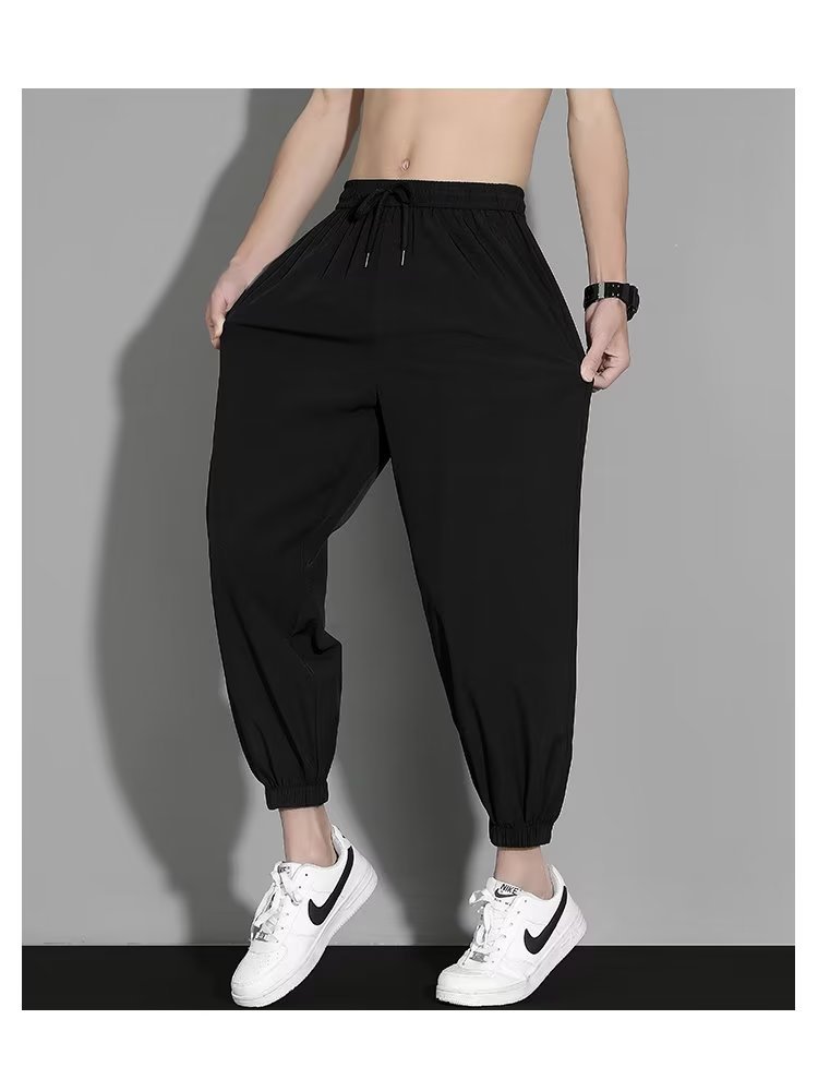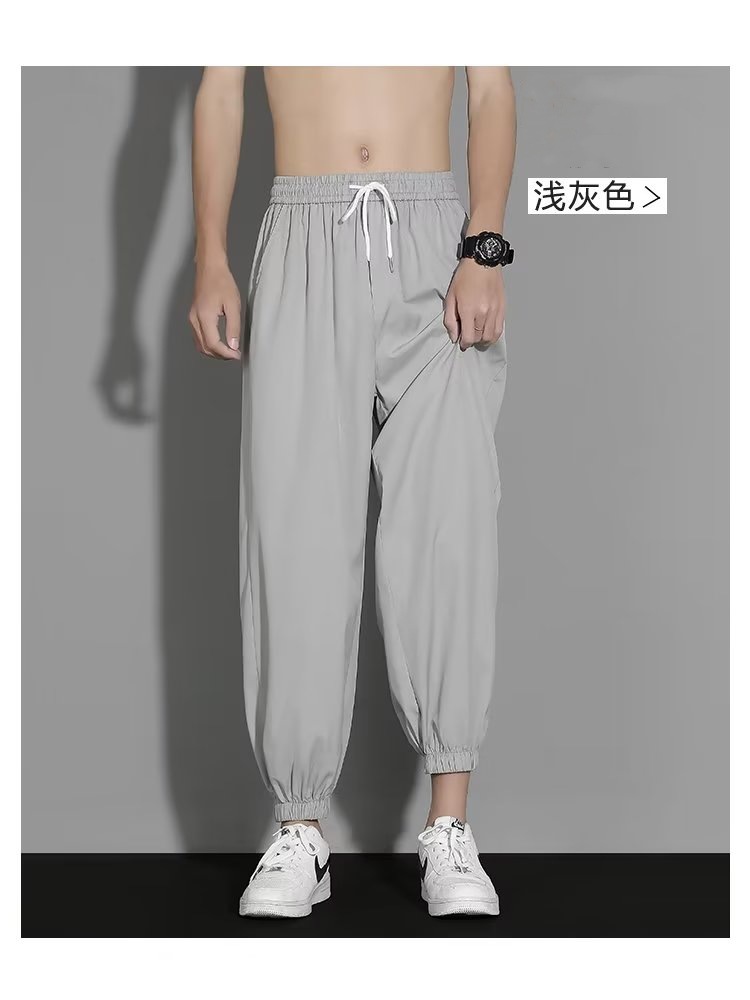 아이스 실크 발목 묶인 바지 남성 여름 패션 브랜드 느슨한 스포츠 크롭 바지 여름 남자의 얇은 빠른 건조 캐주얼 바지