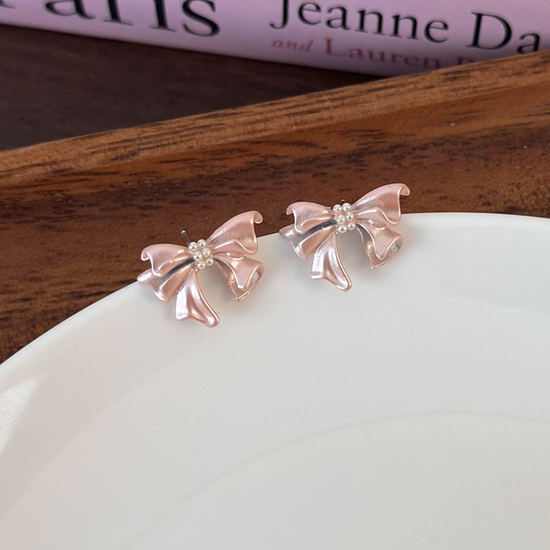 여성을위한 달콤한 귀여운 절묘한 디자인 감각 틈새 귀걸이 봄과 여름 새로운 핑크 페인트 활 사랑스러운 스터드 귀걸이