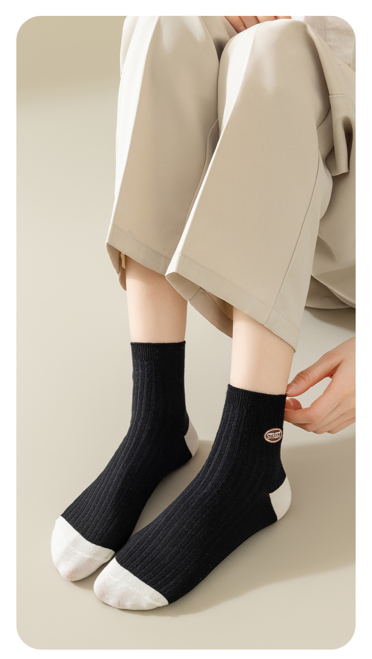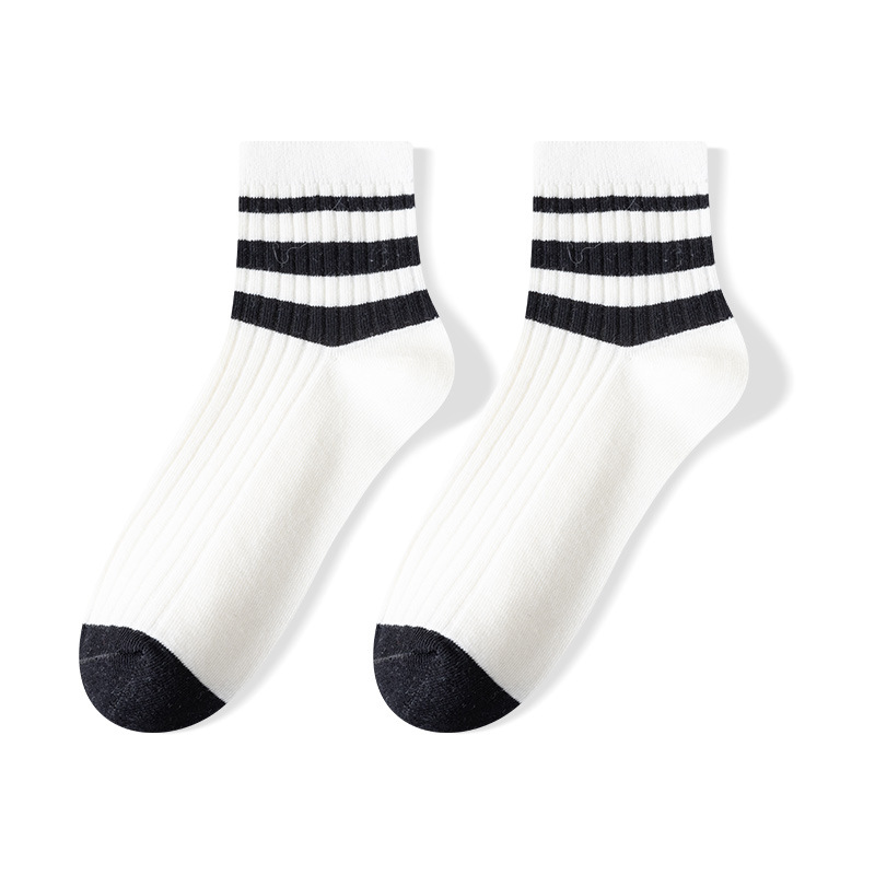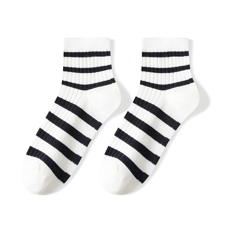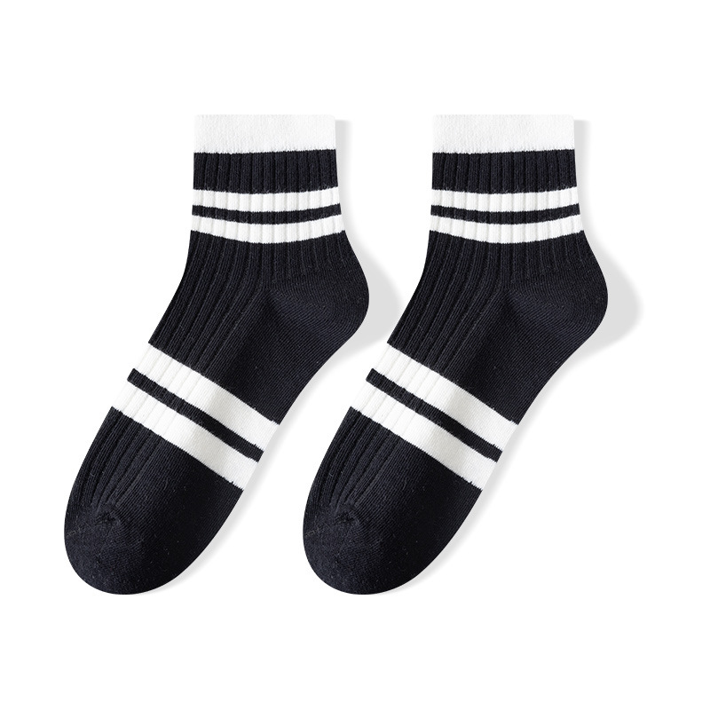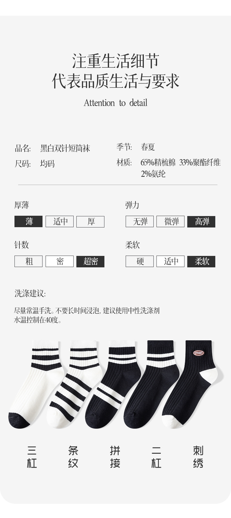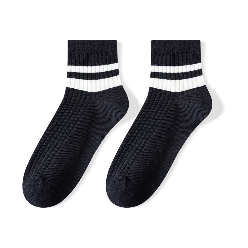 검은 양말 여성의 짧은 양말 봄과 가을 줄무늬 더블 니트 양말 땀 흡수성 통기성 보트 양말 여름 얇은 흰색 양말