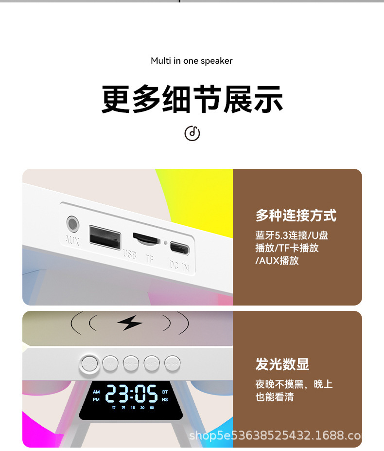 국경 간 인기있는 새로운 대형 G 블루투스 오디오 X63 알람 시계 데스크탑 다기능 무선 충전 USB와 다채로운 조명