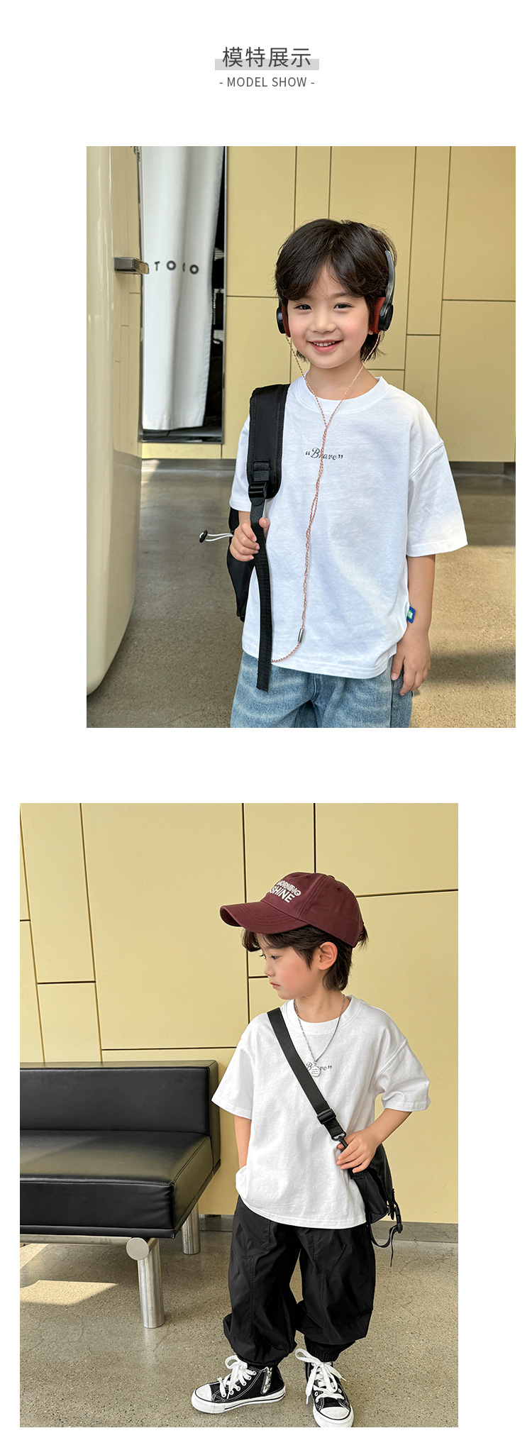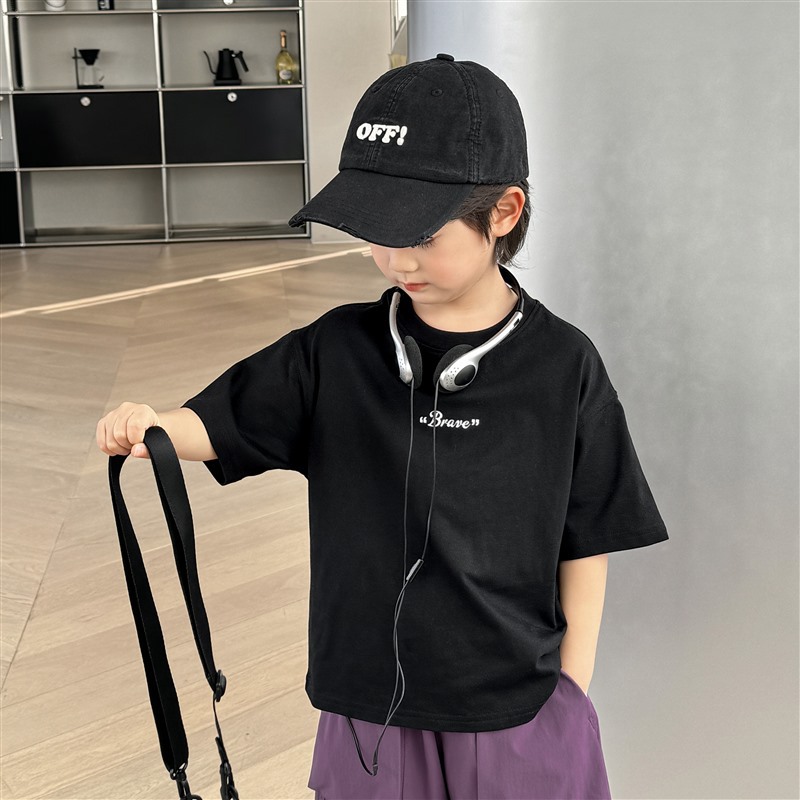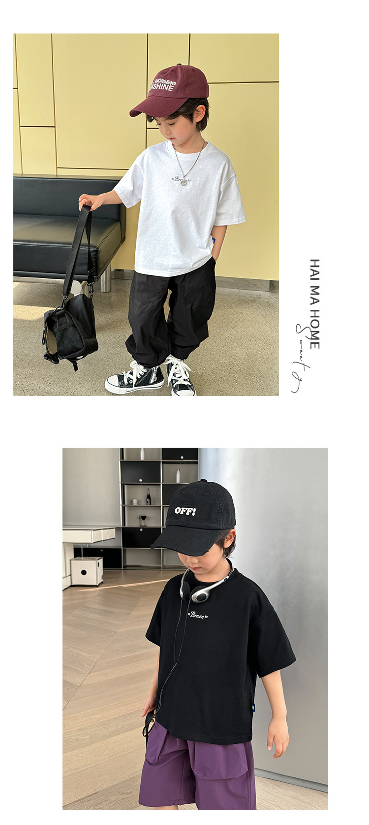 Haima 소년 반팔 티셔츠 순수 코튼 2025 여름 신작 아동 의류 아동 한국 의류 유행 단색 소녀스토어 가기