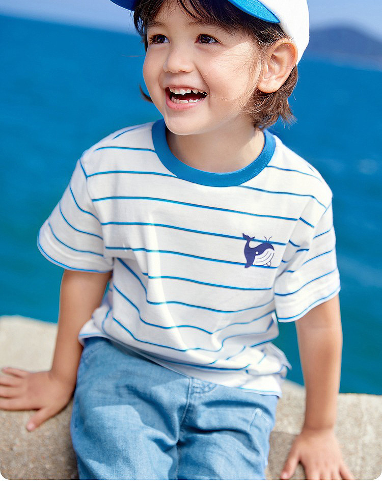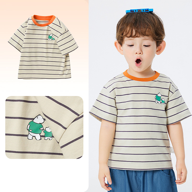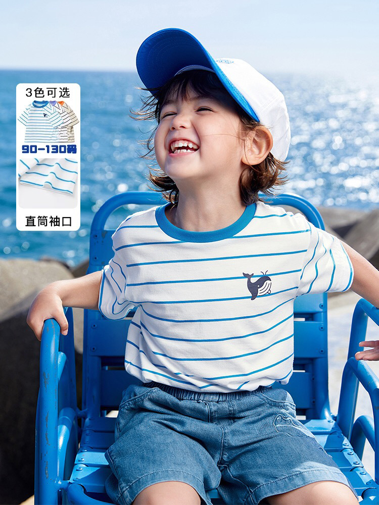 남학생 반소매 티셔츠 어린이 아기 줄무늬 반소매 어린이 티셔츠 2023 여름 새 아동복 탑 반소매스토어 가기