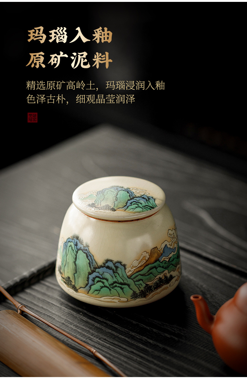 베이지 루 가마 세라믹 차 냄비 스몰 사이즈 그린 푸어 레드 녹차 포장 밀봉 향기로운 분말 냄비 고정 로고스토어 가기