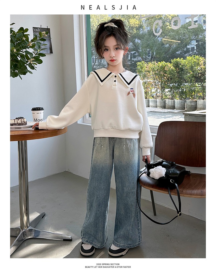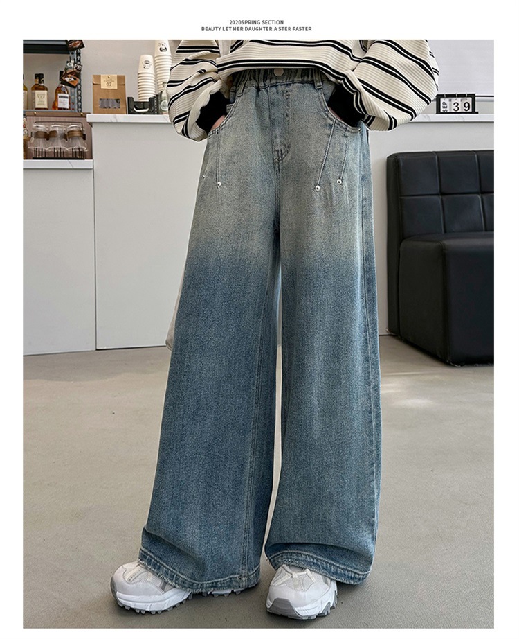 소녀의 넓은 다리 바지 봄과 가을 2024 새로운 어린이 서양식 큰 어린이 데님 바지 봄 다재다능한 캐주얼 와이드 레그 바지