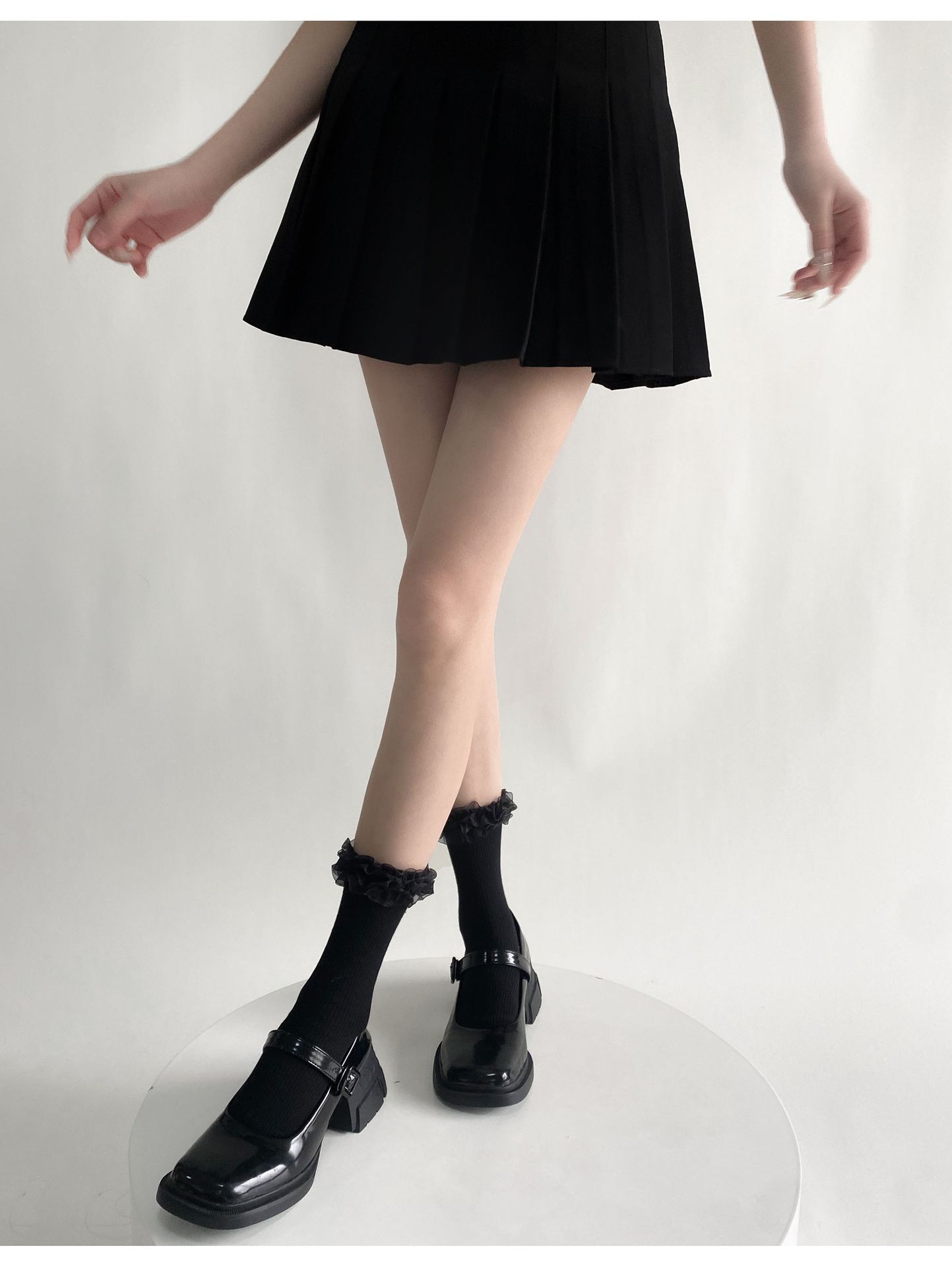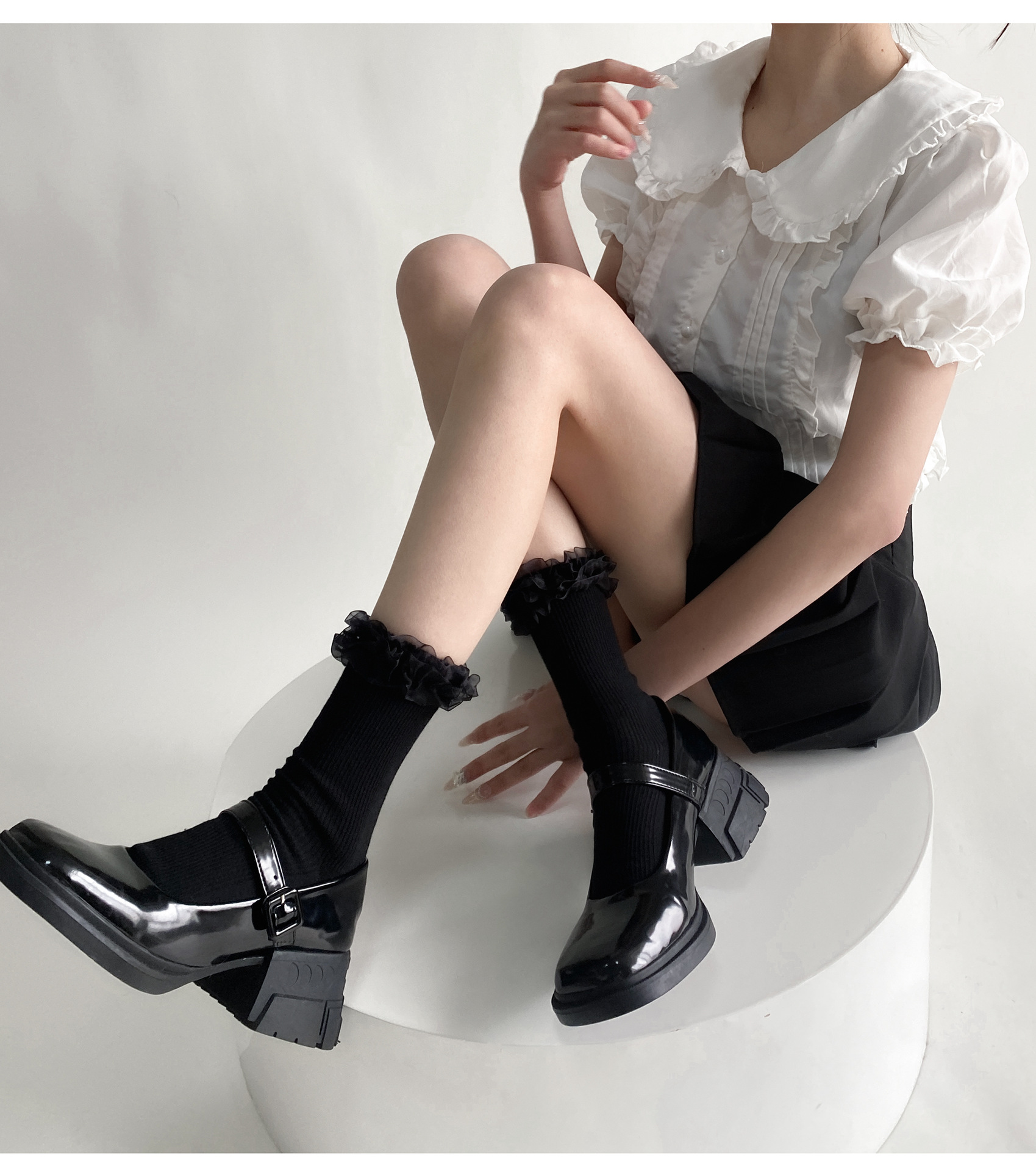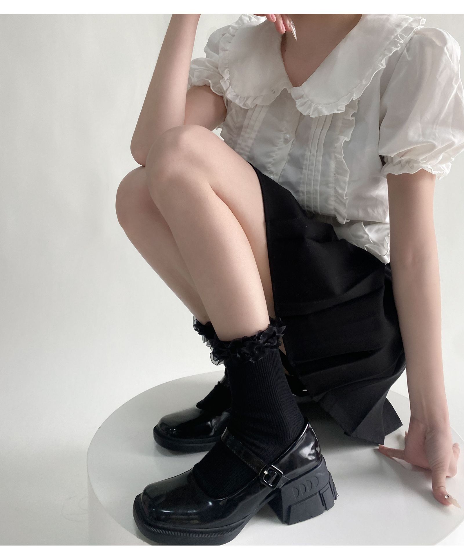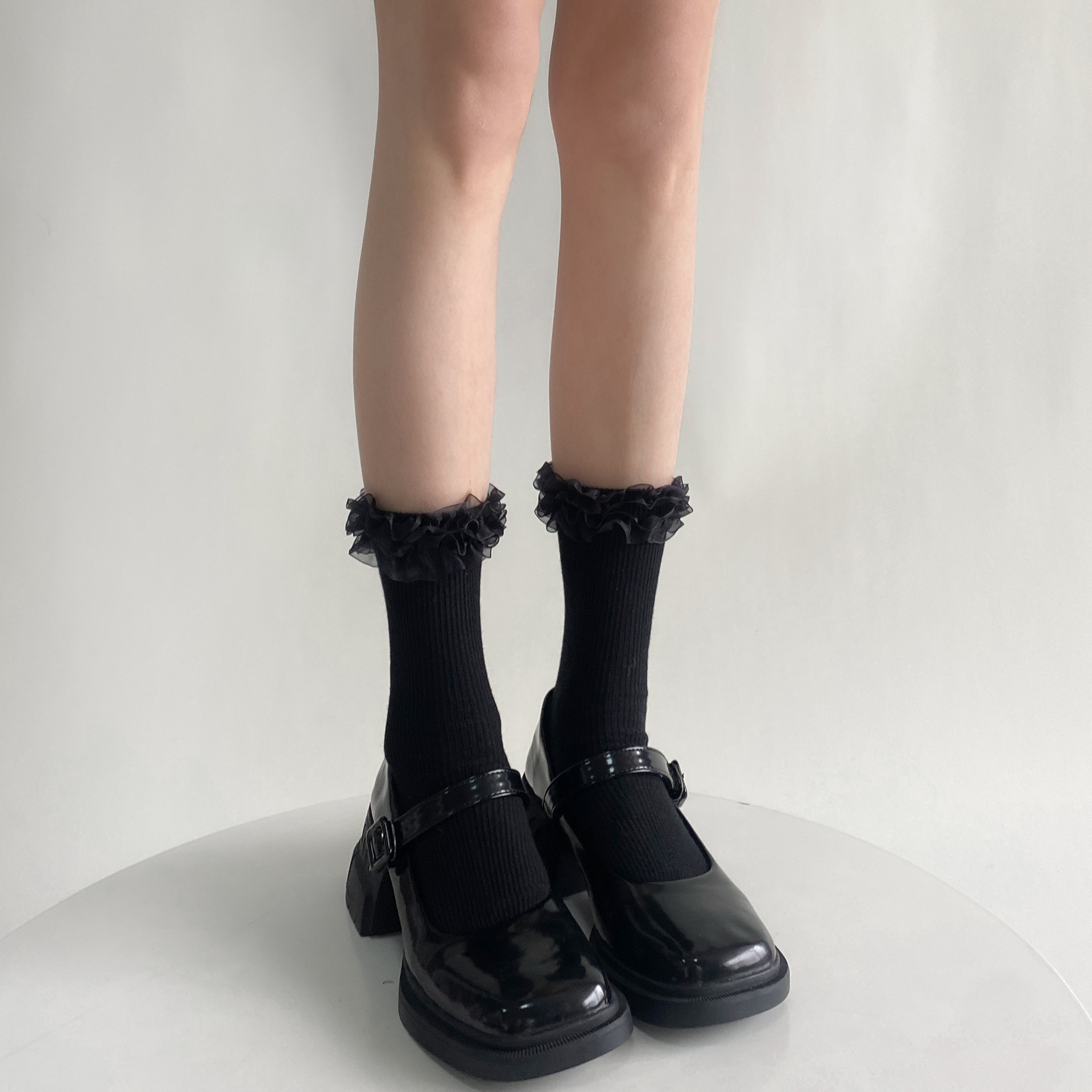 일본식 달콤한 로리타 흰색 메쉬 세로 줄무늬 더미 양말 슬리밍 JK 실 코튼 양말 여성의 중간 종아리 길이 양말스토어 가기