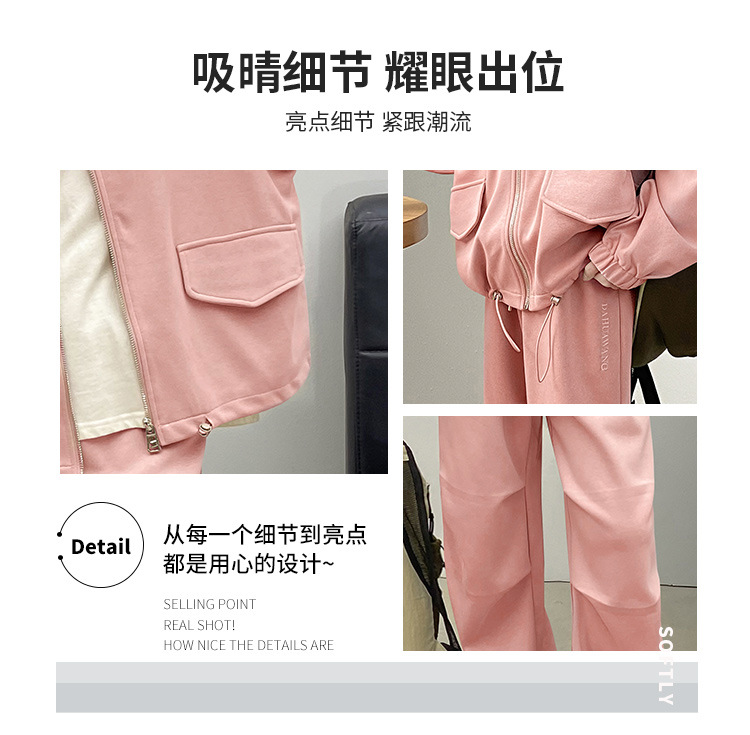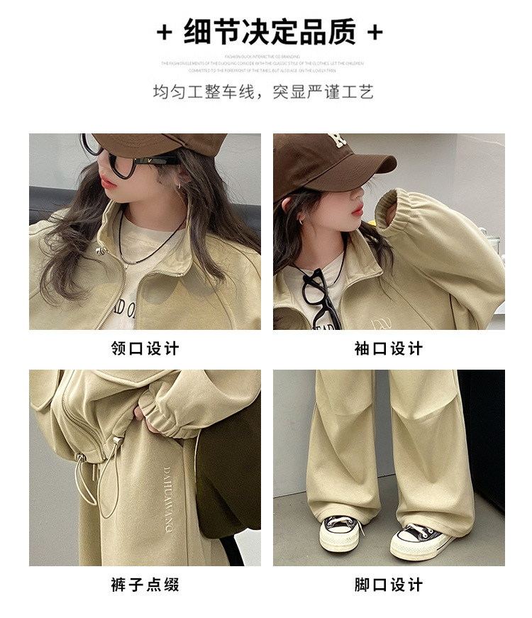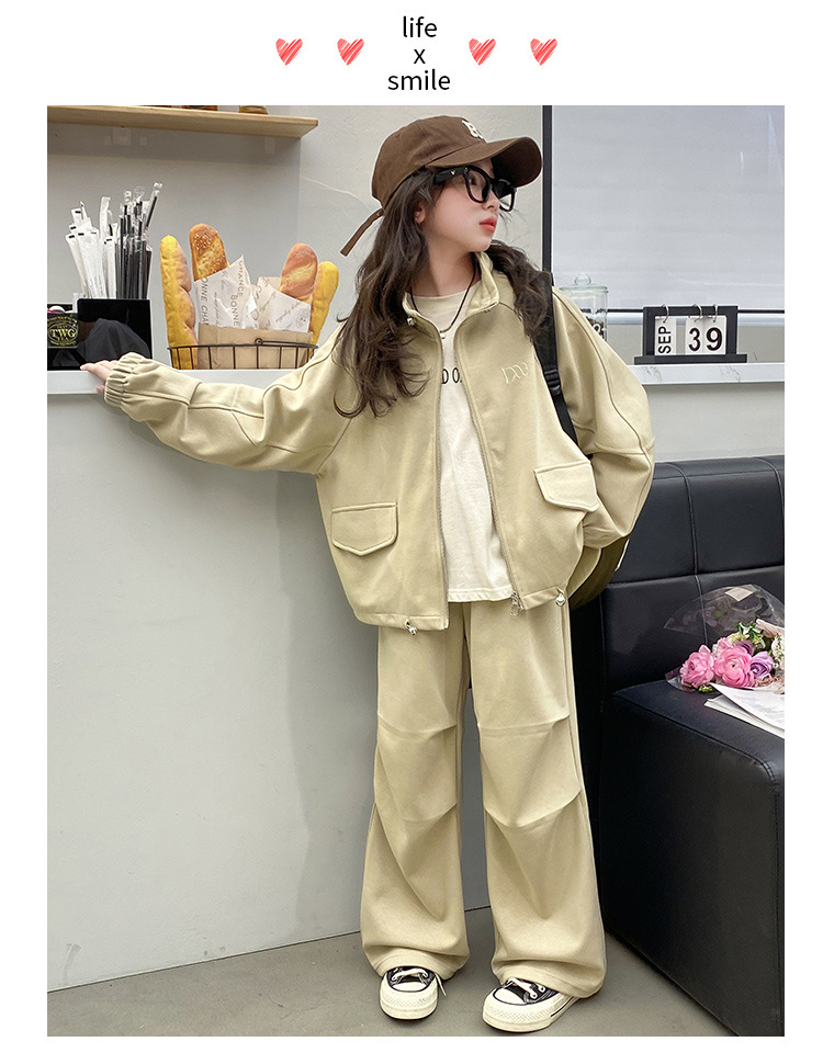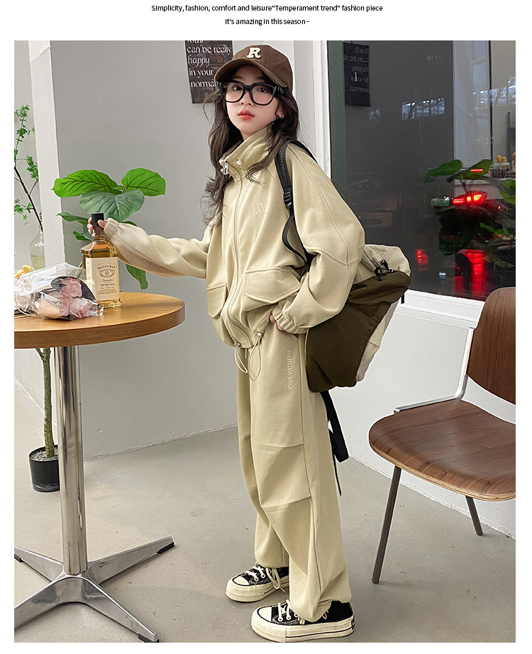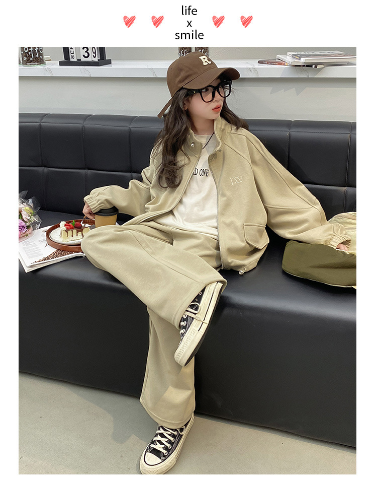 소녀의 봄과 가을 스포츠 세트 2024 새로운 중형 및 대형 어린이 봄 캐주얼 스탠드 칼라 스웨터 작업복 스타일 투피스 세트스토어 가기