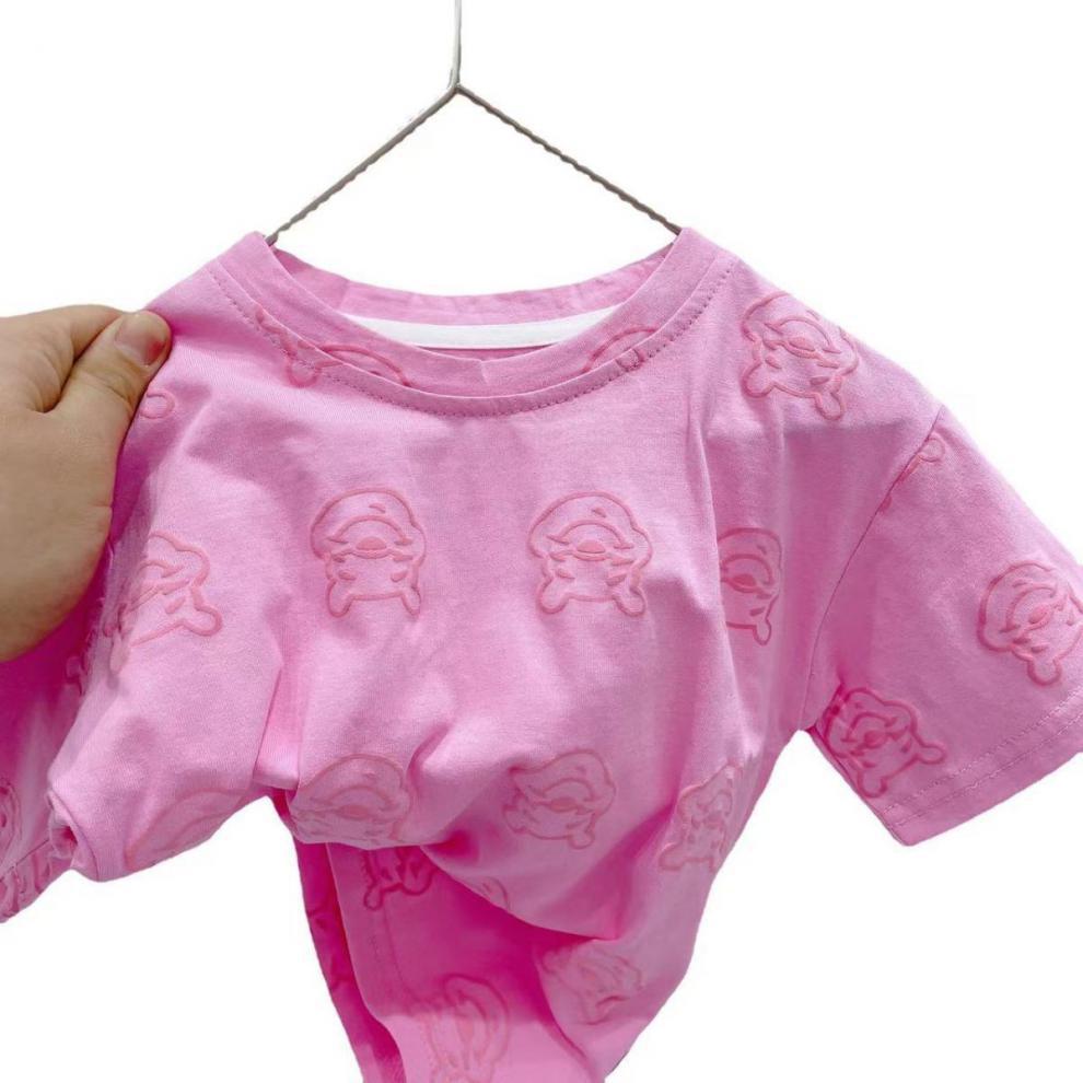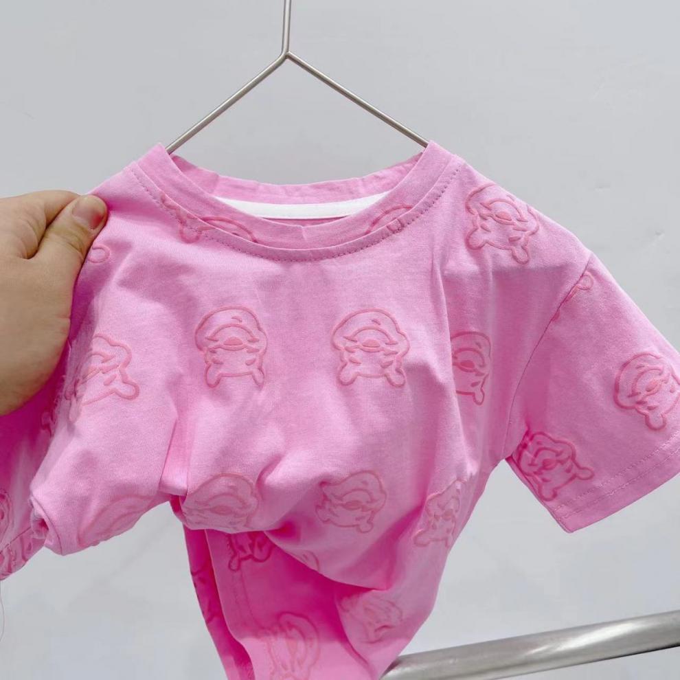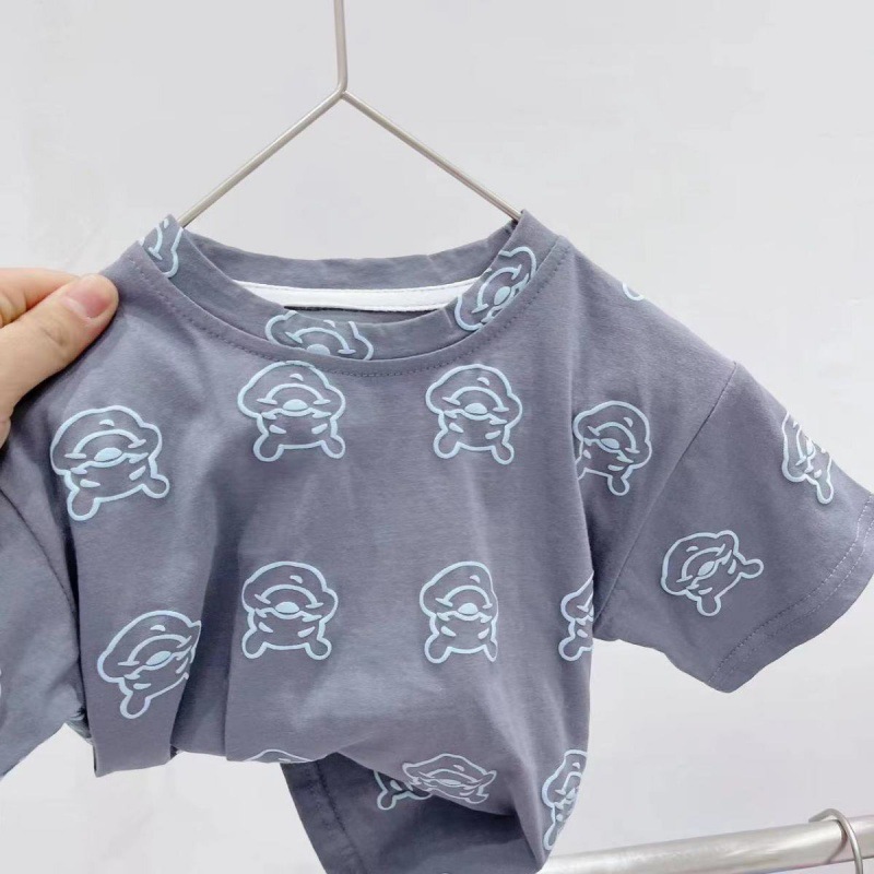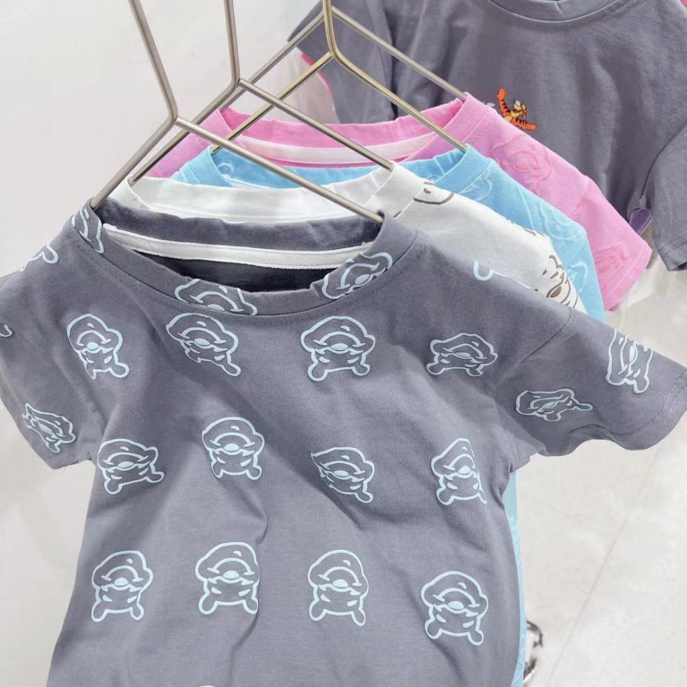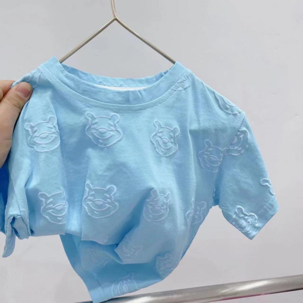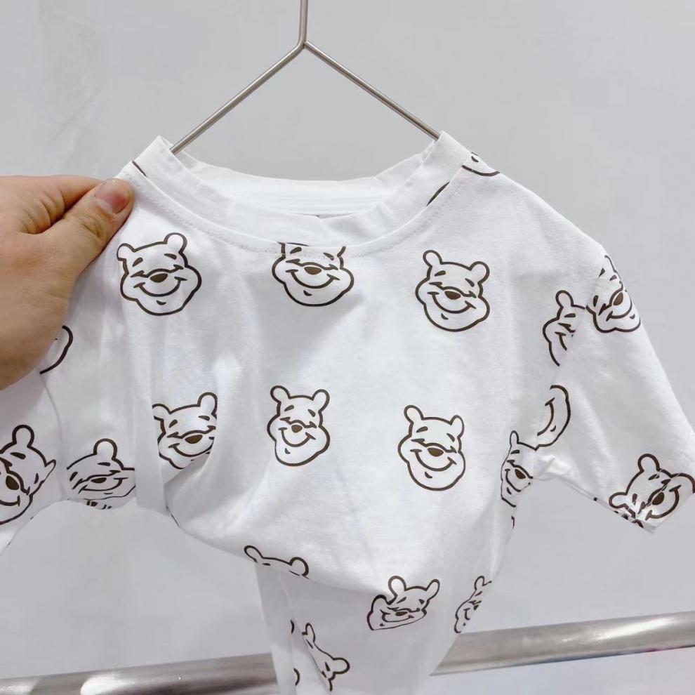 어린이 의류 95 면화 반팔 티셔츠 2024 여름 아기 소년 얇은 헤비 듀티 프린트 푸우 베어 아동용 탑