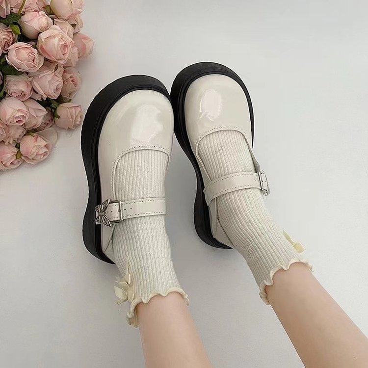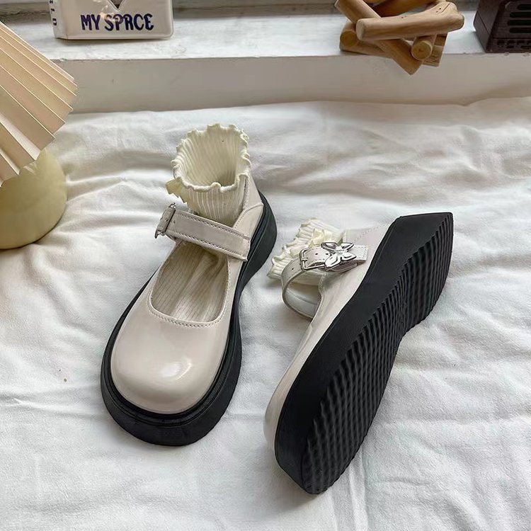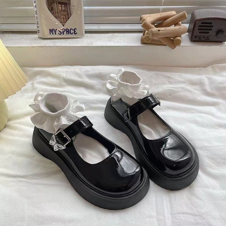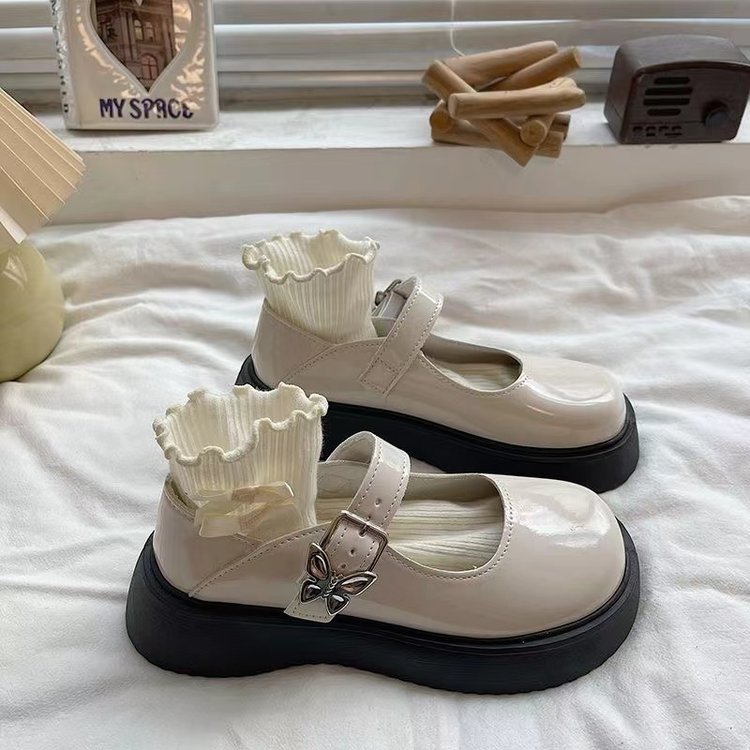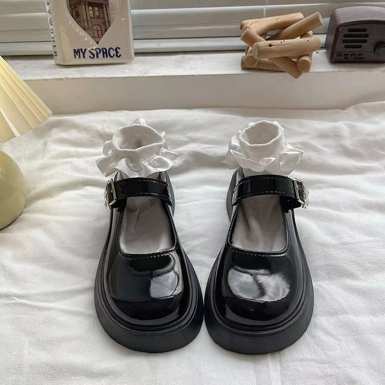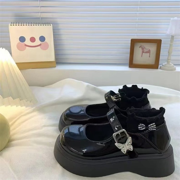 두꺼운 밑창 Mary Jane 가죽 신발 2024 새로운 광택 캠퍼스 학생 올 매치 일본 jk Mary Jane 신발 로퍼