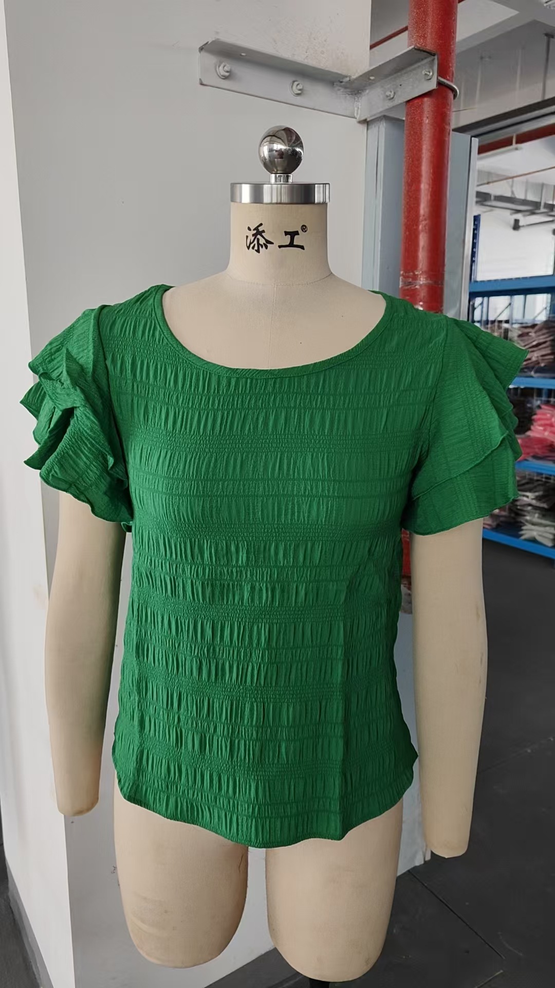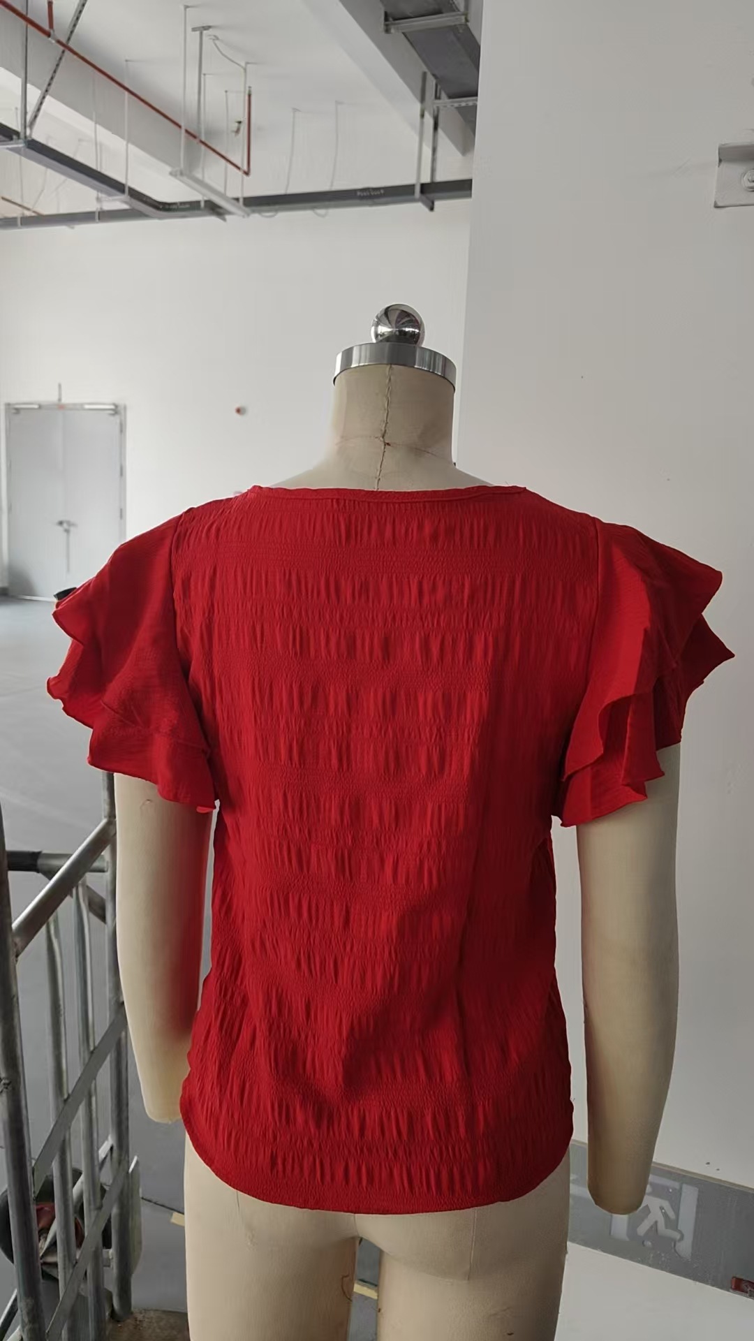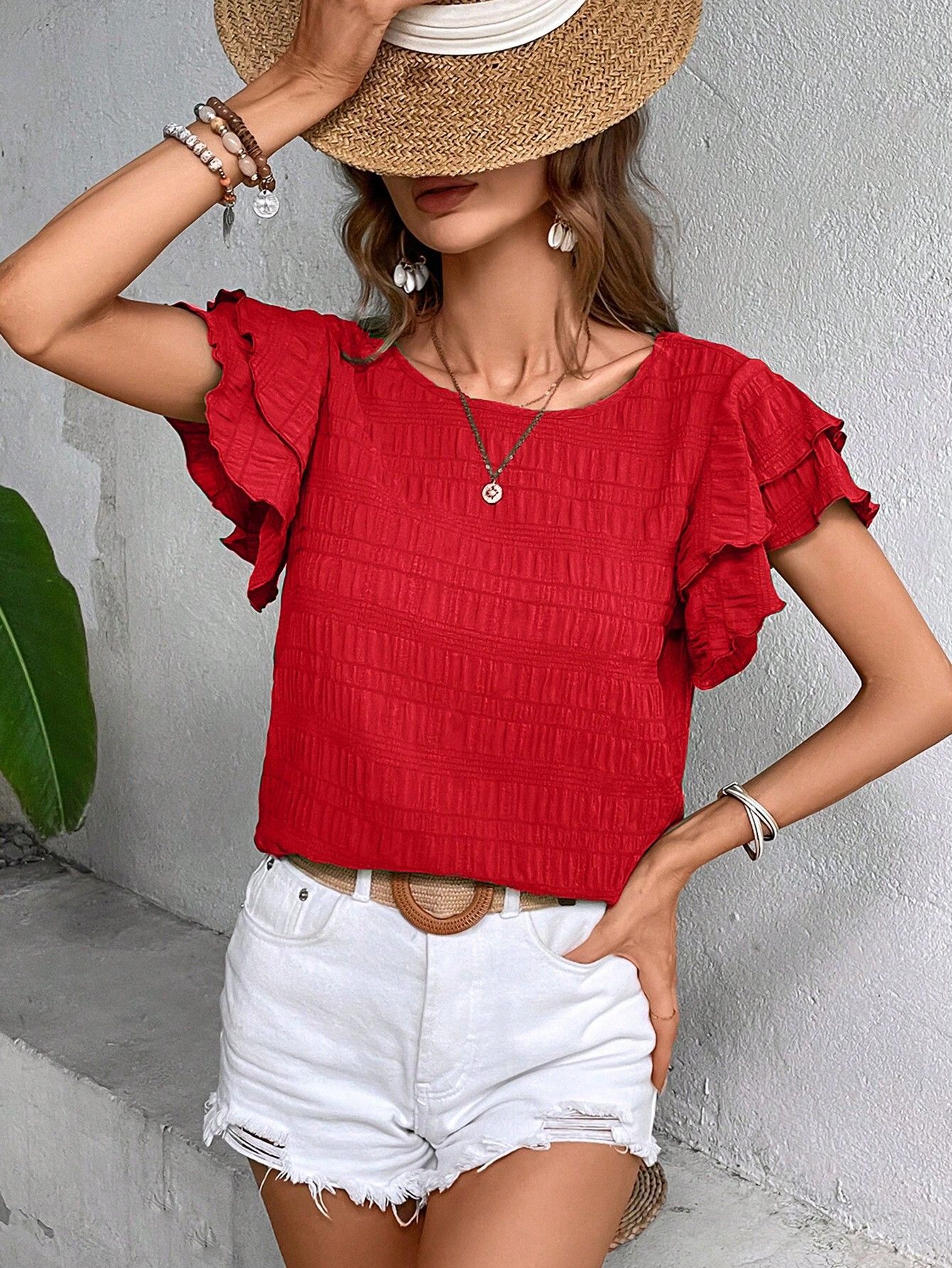 2026 유럽 및 미국 아마존 크로스보더 여성복 여름 신상품 이중 레이어 프릴 소매 라운드넥 우아한 풀오버 티셔츠 여성용스토어 가기