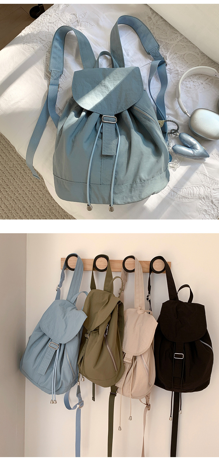 새로운 한국 배낭 간단한 여성 대학생 배낭 여행 대용량 경량 플립 커프 나일론 가방 여성스토어 가기