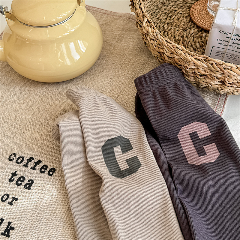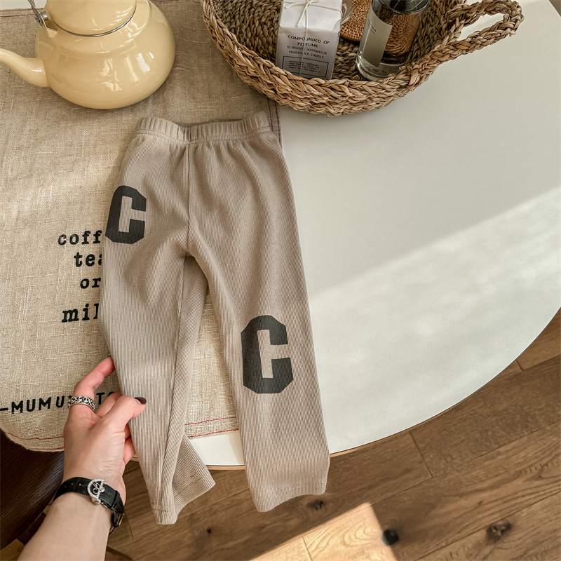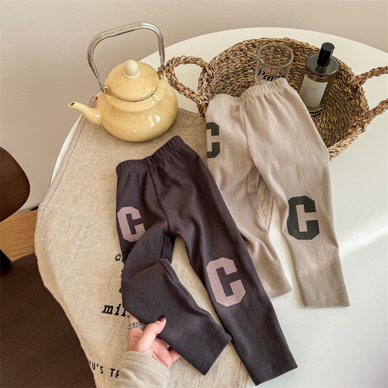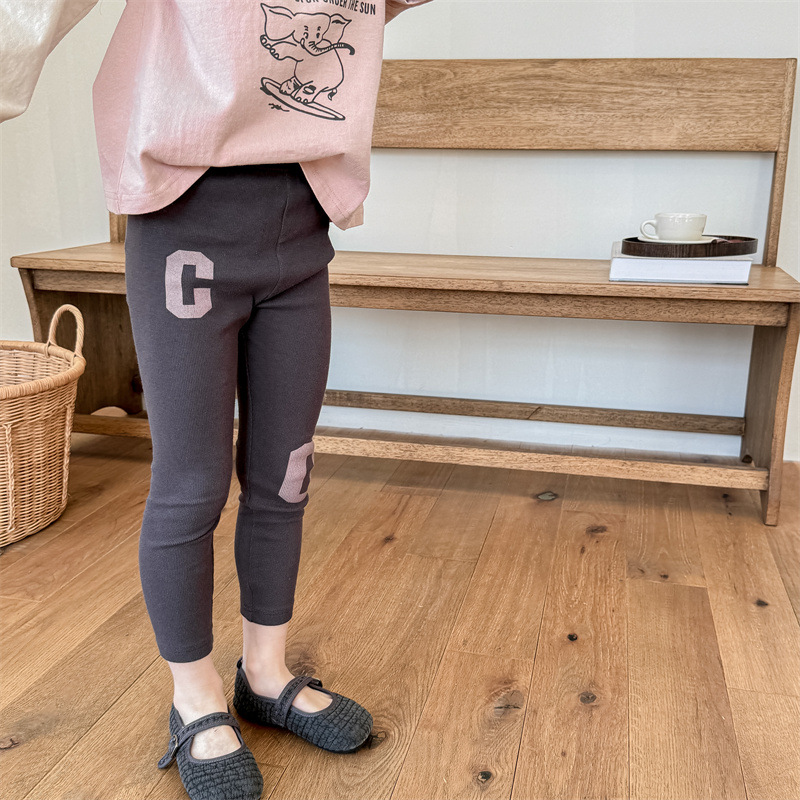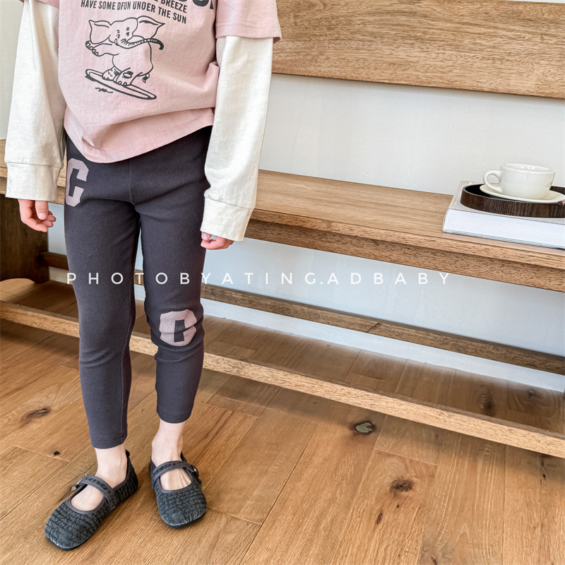 2024 봄 아동복 새 소녀 봄 옷 편지 인쇄 레깅스 어린이 바지 5089