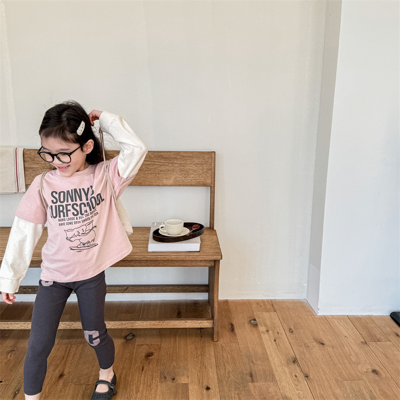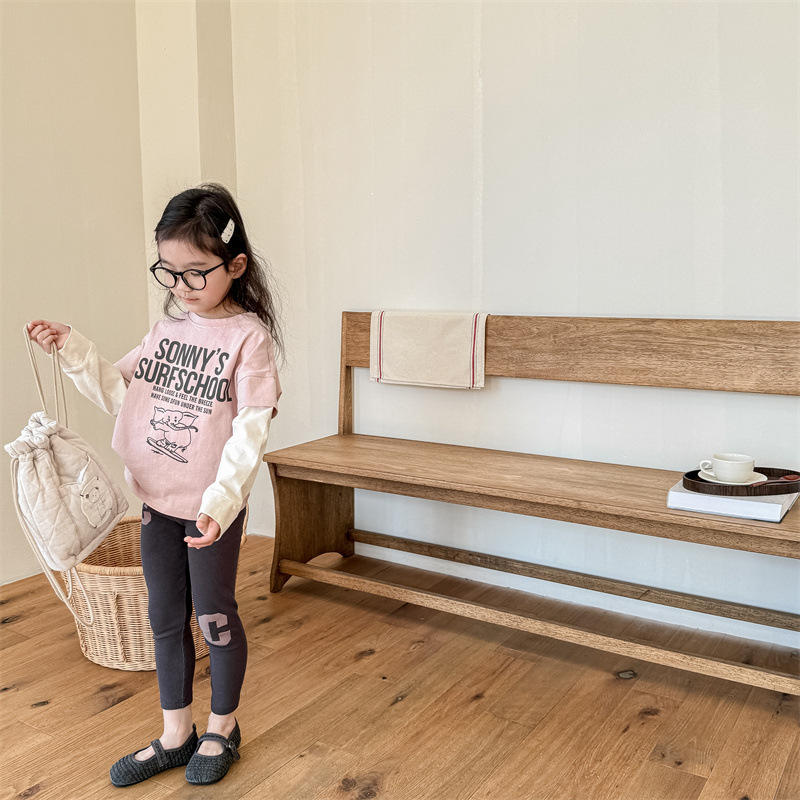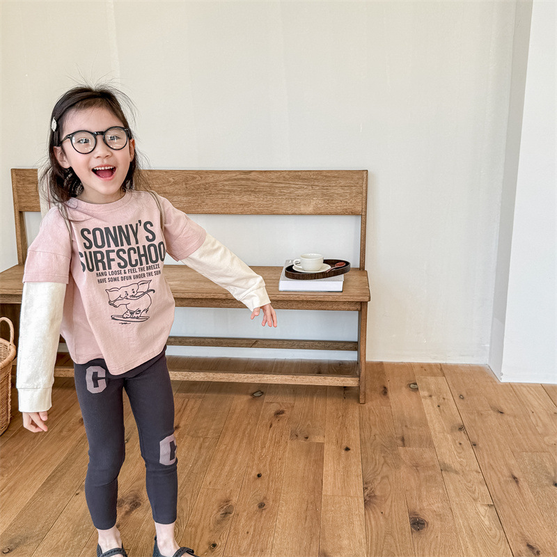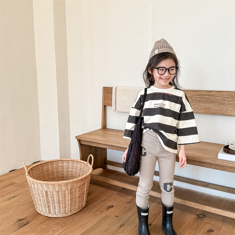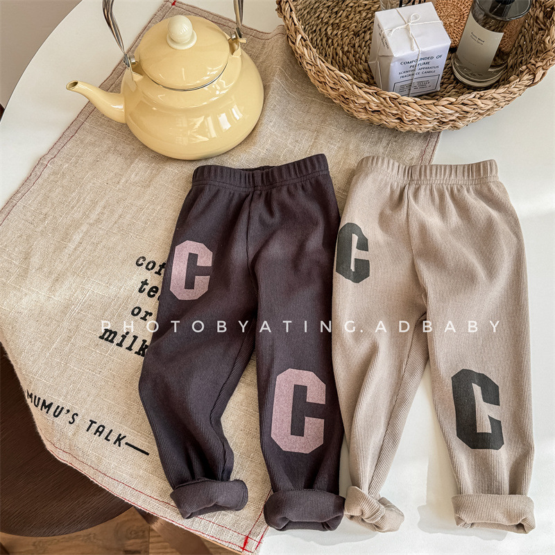 2024 봄 아동복 새 소녀 봄 옷 편지 인쇄 레깅스 어린이 바지 5089