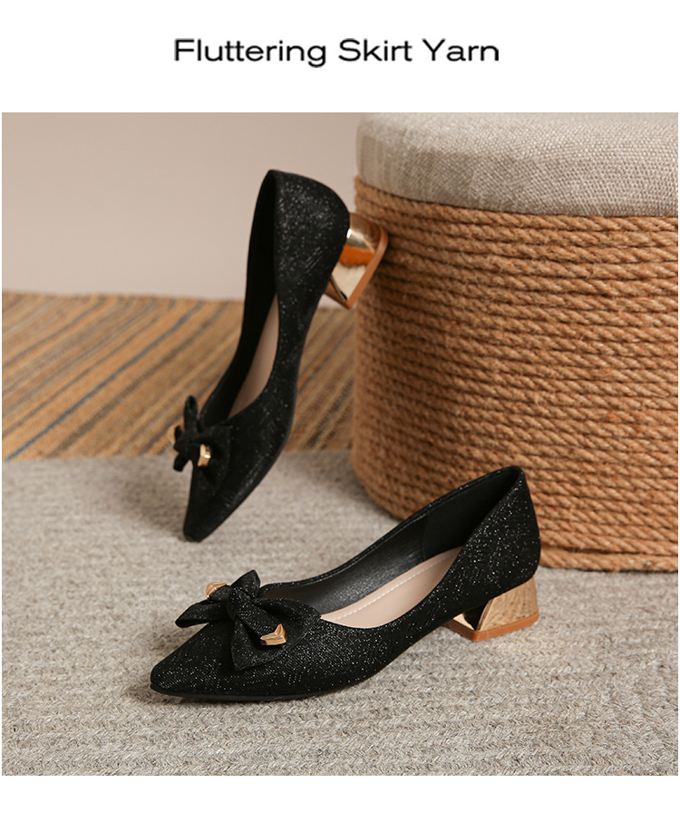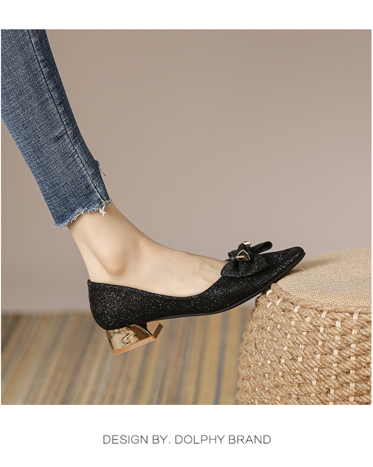 2024 봄 새 이브닝 신발 프렌치 청키 힐 하이힐 뾰족한 싱글 레이어 신발 여성 미드 힐 대형 신발 40-43 여성 신발