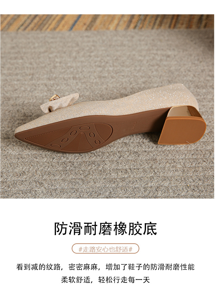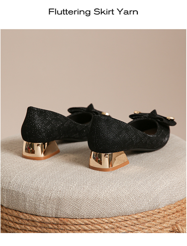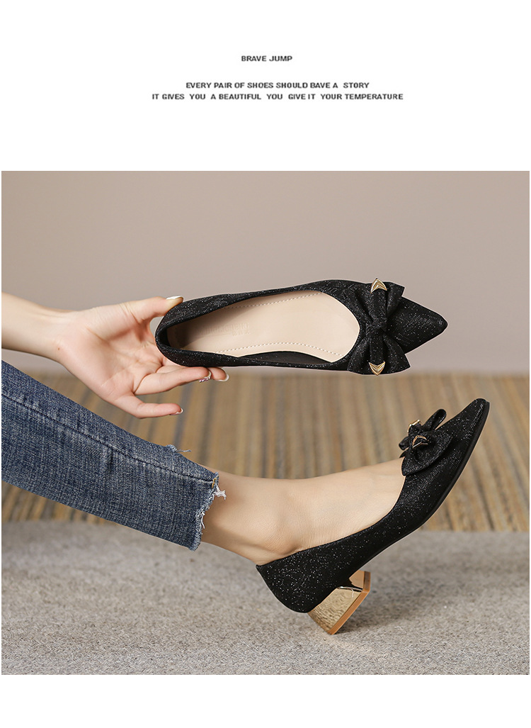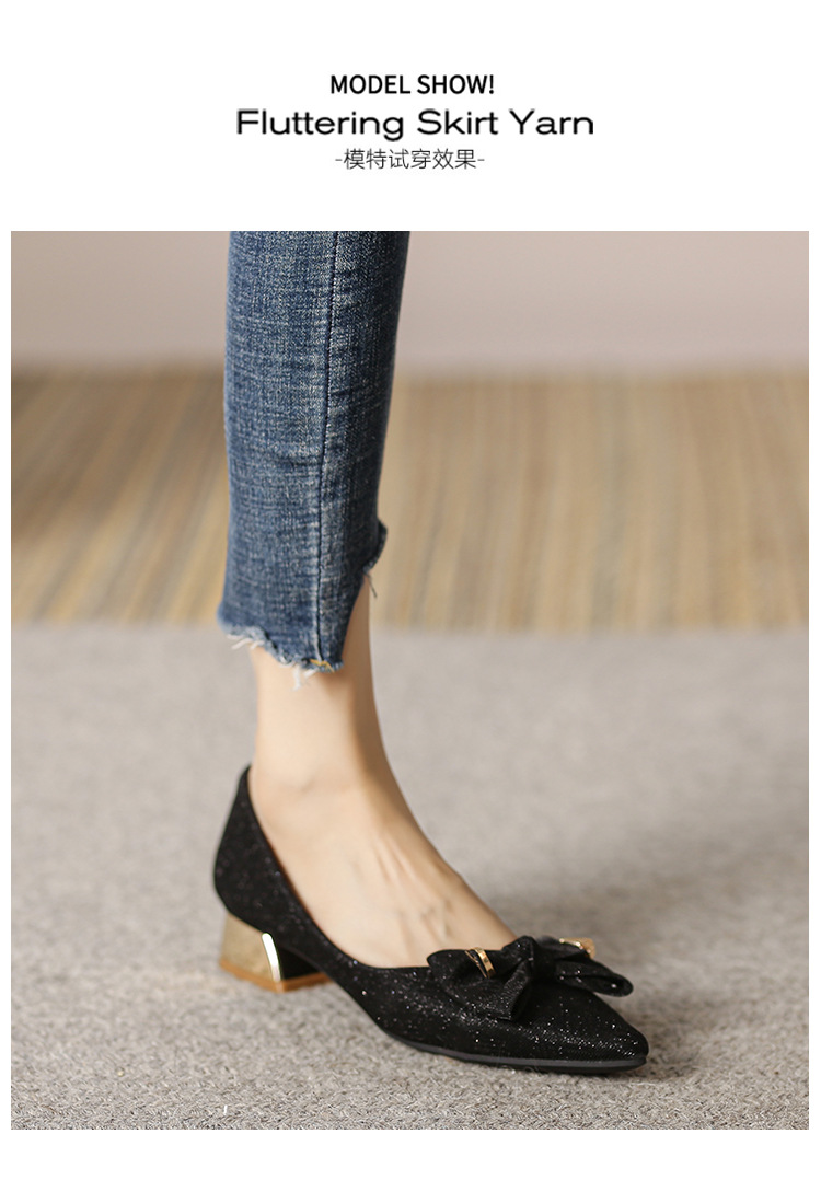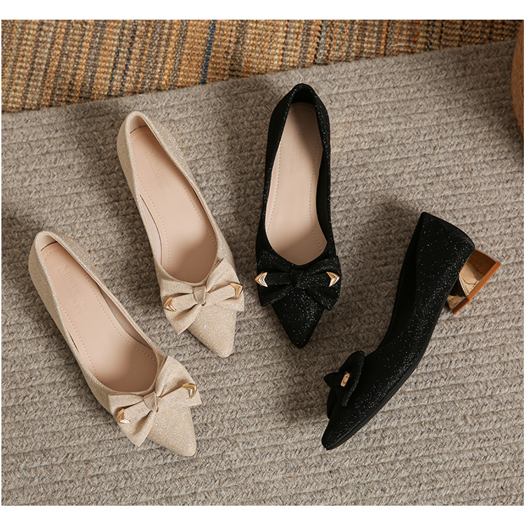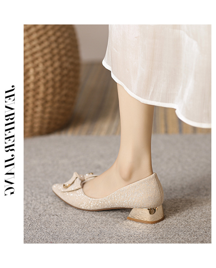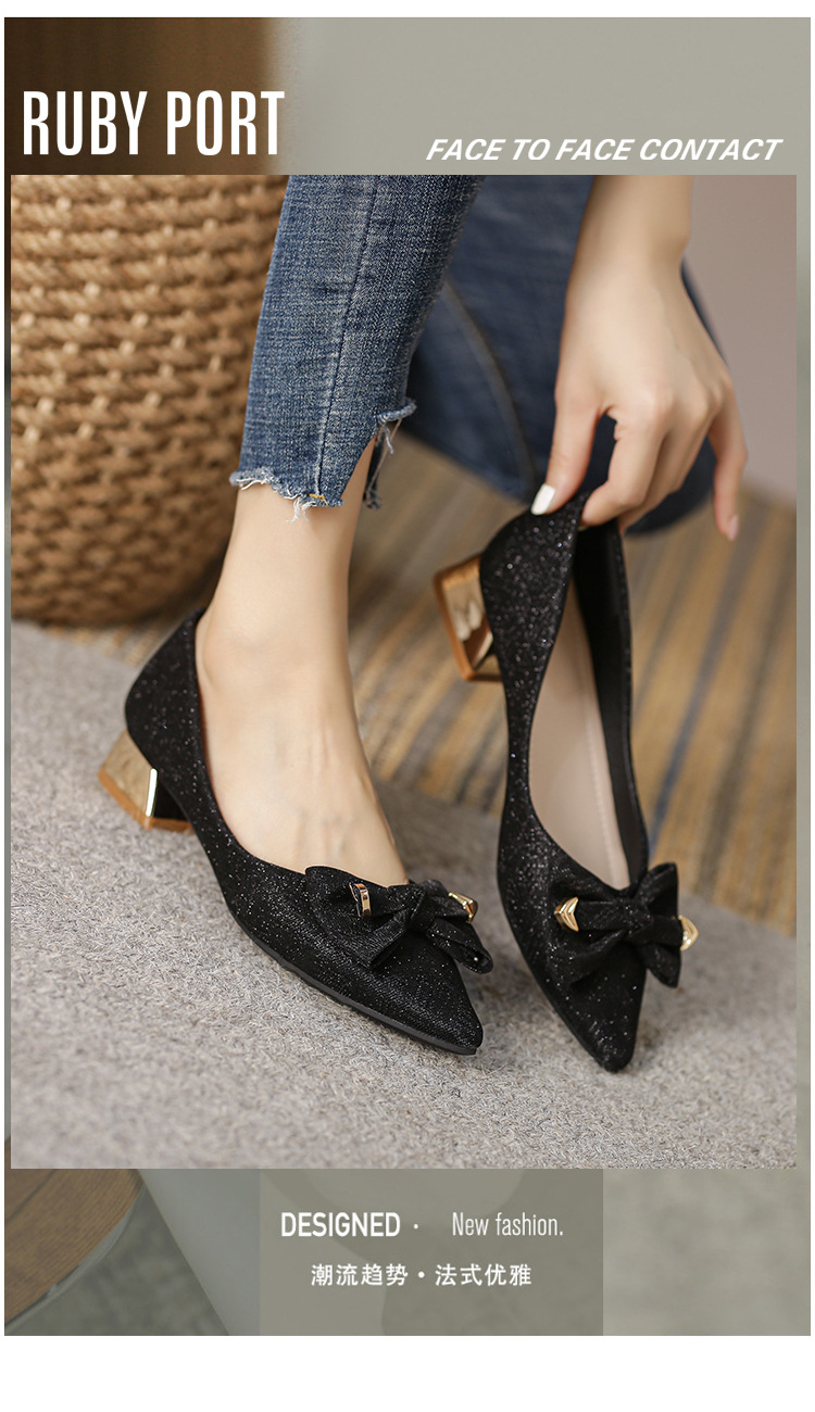 2024 봄 새 이브닝 신발 프렌치 청키 힐 하이힐 뾰족한 싱글 레이어 신발 여성 미드 힐 대형 신발 40-43 여성 신발스토어 가기