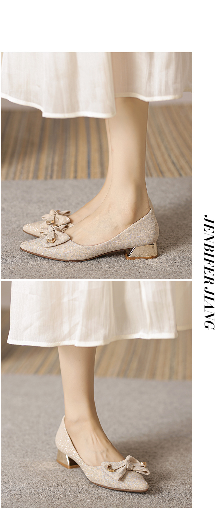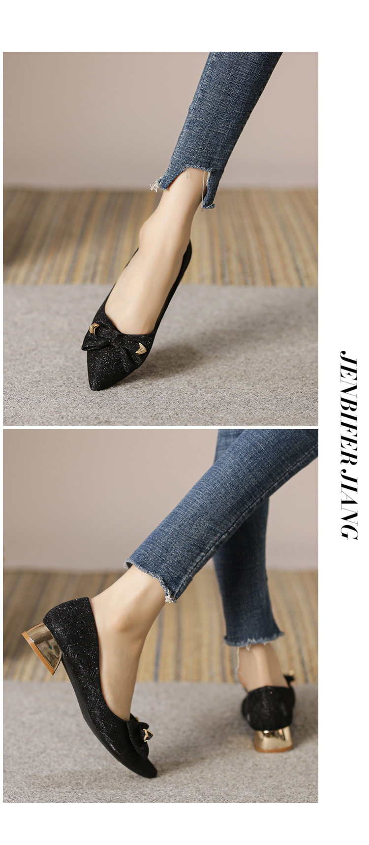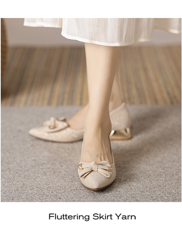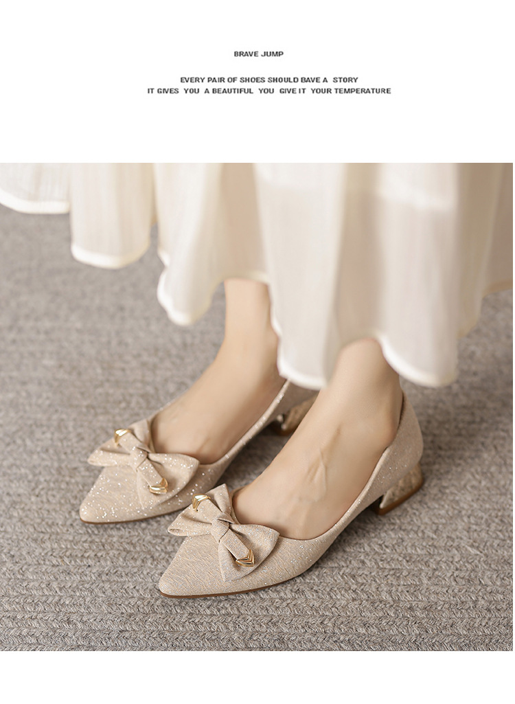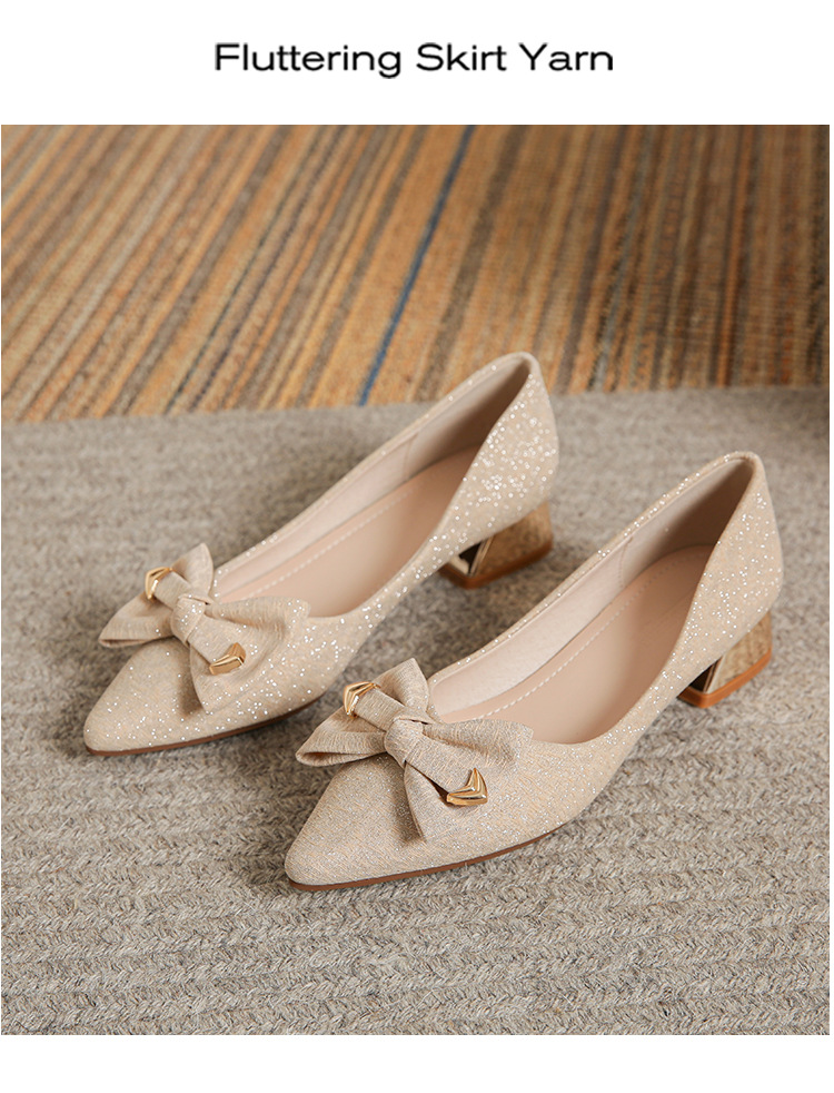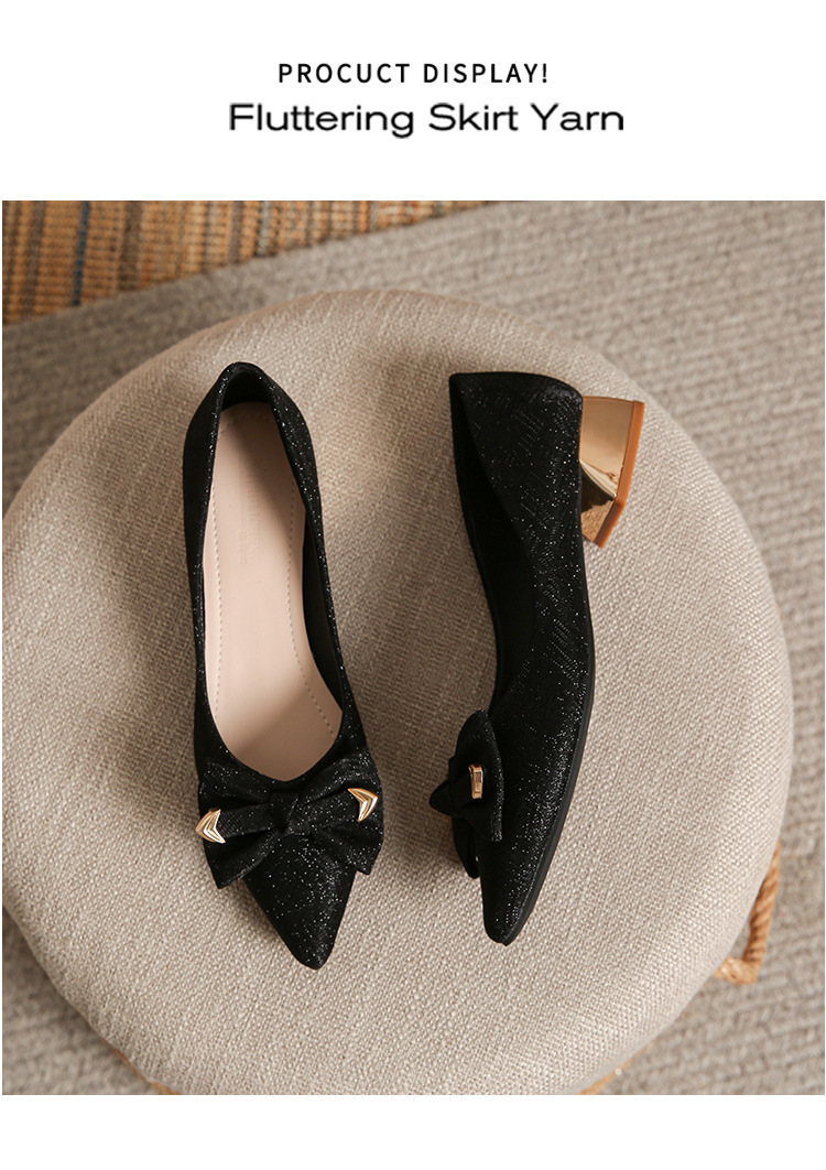 2024 봄 새 이브닝 신발 프렌치 청키 힐 하이힐 뾰족한 싱글 레이어 신발 여성 미드 힐 대형 신발 40-43 여성 신발스토어 가기