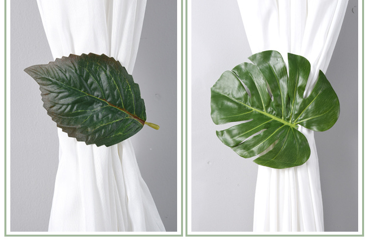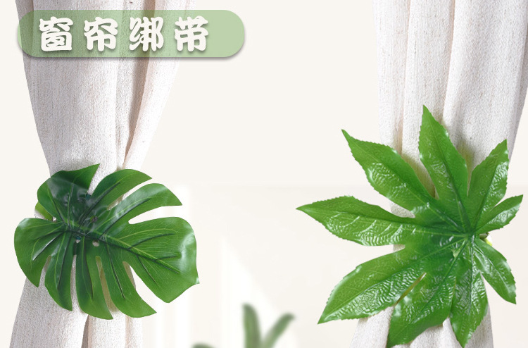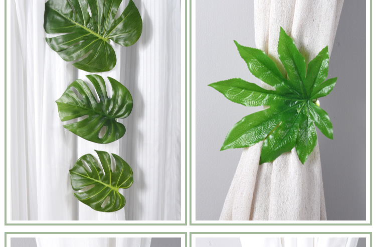 커튼 스트랩 국경 새로운 녹색 식물 창 화면 창 장식 시뮬레이션은 펀치없는 부드러운 장식 거북이 잎 커튼 클립을 남깁니다.스토어 가기