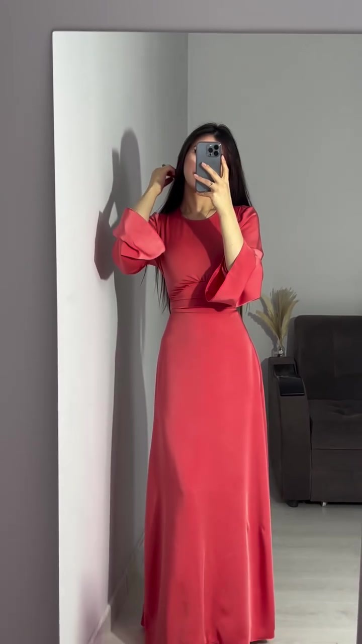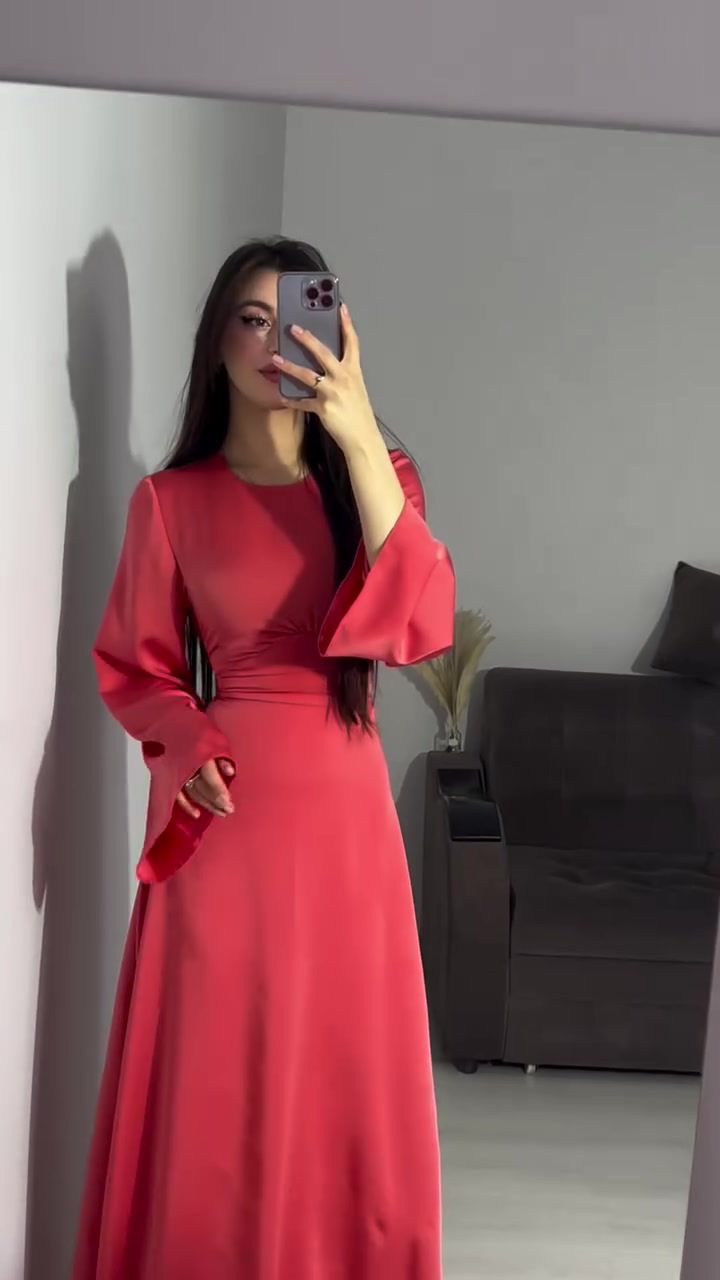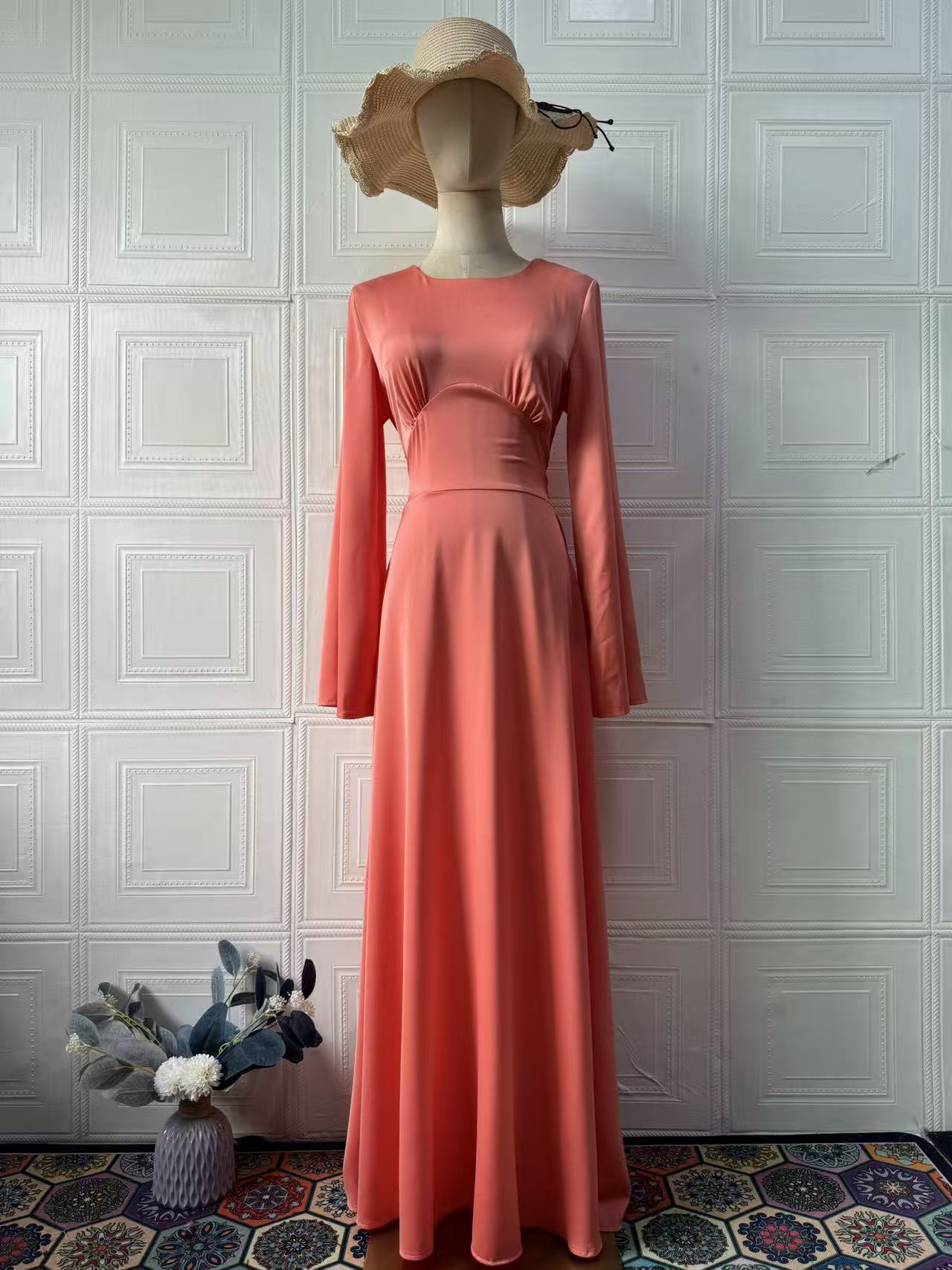 아마존 유럽과 미국의 2024 봄 새로운 허리 슬리밍 레이스 업 단색 긴 소매 원피스 기질 원피스 여성
