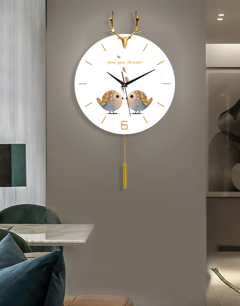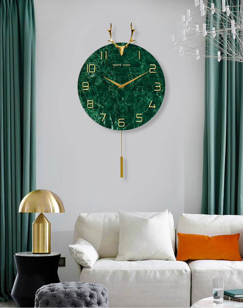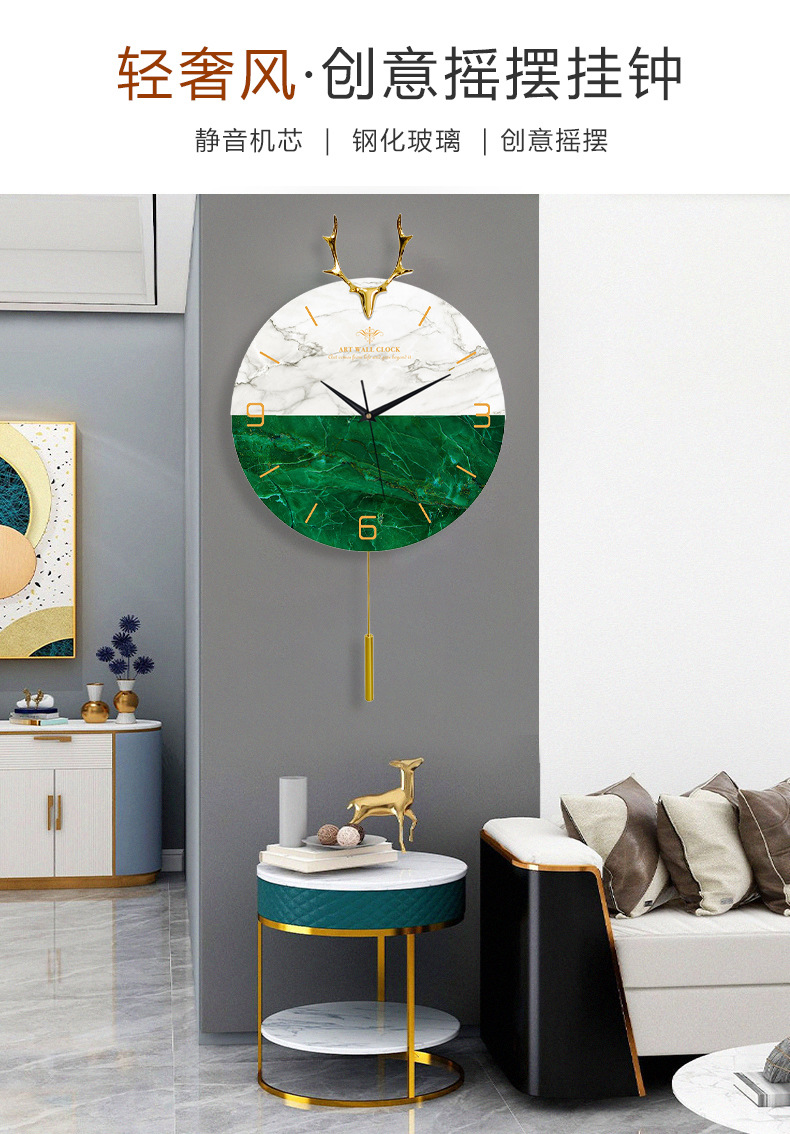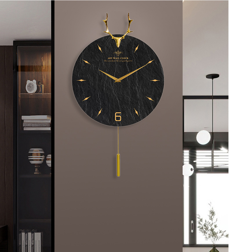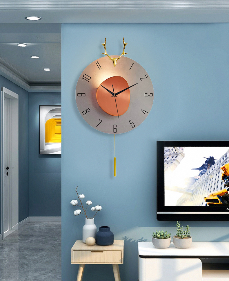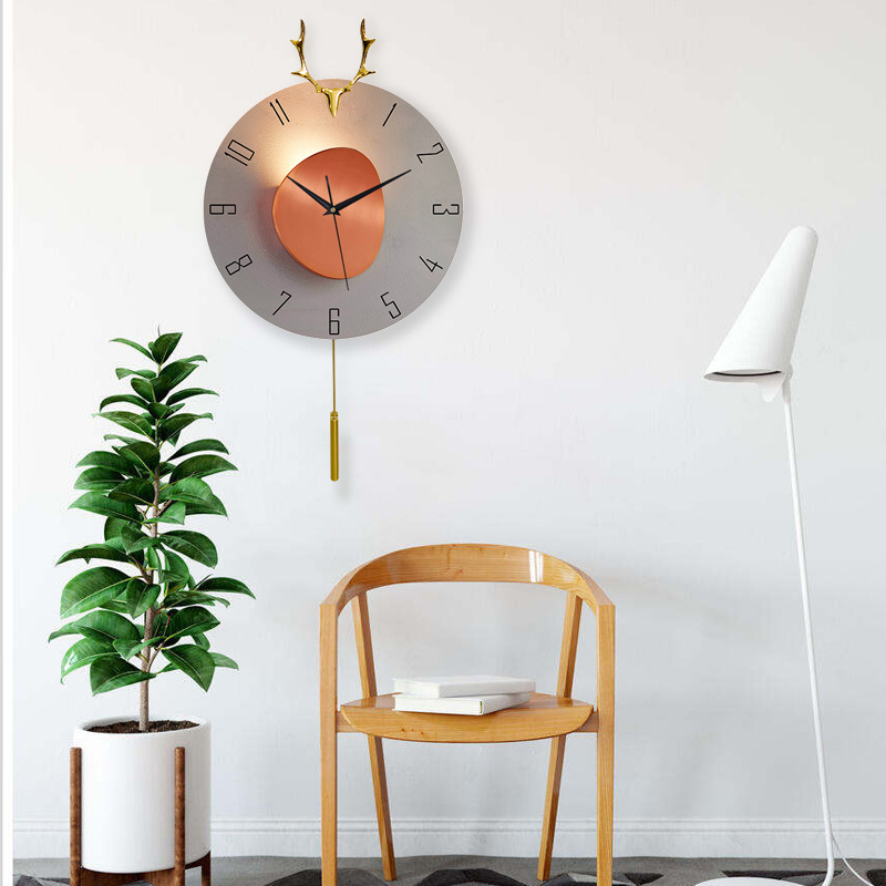 라이트 럭셔리 구리 도금 사슴 머리 시계 거실 레저 바 성격 스윙 벽 시계 패션 그물 붉은 음소거 장식 시계