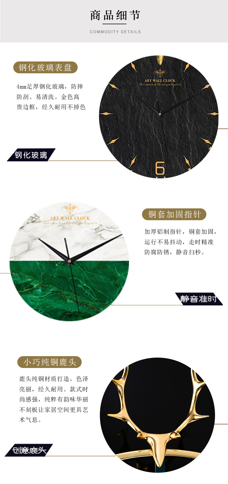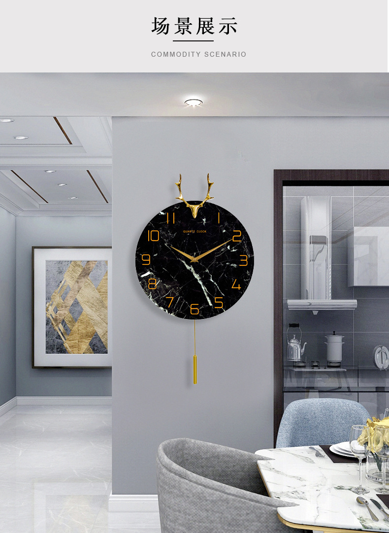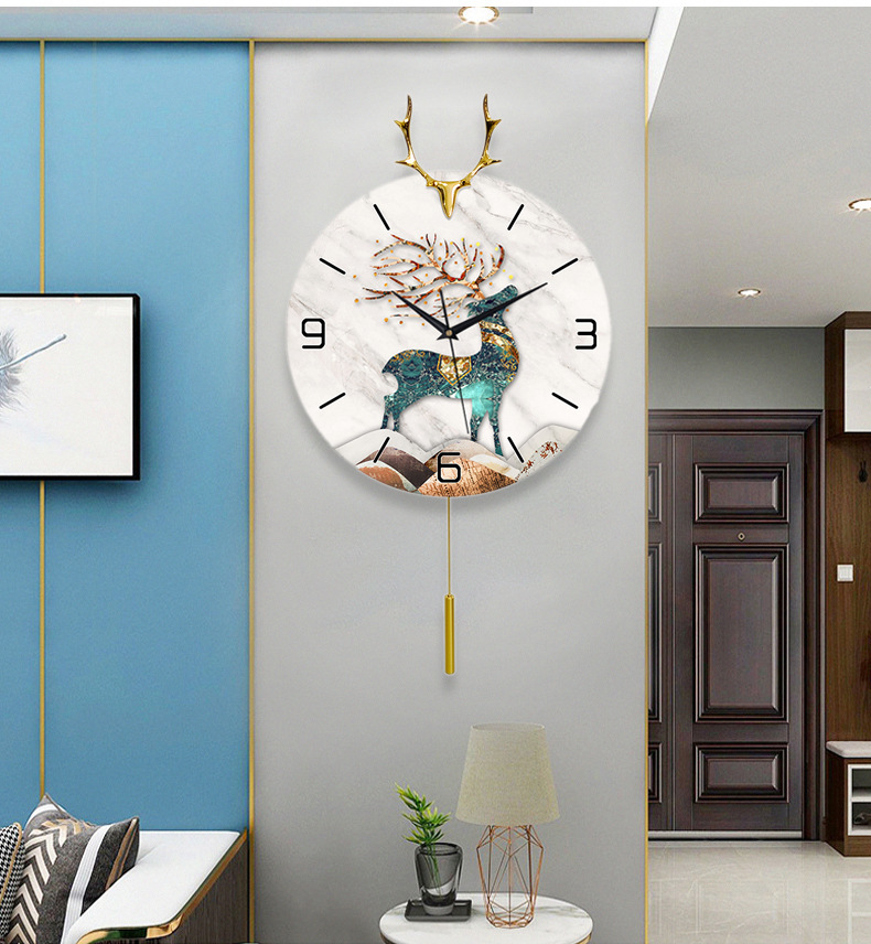 라이트 럭셔리 구리 도금 사슴 머리 시계 거실 레저 바 성격 스윙 벽 시계 패션 그물 붉은 음소거 장식 시계스토어 가기