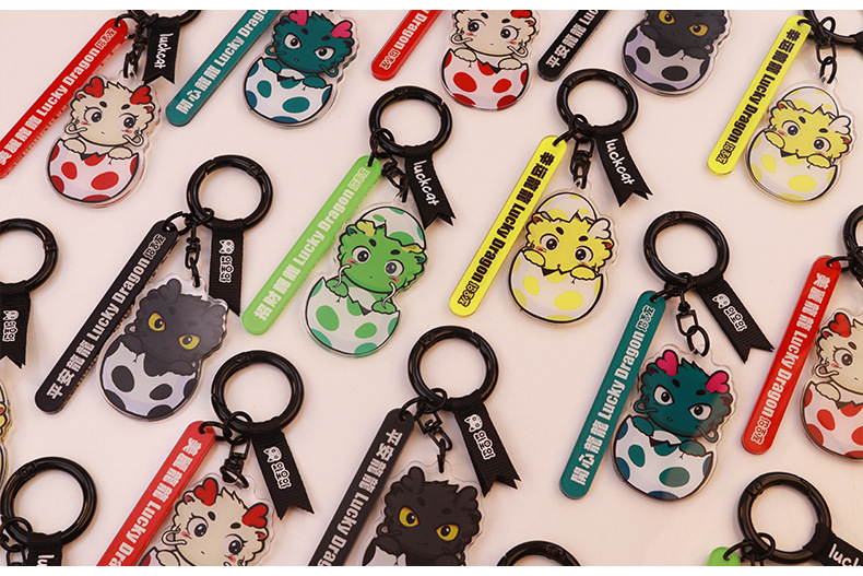 자오 지롱 키 체인 드래곤 년 창조적 인 용 계란 자동차 키 펜던트 백 펜던트 아크릴 장식스토어 가기