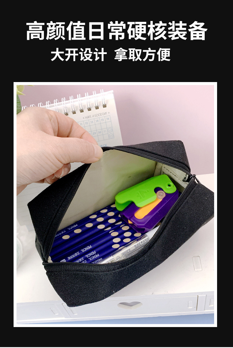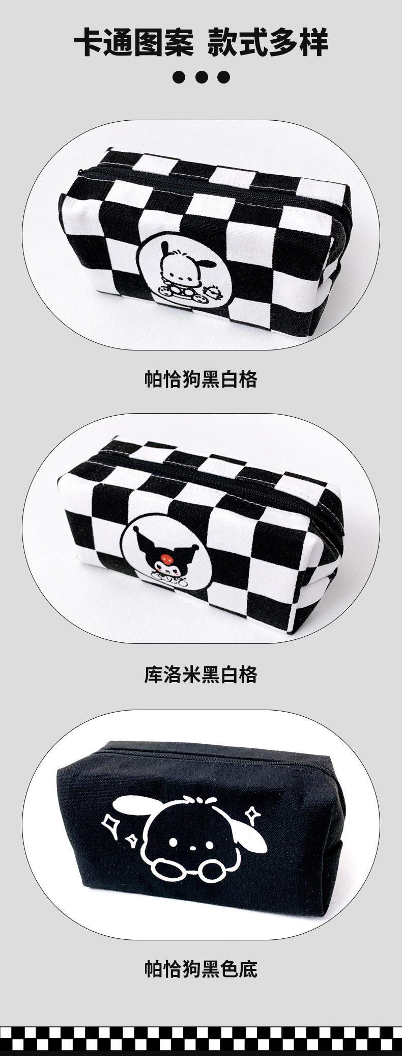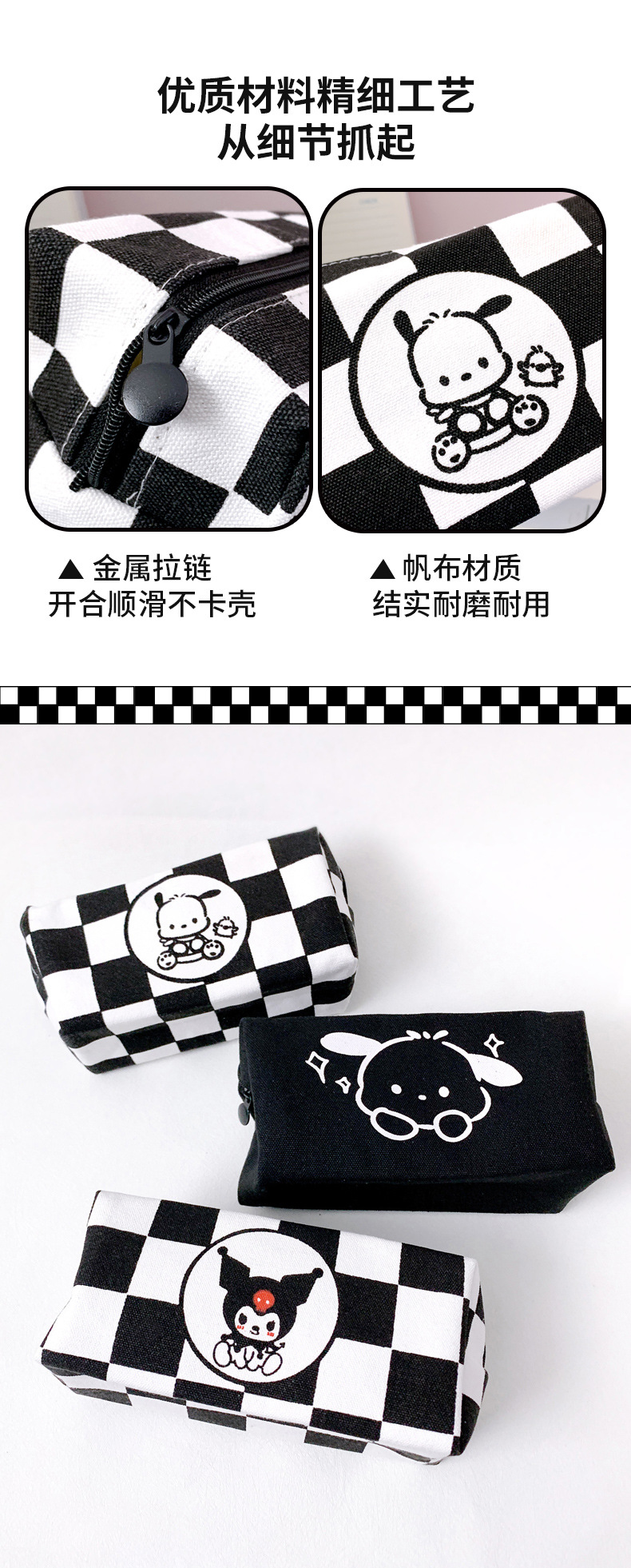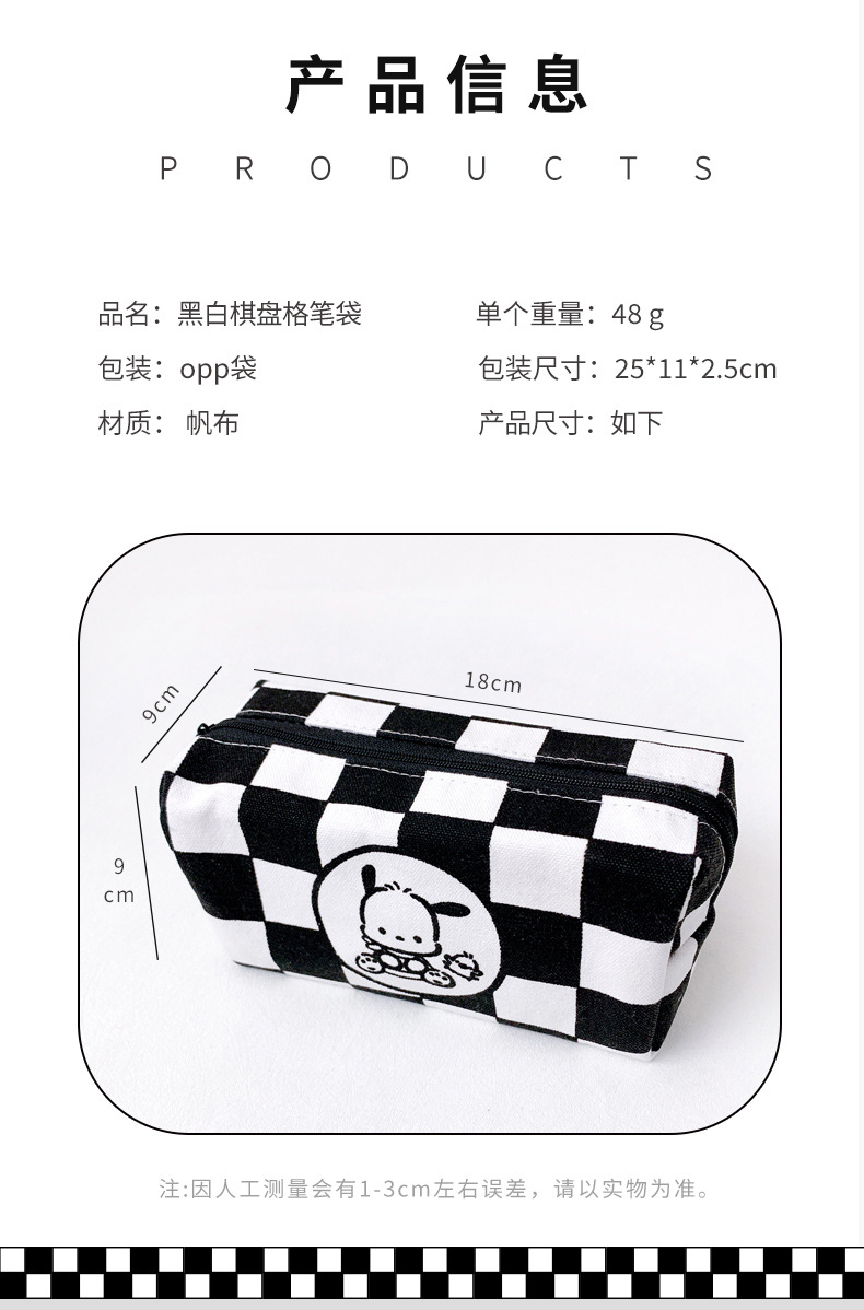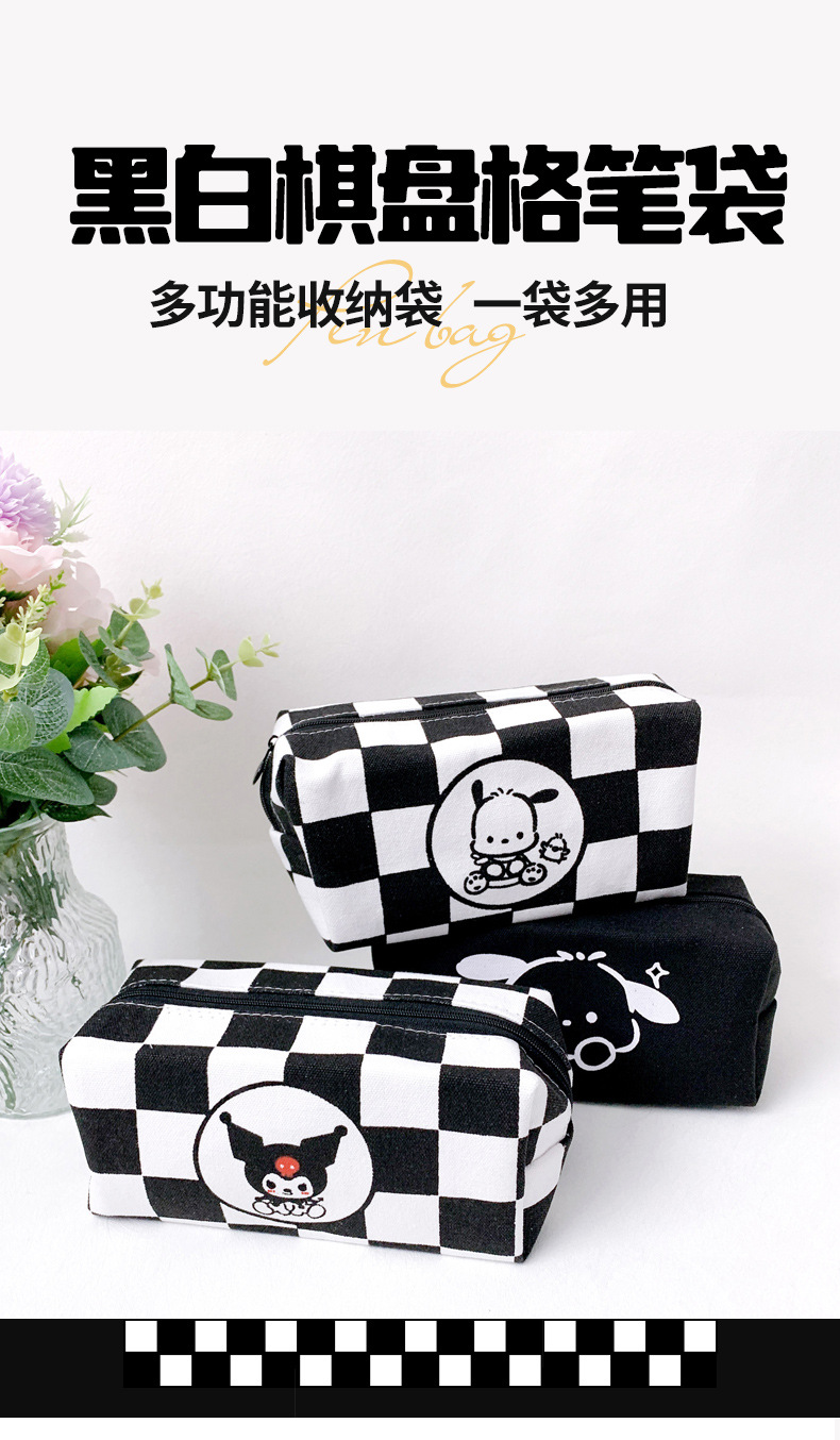파차도그가 들어가는 다용도 문구 가방, 흑백 체크무늬, 남녀 중고등학생용, 다기능 수납 가능
