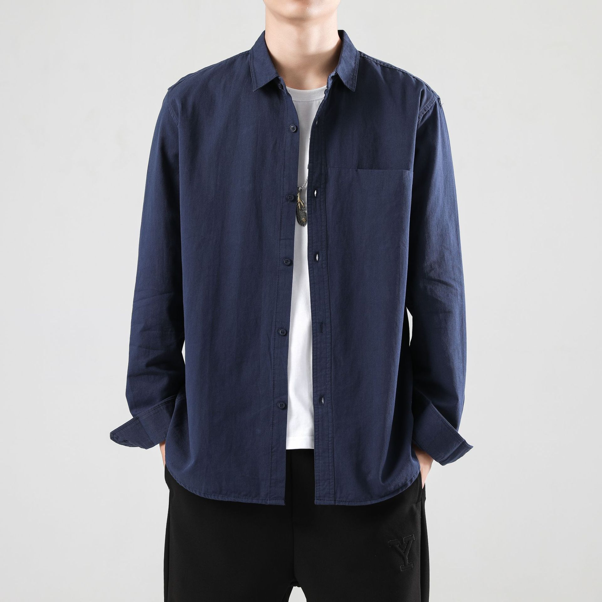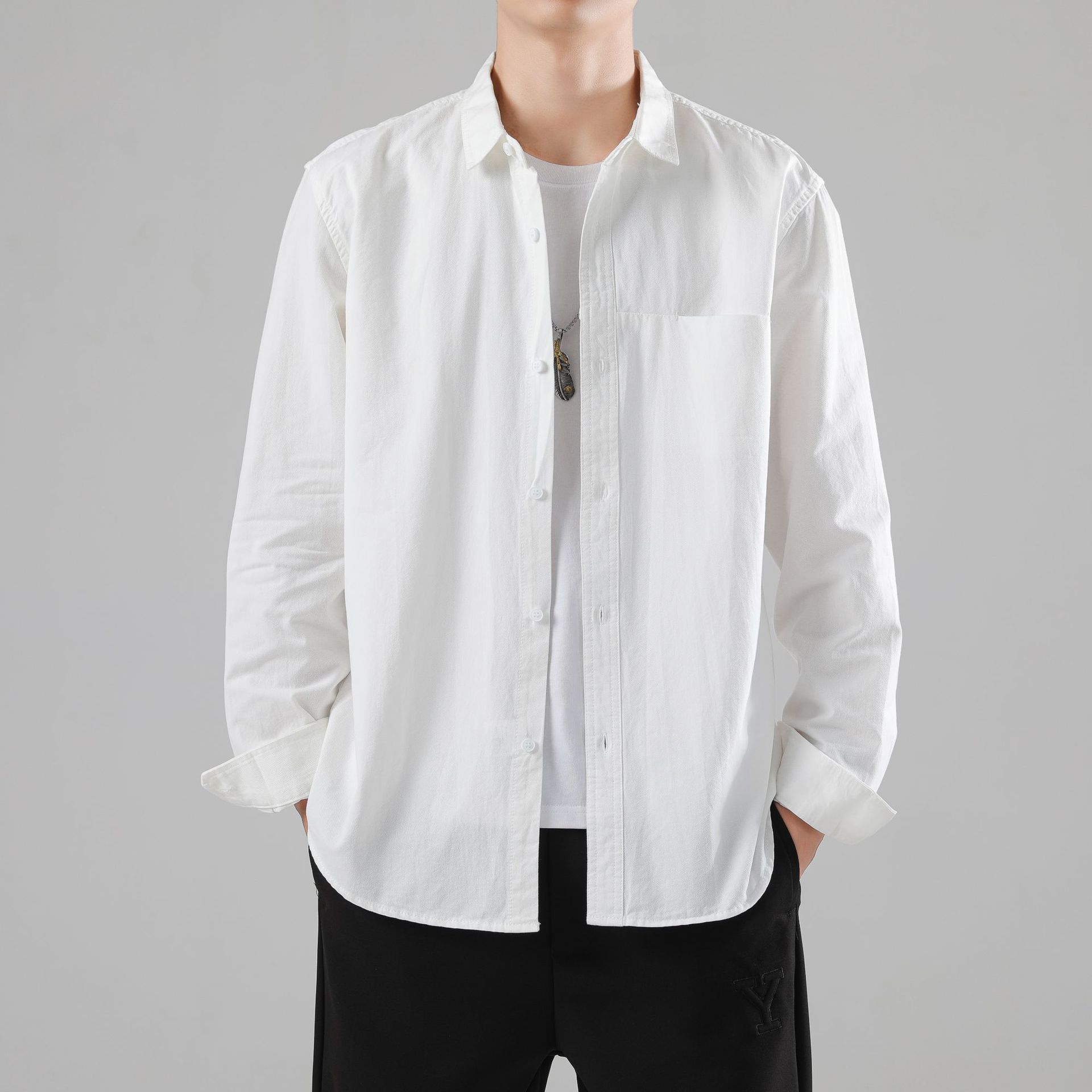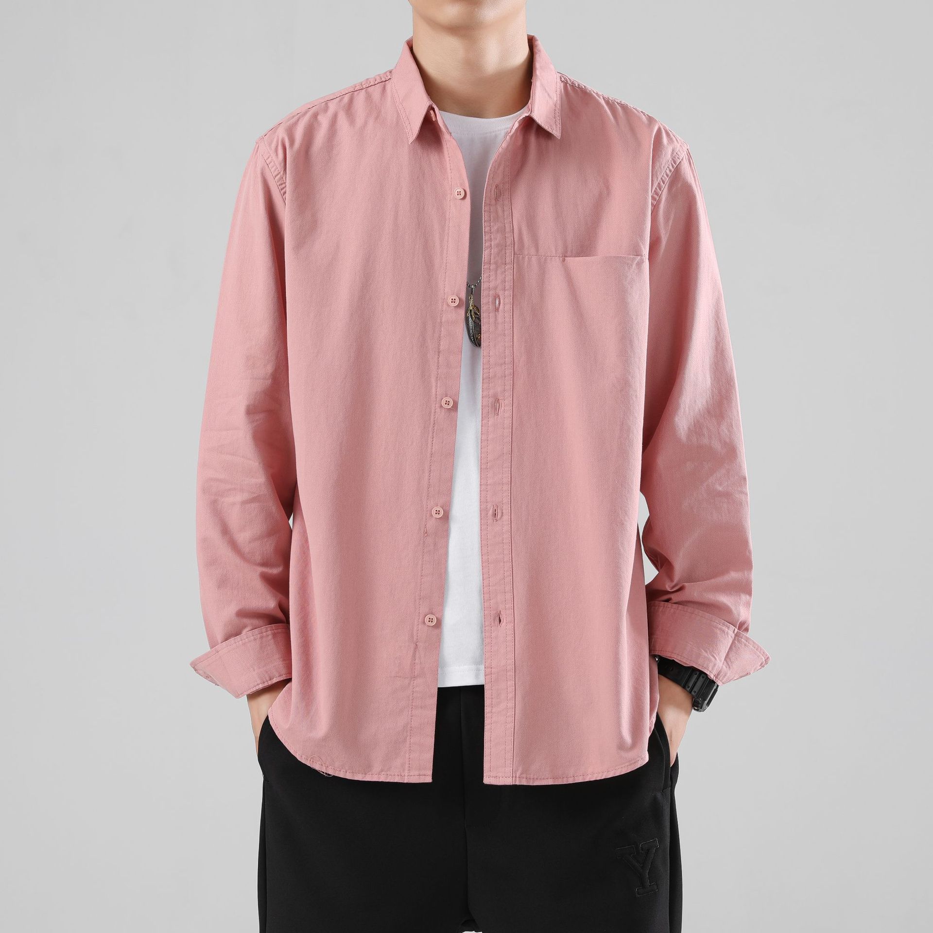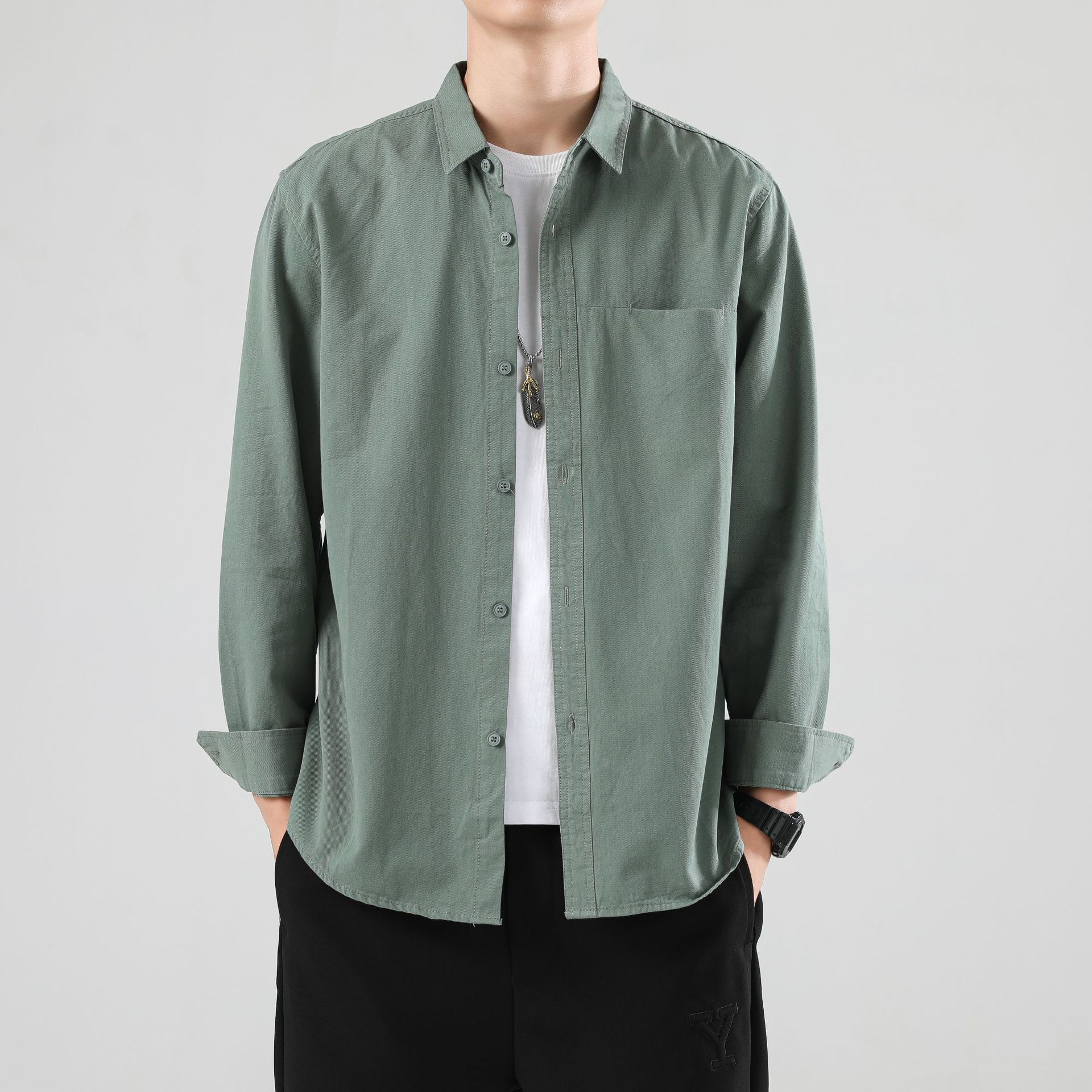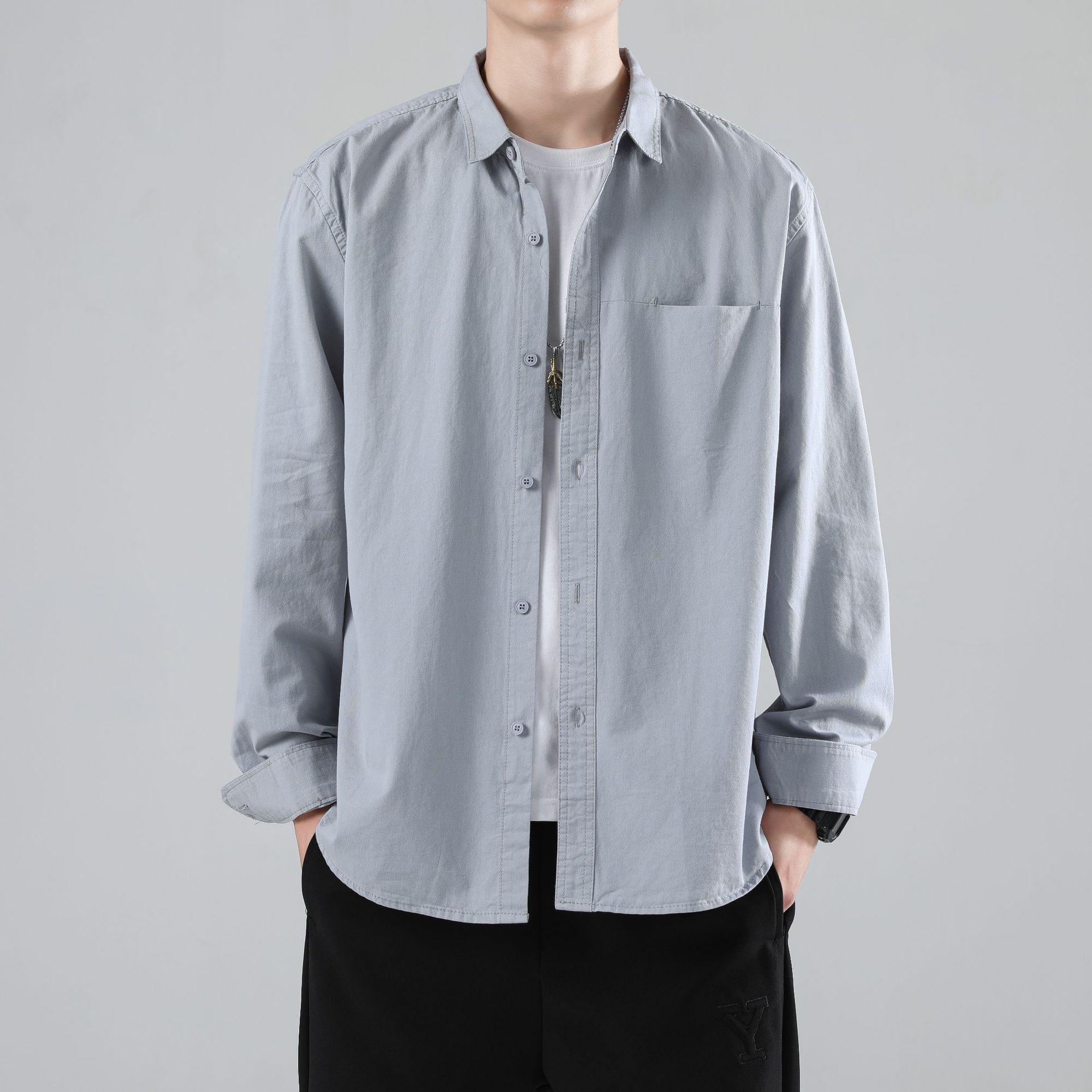 LKTM 남성 의류 # 봄 새로운 긴팔 셔츠 남성 고급 느낌 Tongqin 간단한 캐주얼 올 매치 셔츠 재킷스토어 가기