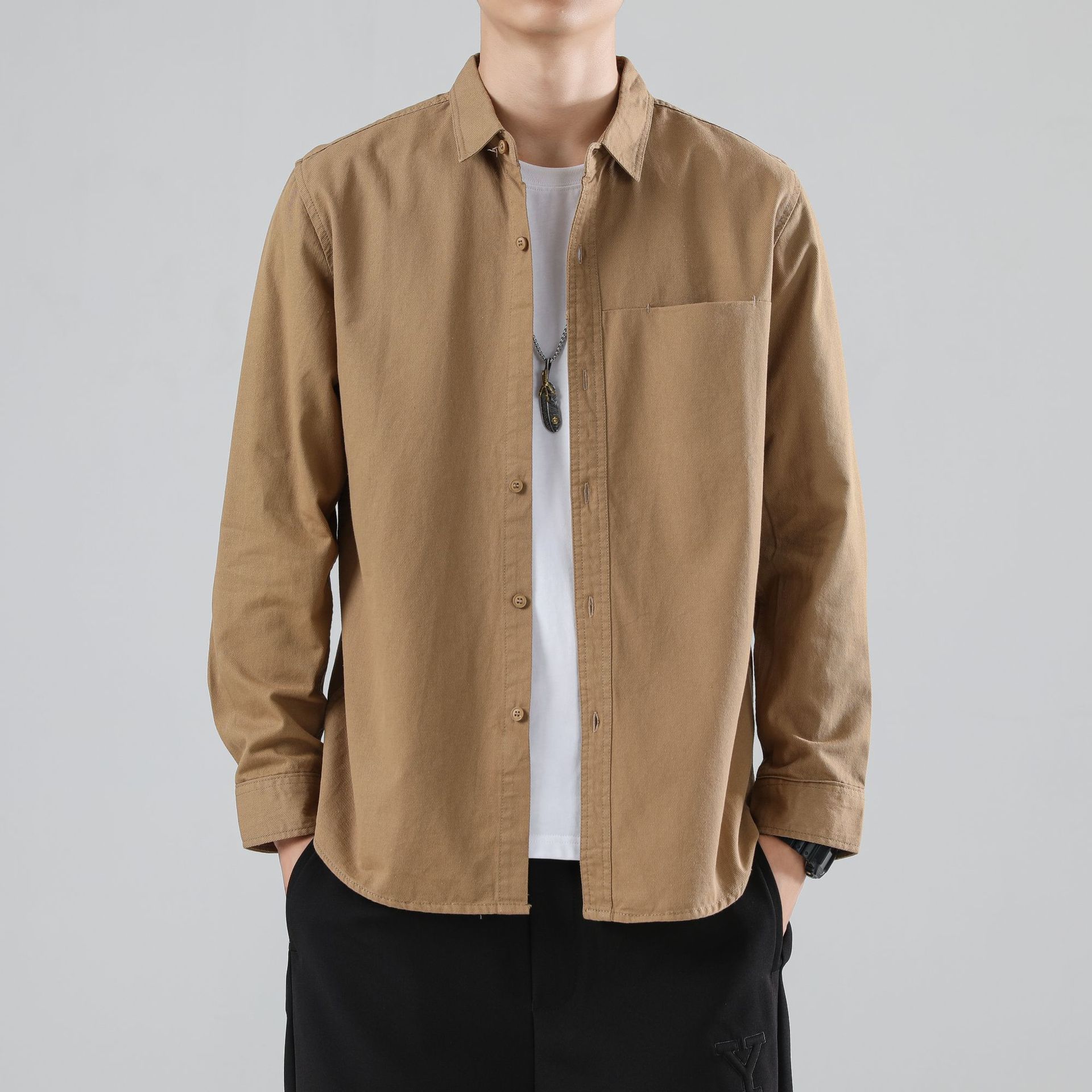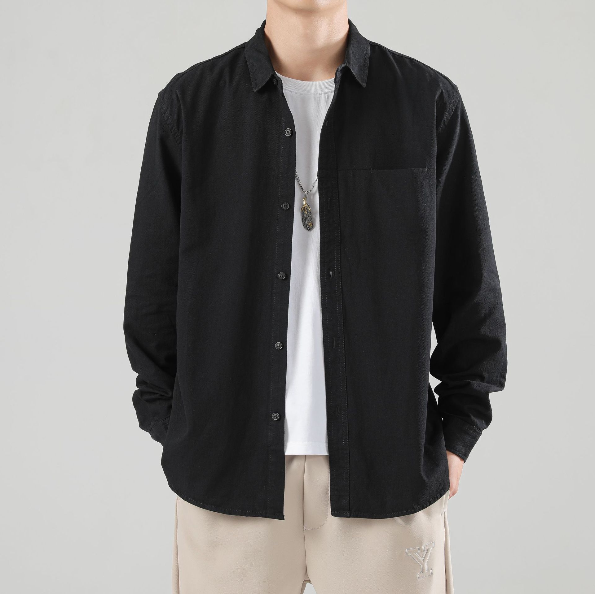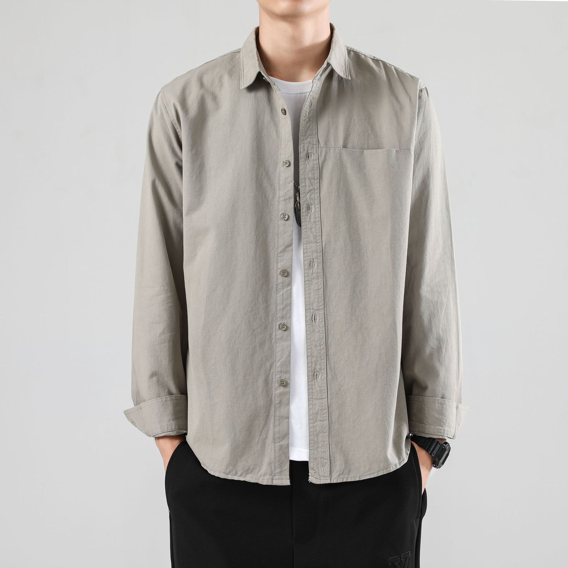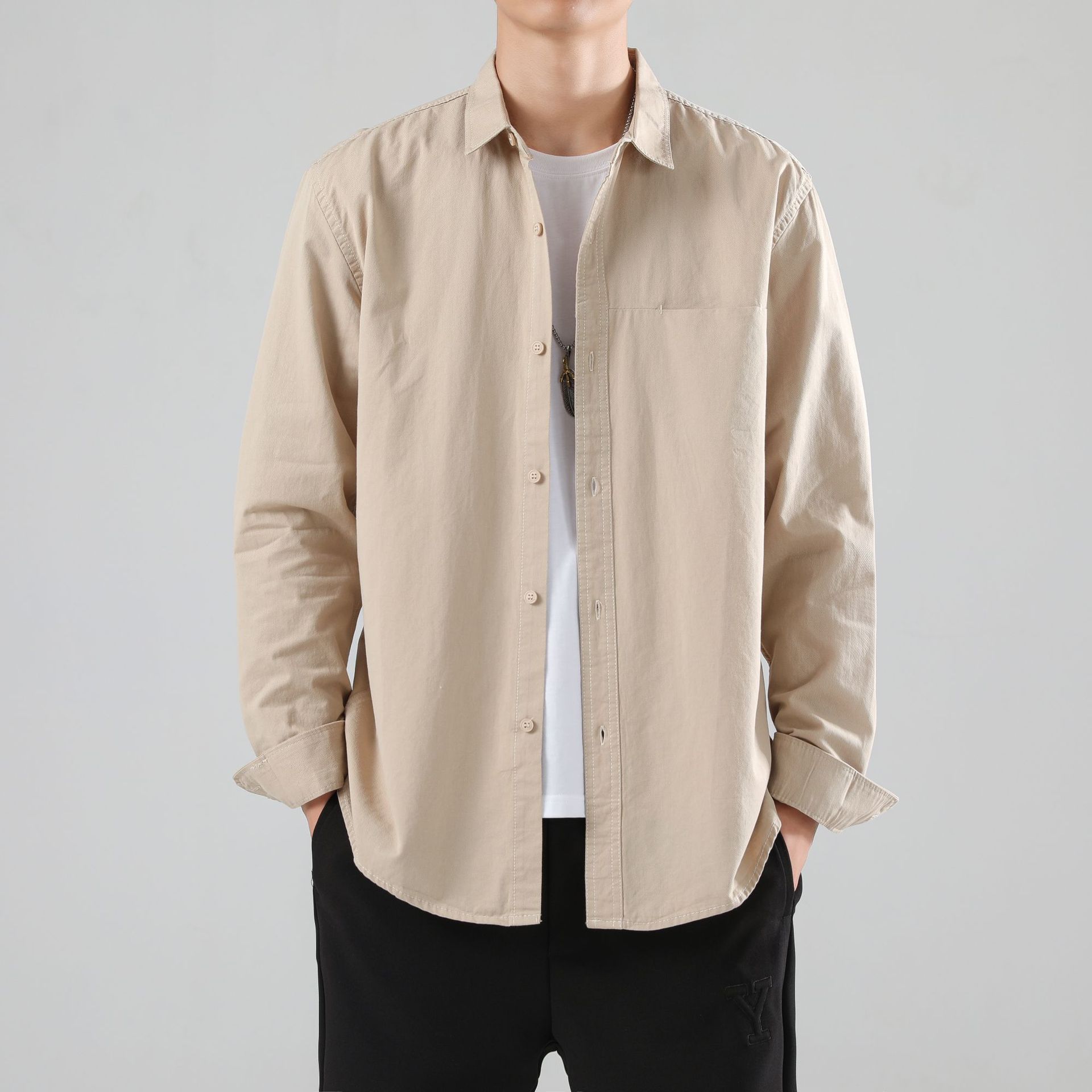 LKTM 남성 의류 # 봄 새로운 긴팔 셔츠 남성 고급 느낌 Tongqin 간단한 캐주얼 올 매치 셔츠 재킷