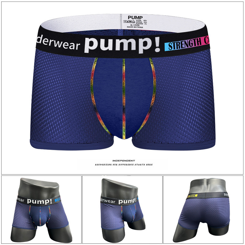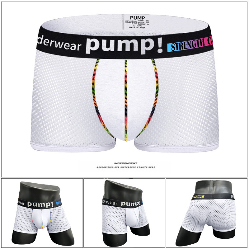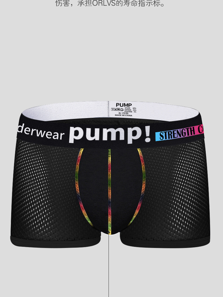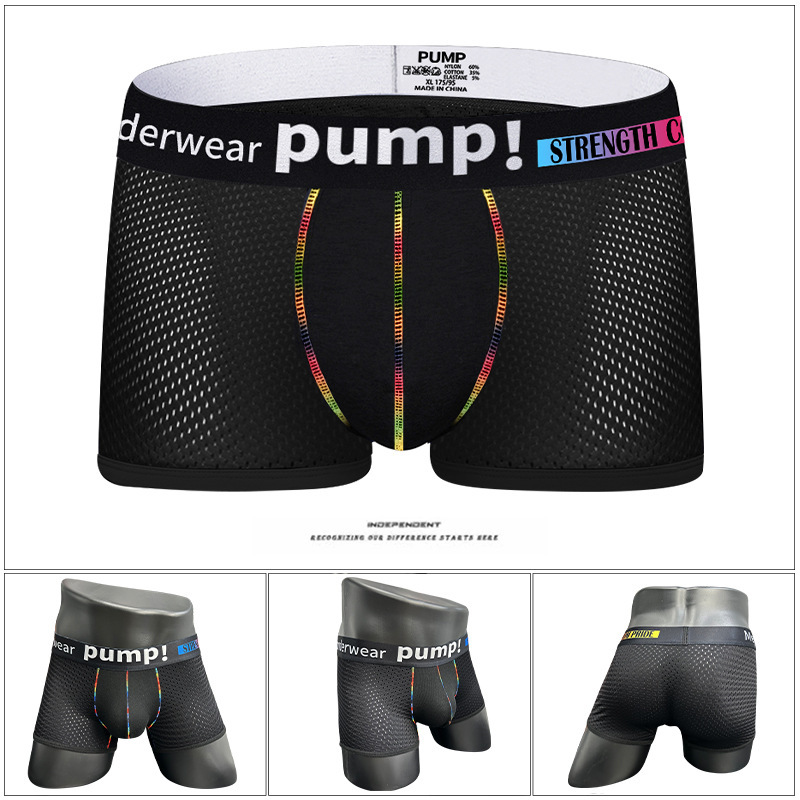 PUMP 새로운 남성 복서 메시 통기성 섹시한 스포츠 패션 낮은 허리 권투 선수 단색 패션 반바지