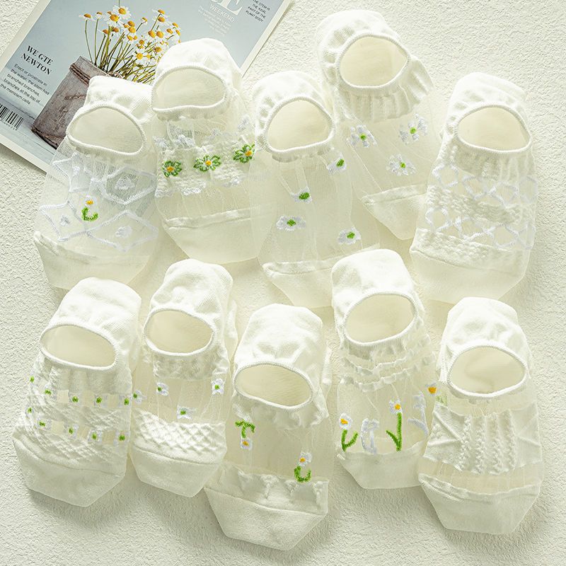 여성 여름 양말 초박형 통기성 라운드 입 중공 크리스탈 양말 유리 실크 쿨 아이스 실크 양말 카키 스타킹스토어 가기