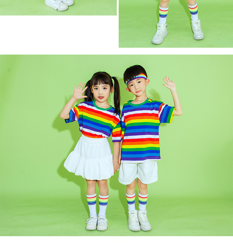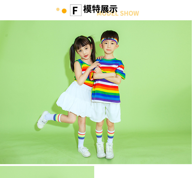 어린이 시계 공연복 초등학교 치어 리더 코러스 옷 서스펜더 반바지 여름 세트 유치원 졸업복스토어 가기
