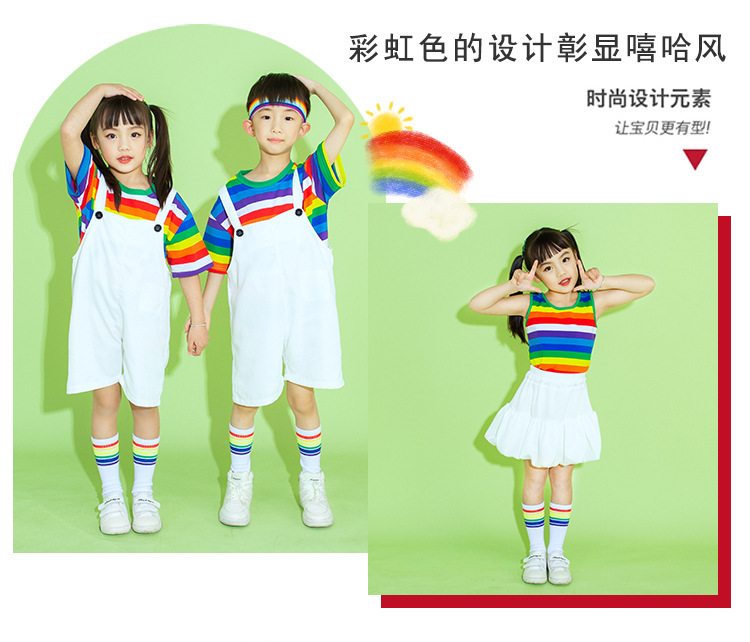 어린이 시계 공연복 초등학교 치어 리더 코러스 옷 서스펜더 반바지 여름 세트 유치원 졸업복