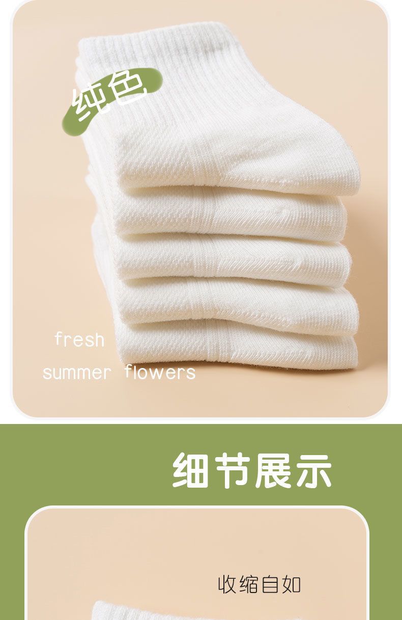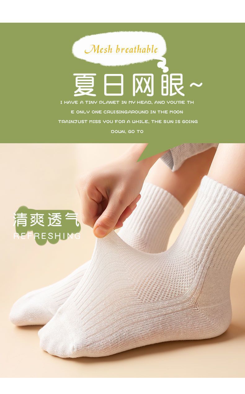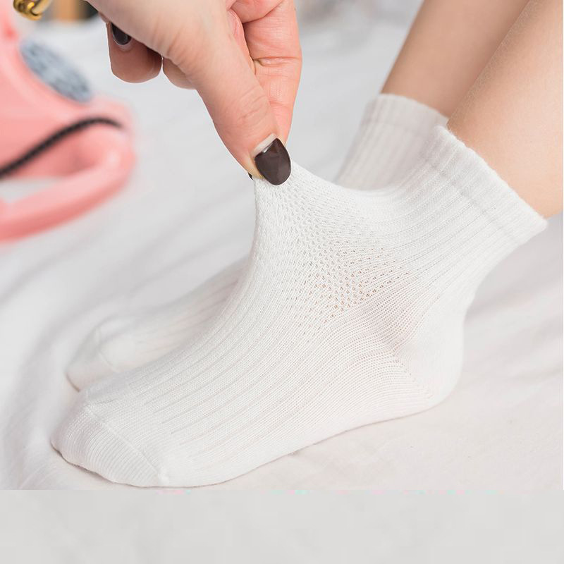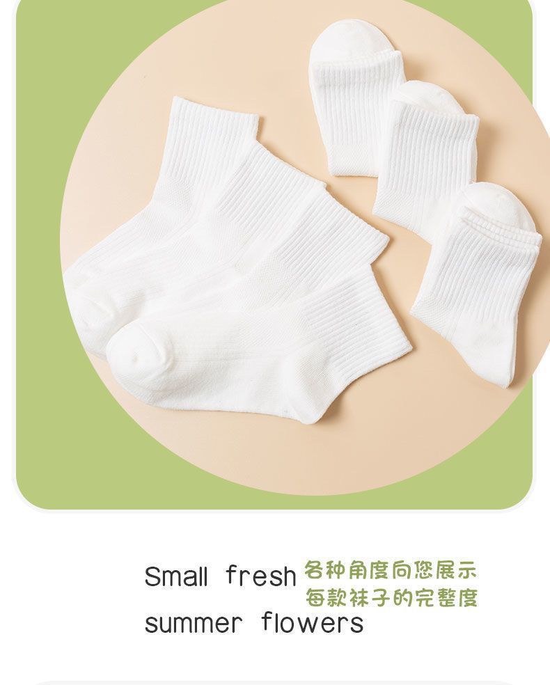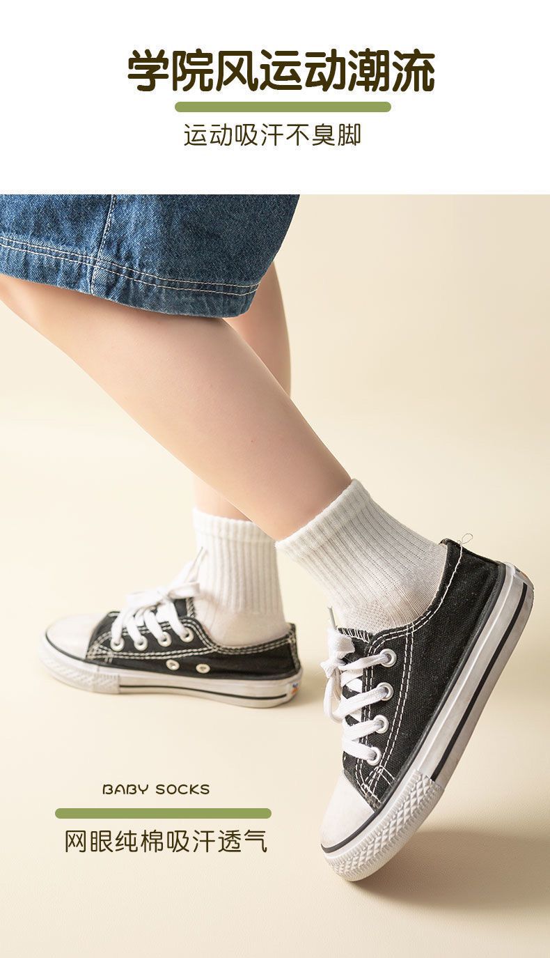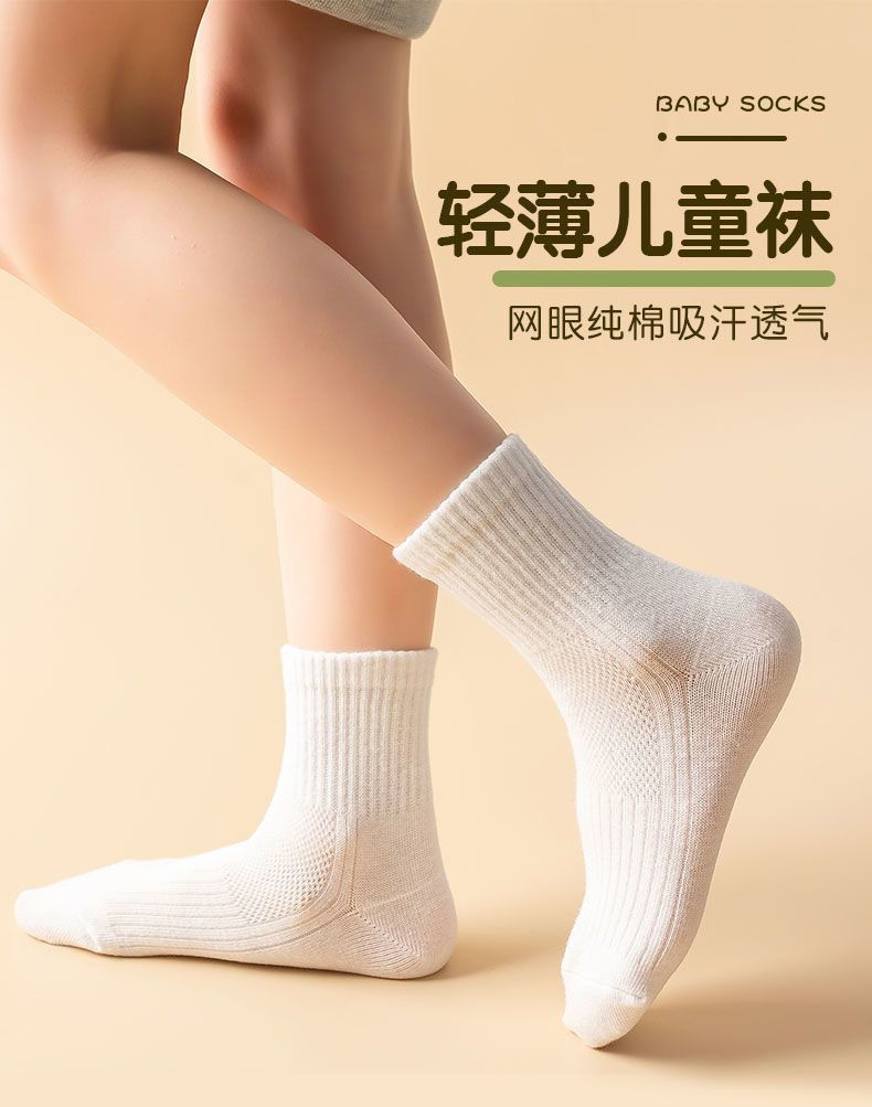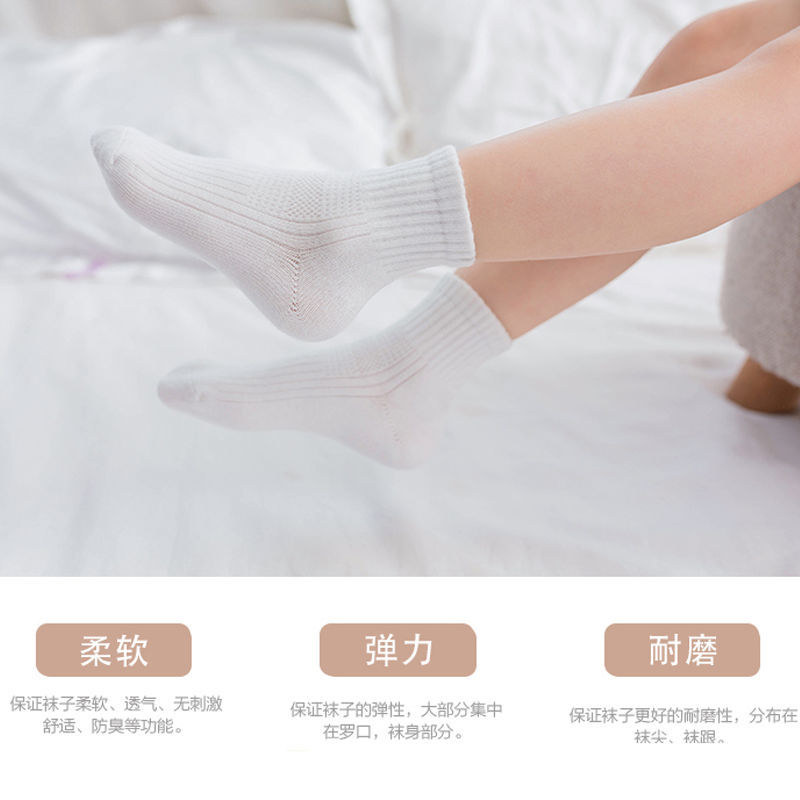 어린이 양말 봄과 여름 얇은 면 양말 중간 종아리 길이 양말 소년 소녀 메쉬 순수한 흰색 양말 초등학교 학생 양말 스포츠 양말