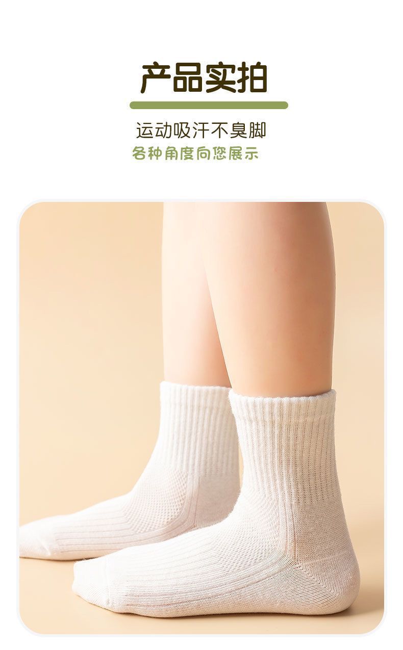 어린이 양말 봄과 여름 얇은 면 양말 중간 종아리 길이 양말 소년 소녀 메쉬 순수한 흰색 양말 초등학교 학생 양말 스포츠 양말스토어 가기