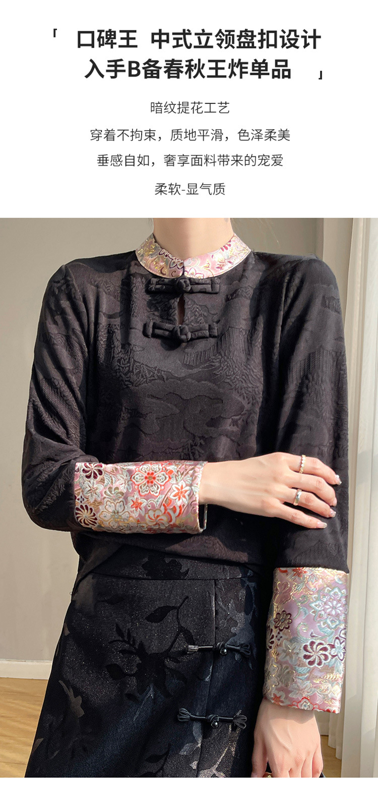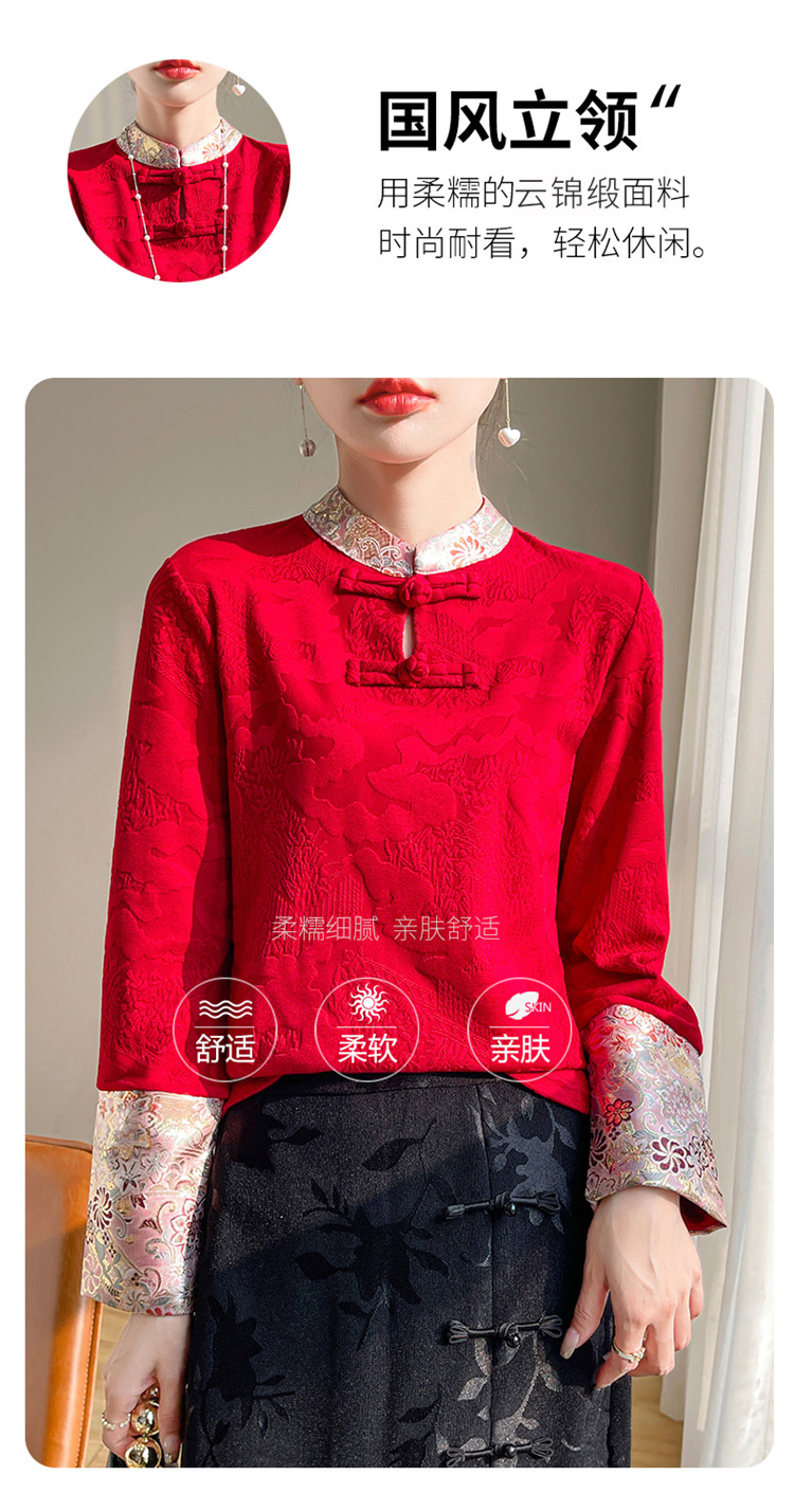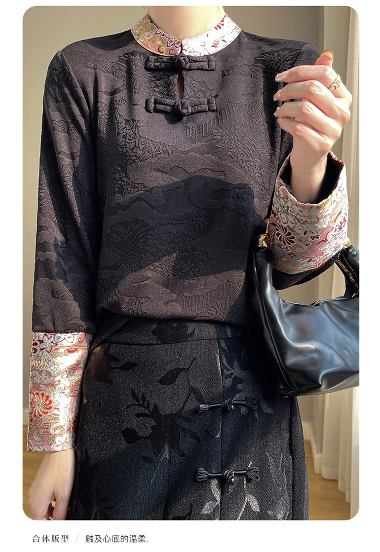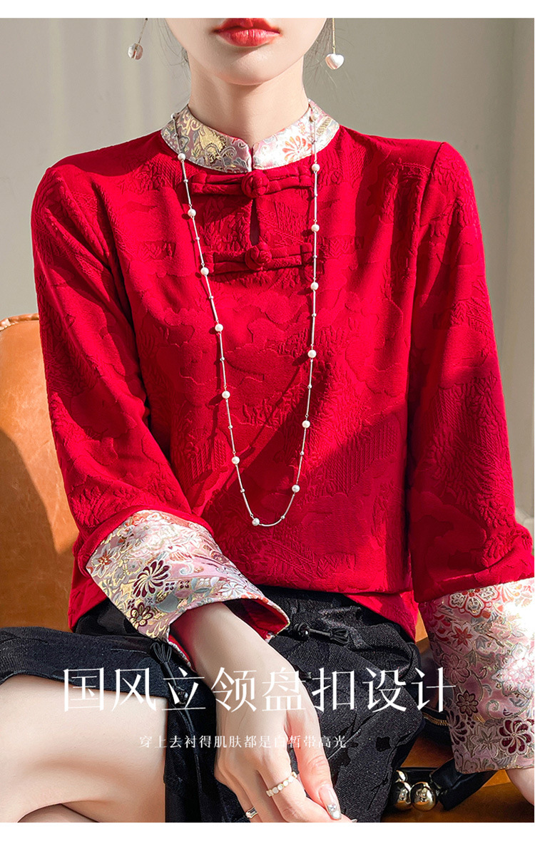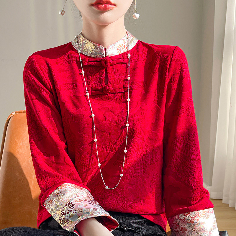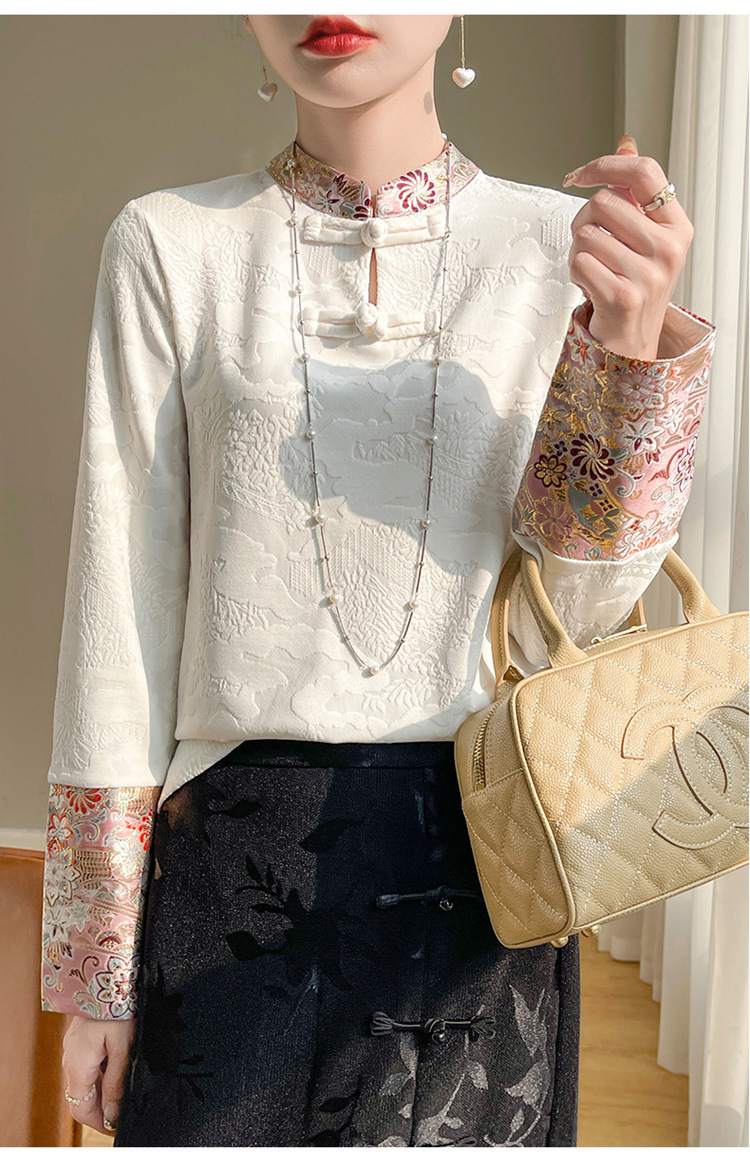 여성 국가 스타일 새틴 셔츠 화이트 2024 봄 셔츠 새로운 중국 스타일 버클 긴 소매 셔츠 자수 탑스토어 가기
