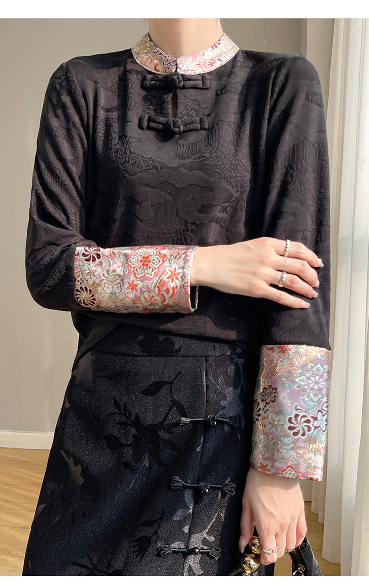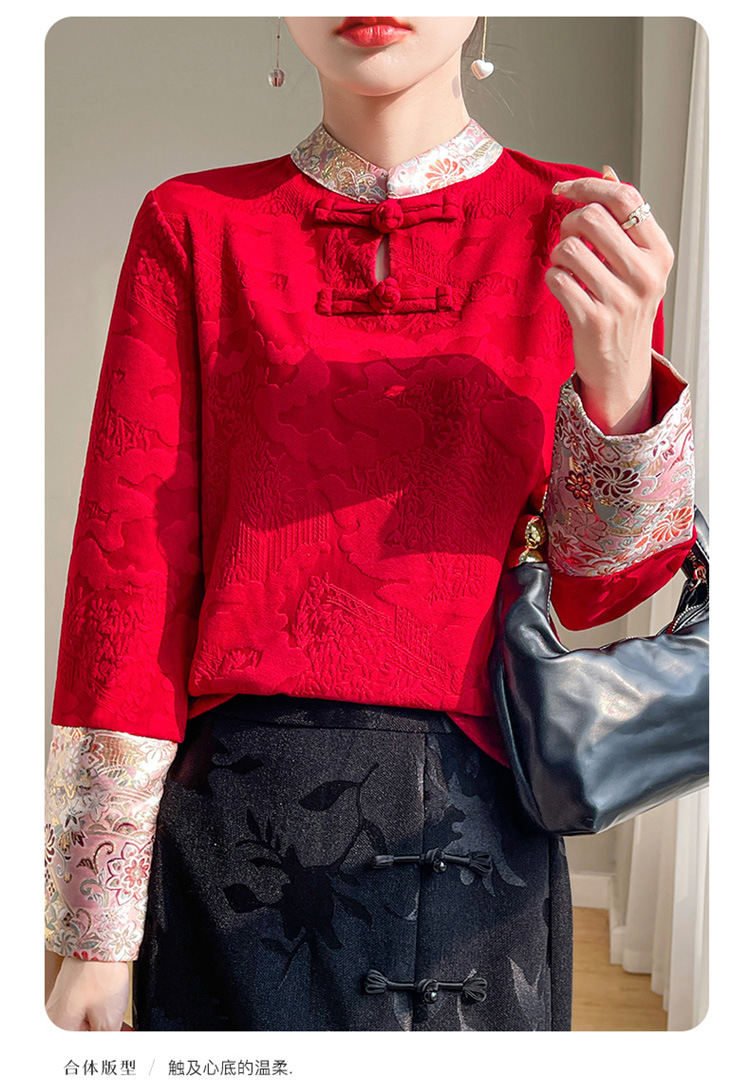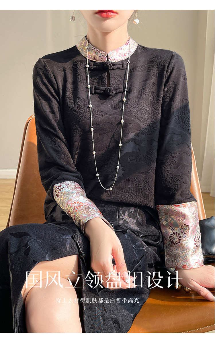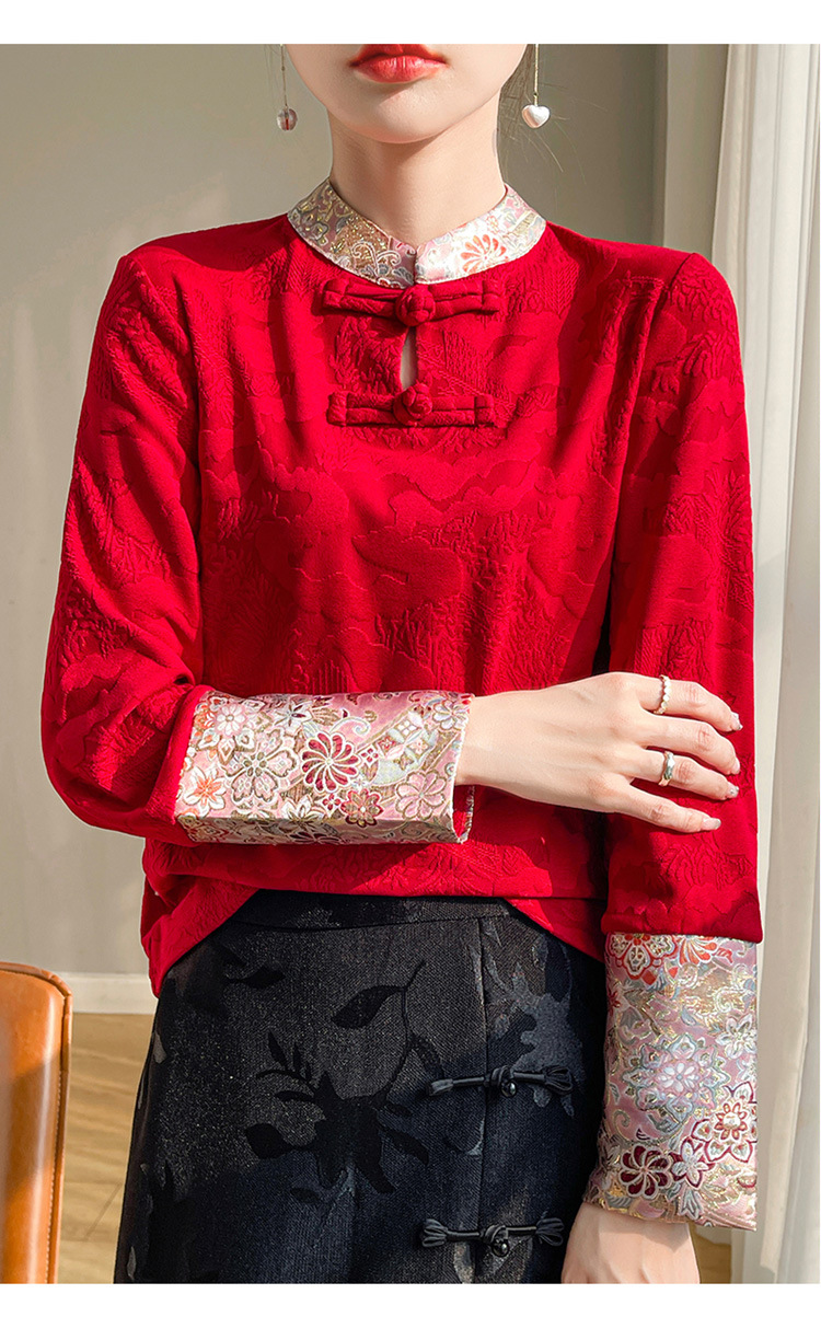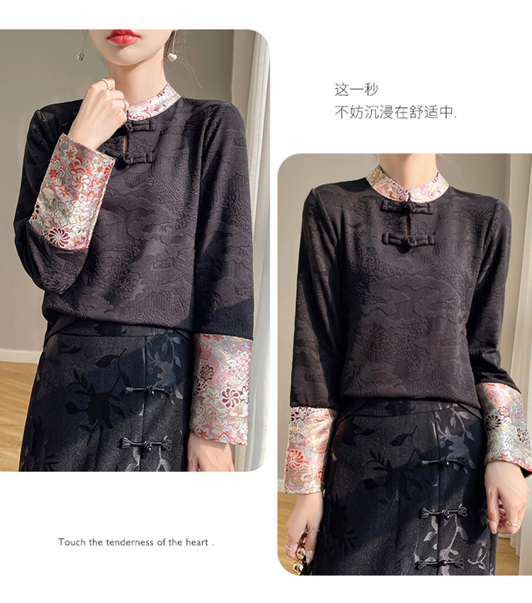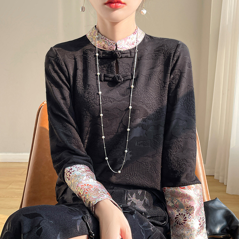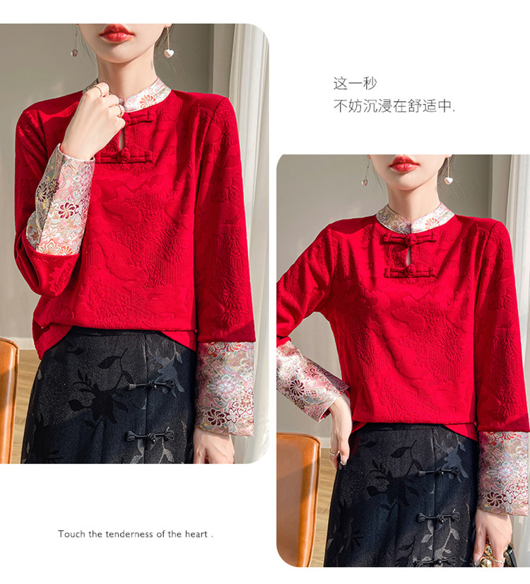 여성 국가 스타일 새틴 셔츠 화이트 2024 봄 셔츠 새로운 중국 스타일 버클 긴 소매 셔츠 자수 탑스토어 가기