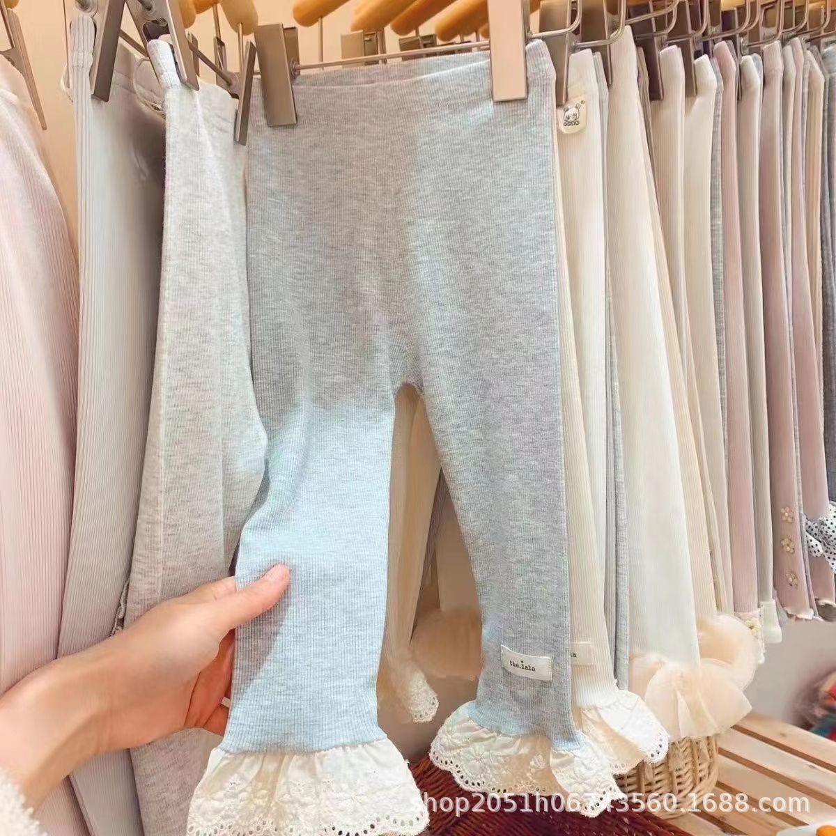 한국식 아동복 소녀 바지 아기 봄 서양식 샤넬 스타일 레이스 와이드 레그 바지 어린이 라이트 블루 청바지스토어 가기