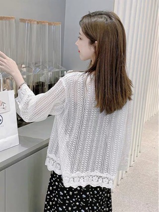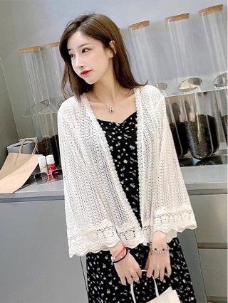 니트 카디건 작은 코트 레이스 휴가 선스크린 셔츠 짧은 에어컨 셔츠 여름 얇은 탑 중공 목도리 여성스토어 가기