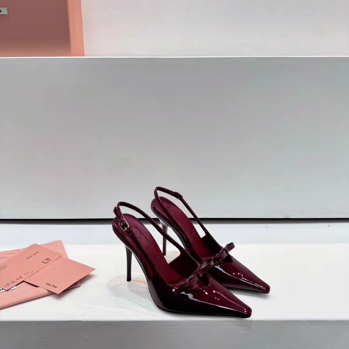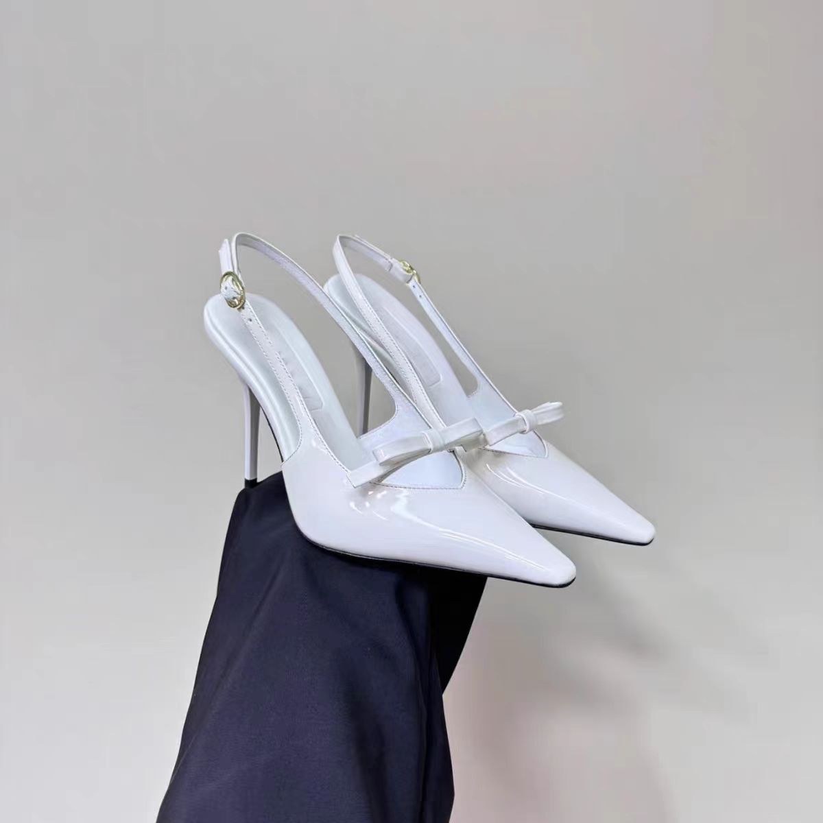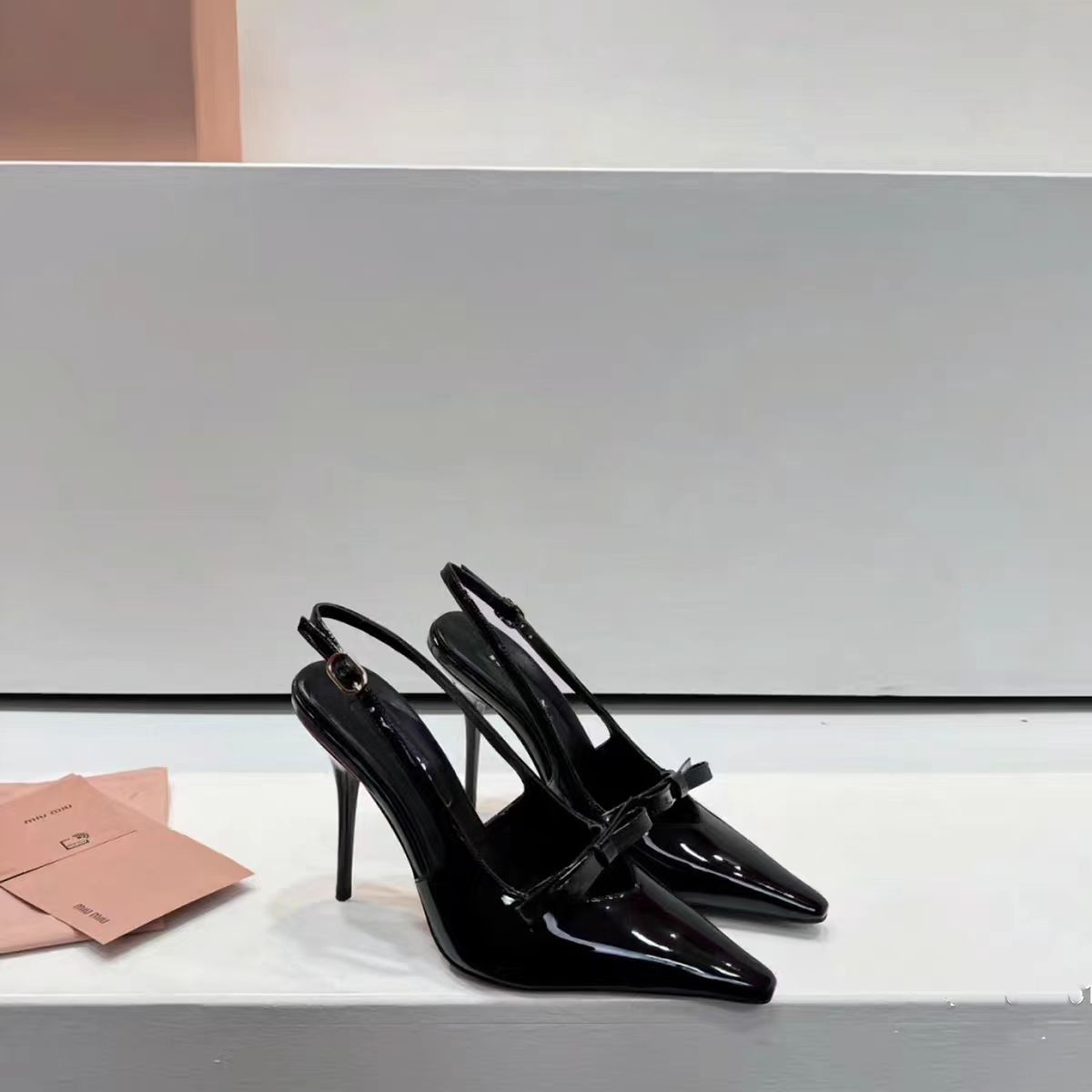 2024 봄과 여름 새로운 검은 색 특허 가죽 활 뾰족한 하이힐 신발 여성 정품 가죽 스틸레토 힐 스트랩 닫힌 발가락 샌들